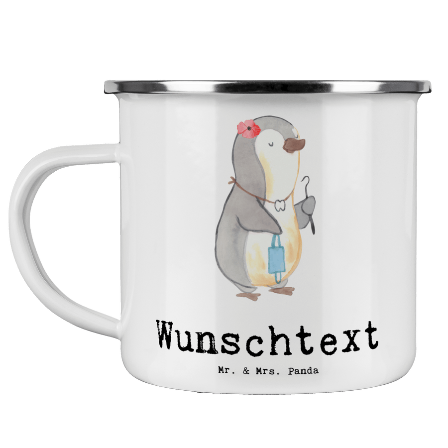 Personalisierte Emaille Tasse Zahnärztin mit Herz