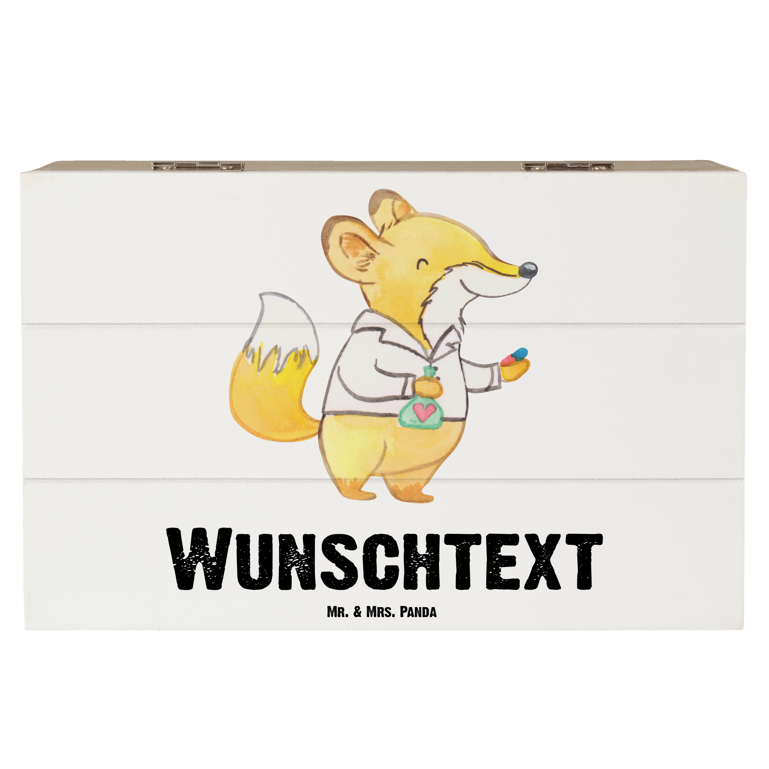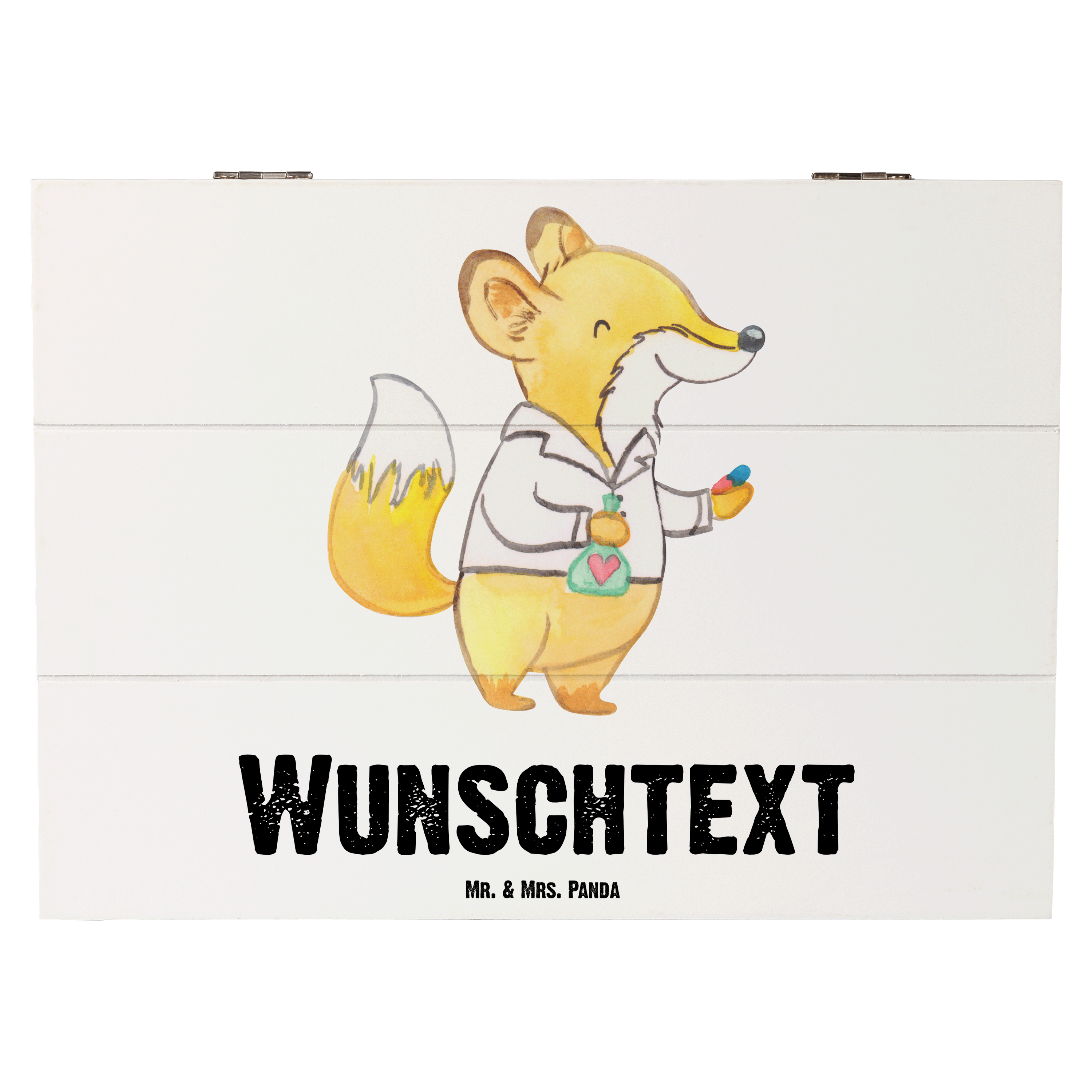 Personalisierte Holzkiste Apotheker mit Herz - Weiß - 19 x 12 cm