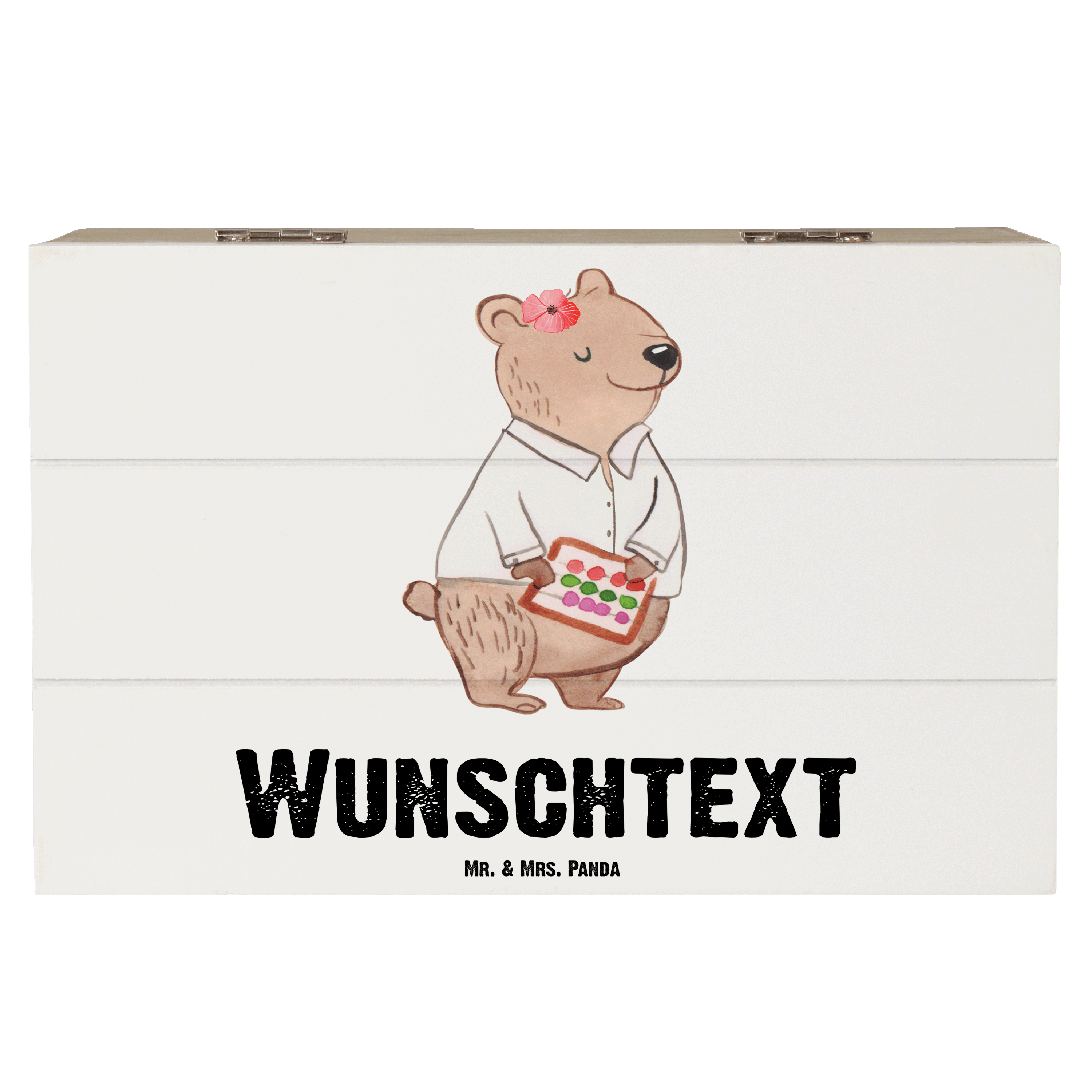 Personalisierte Holzkiste Bankangestellte mit Herz - Grau Pastell - 19 x 12 cm
