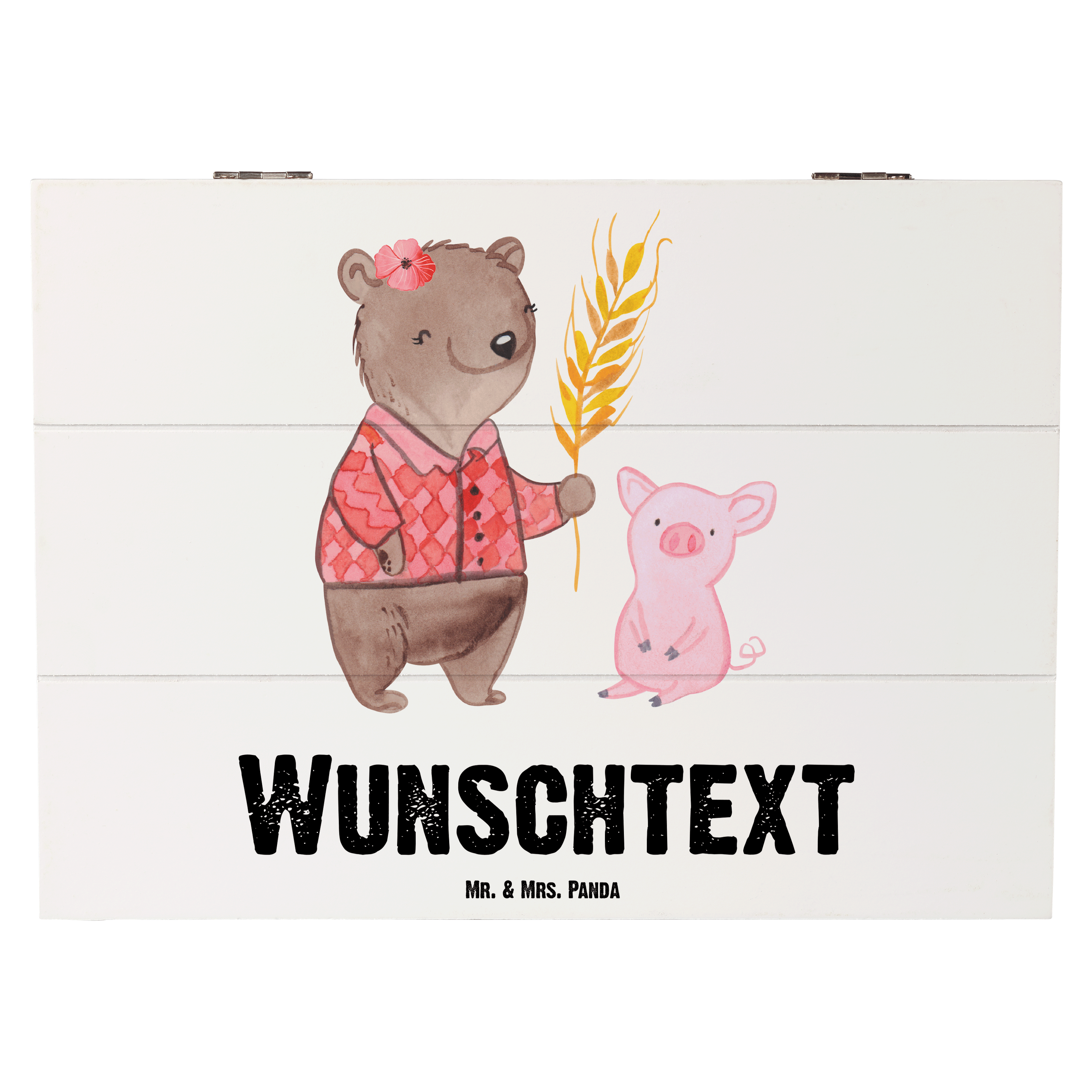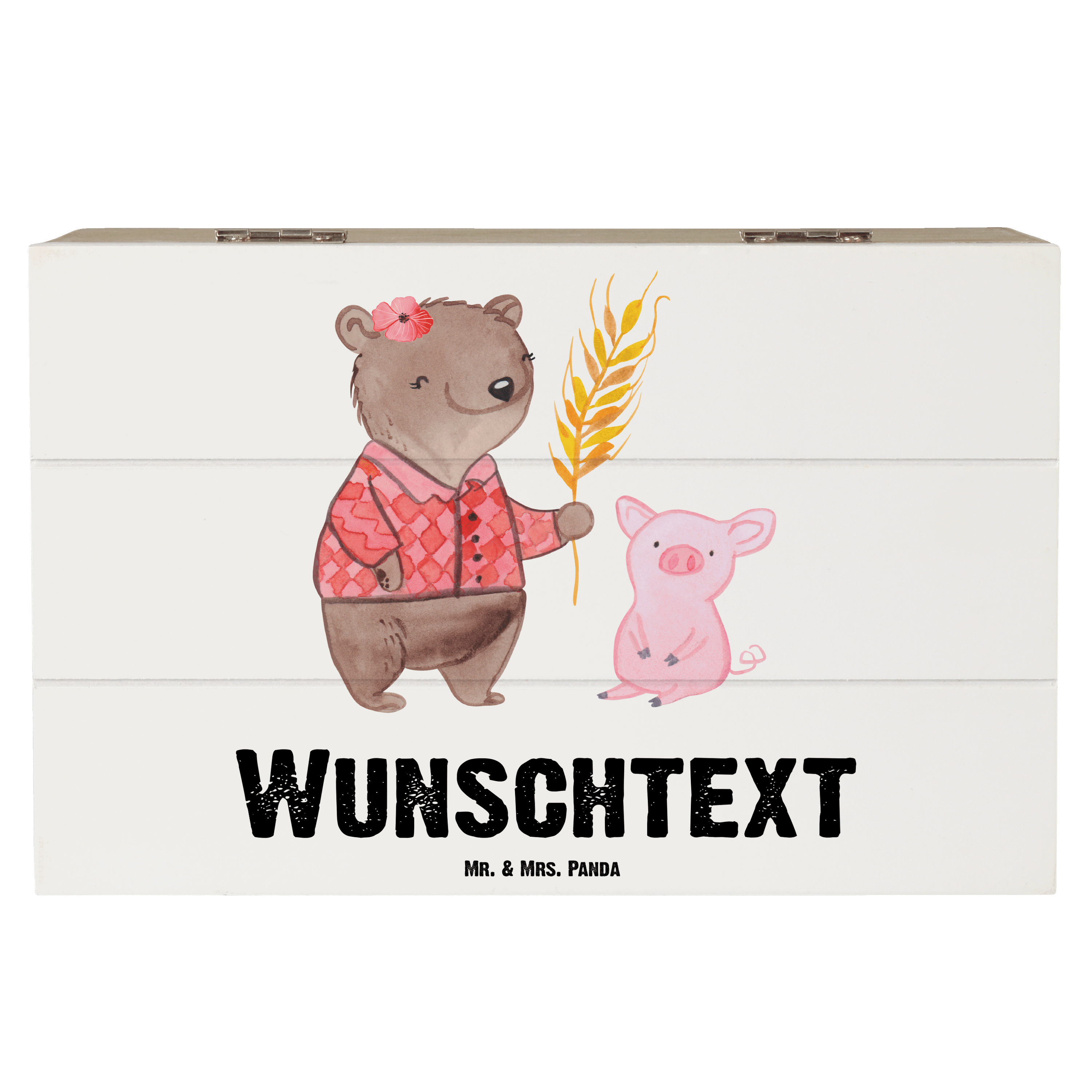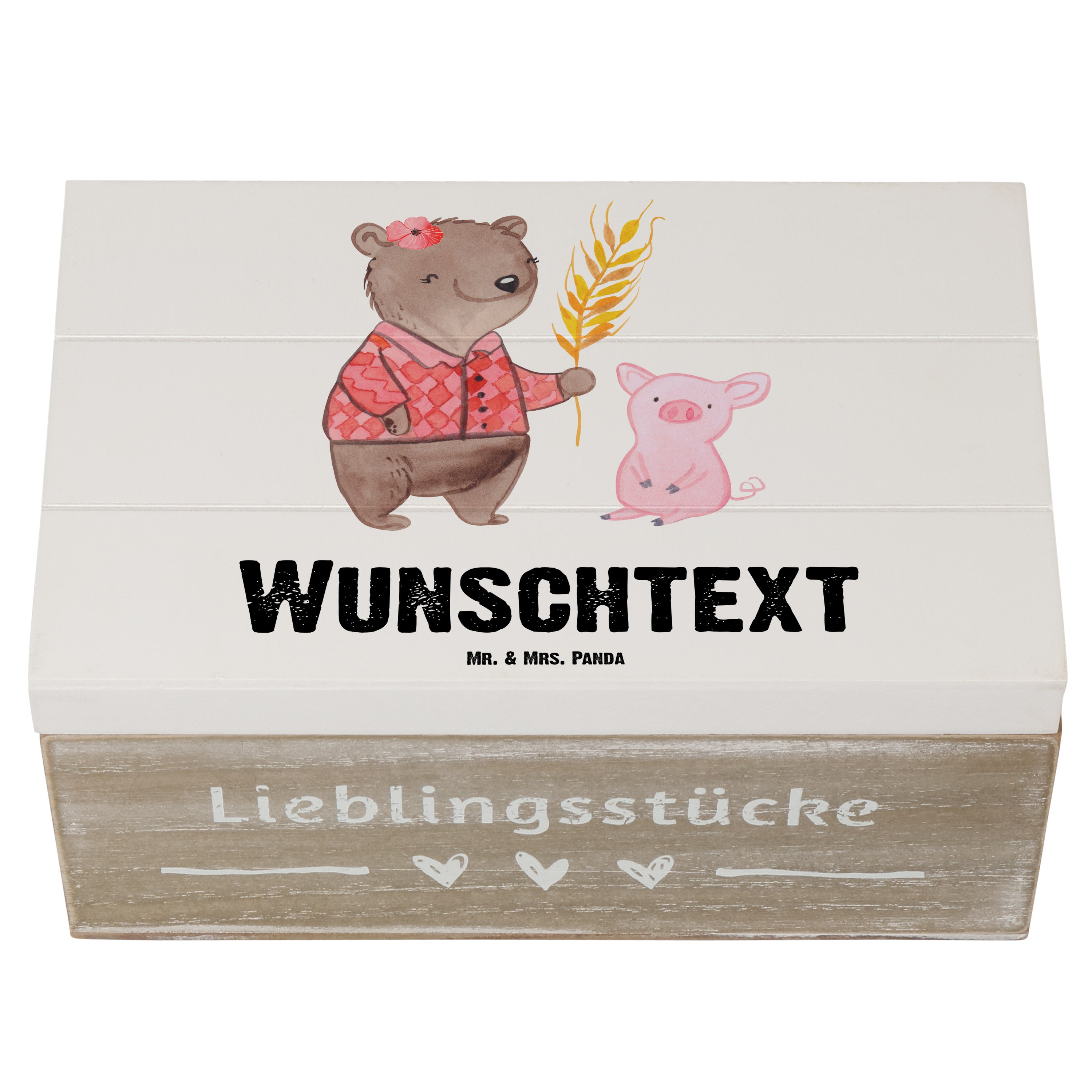 Personalisierte Holzkiste Bäuerin mit Herz - Grau Pastell - 19 x 12 cm