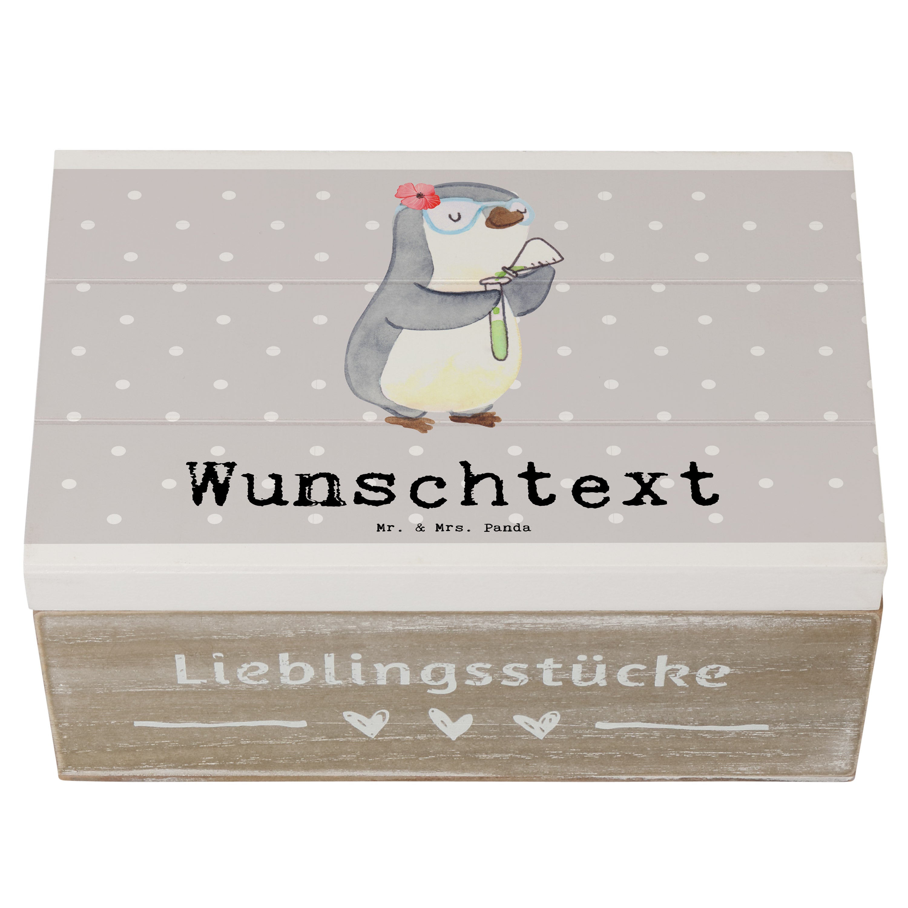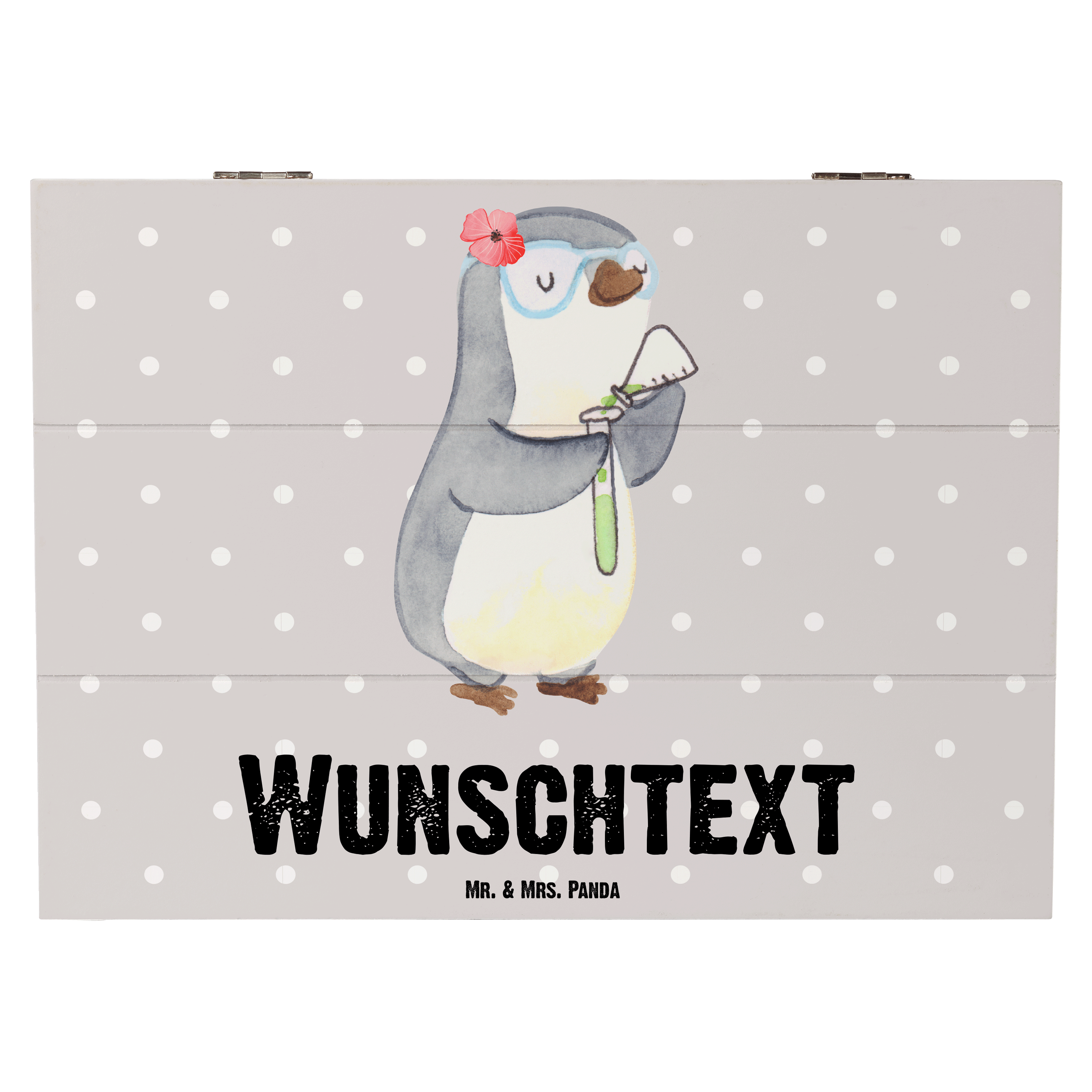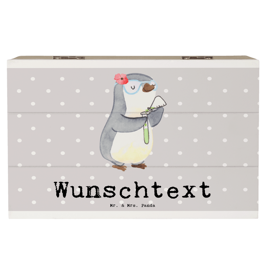 Personalisierte Holzkiste Chemikerin mit Herz - Grau Pastell - 19 x 12 cm
