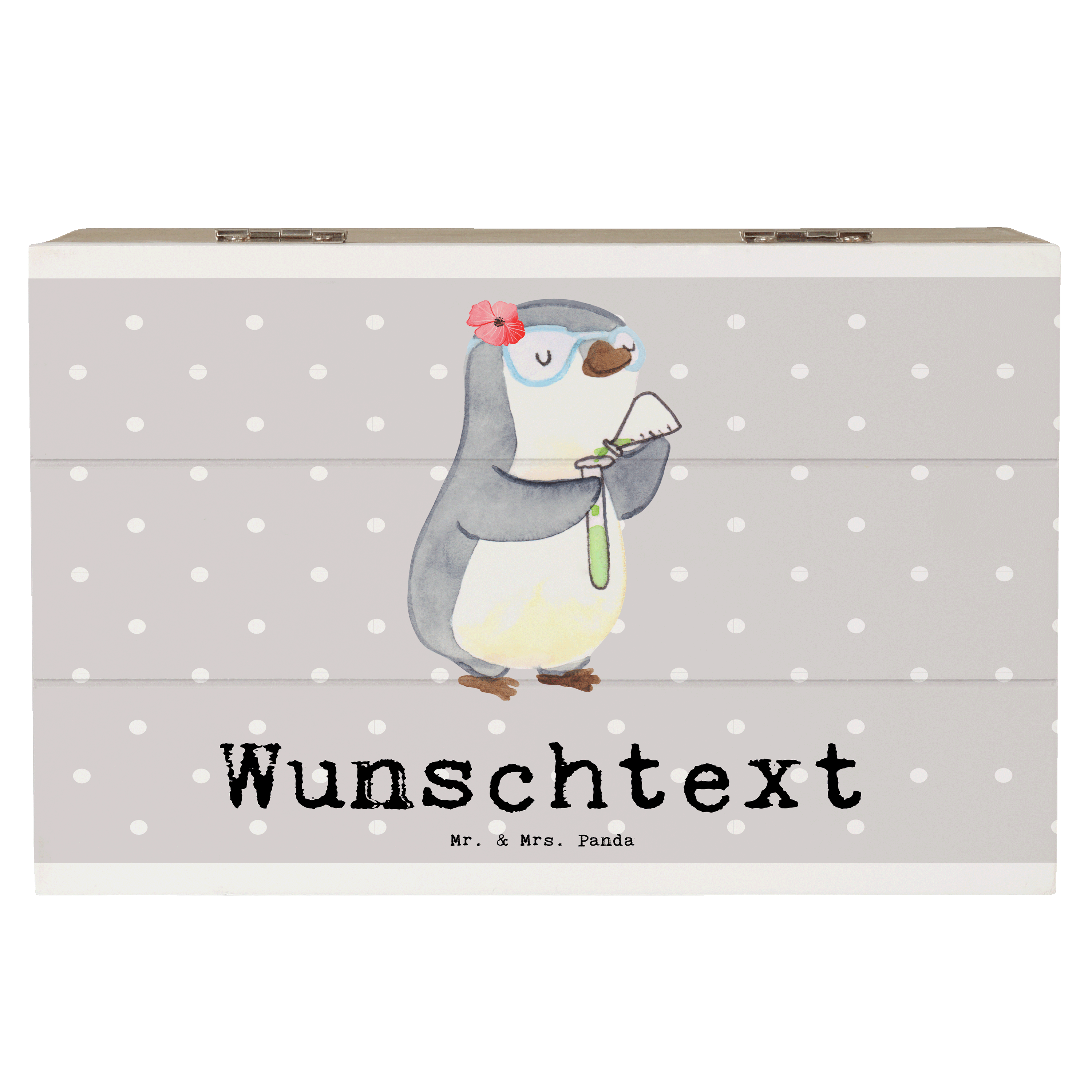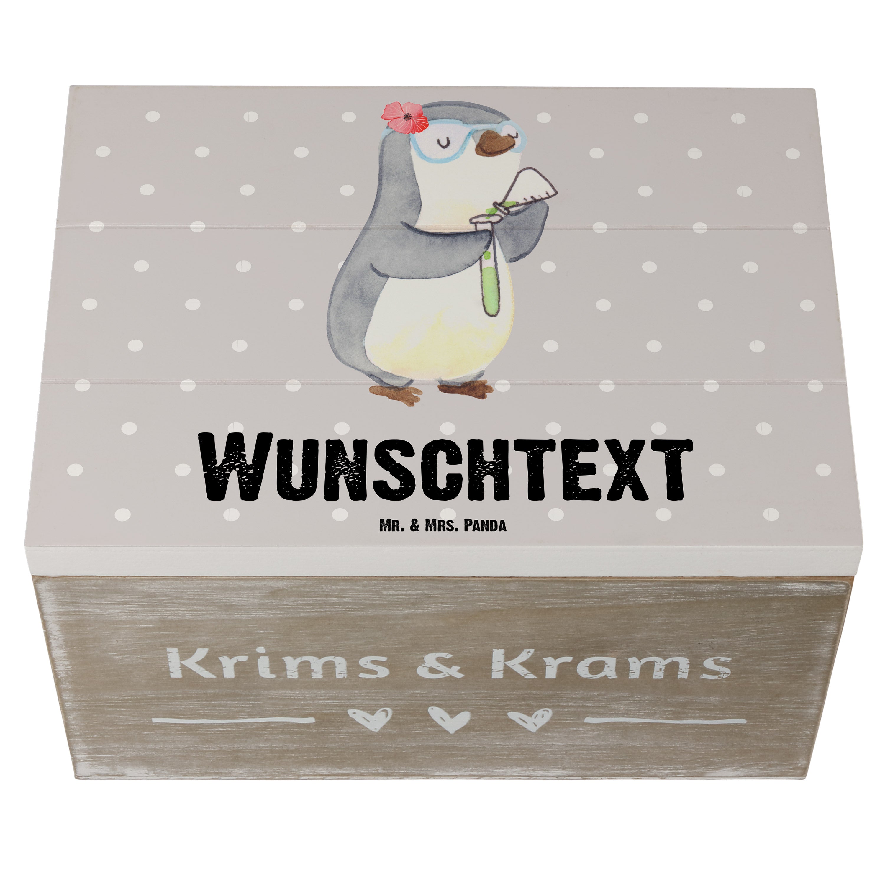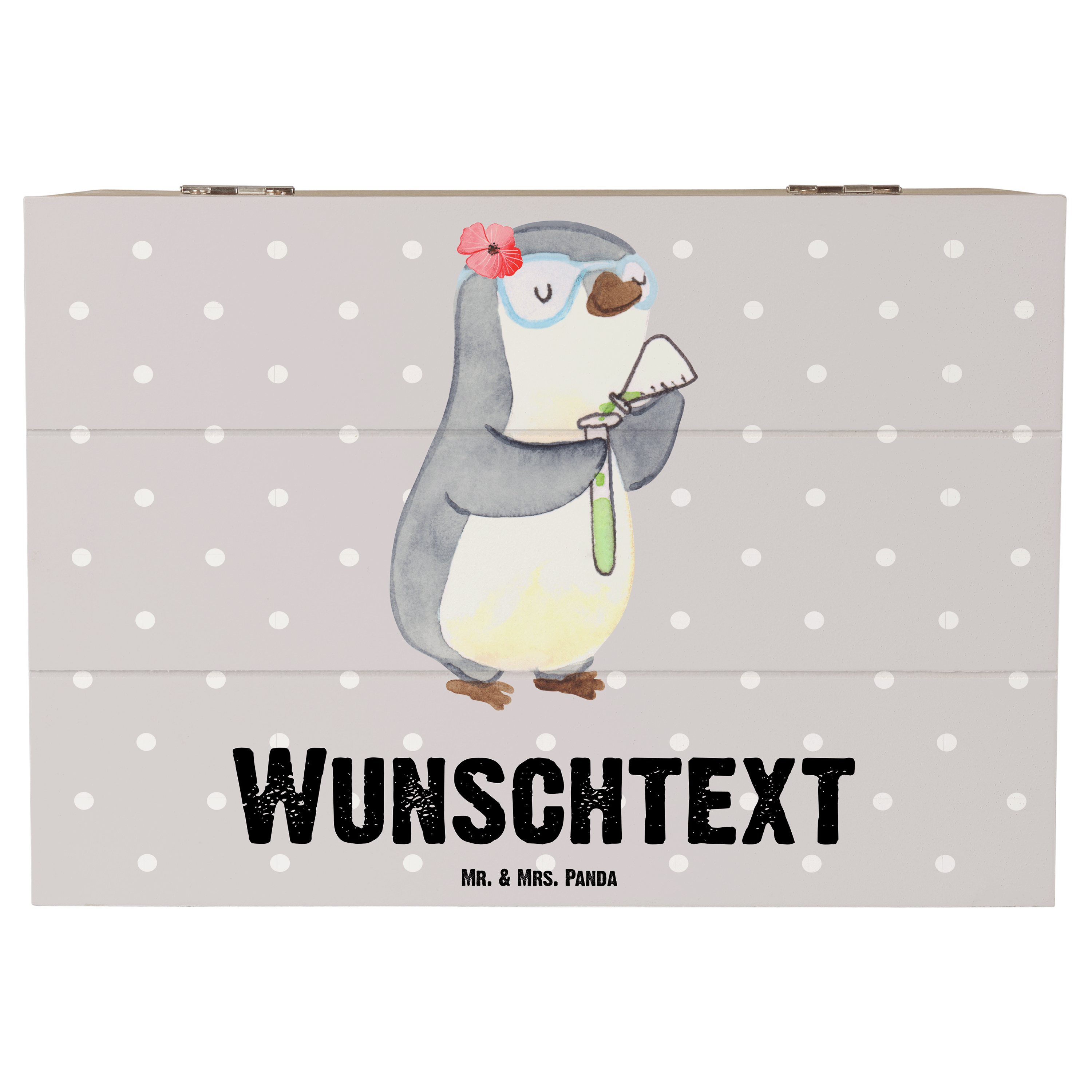 Personalisierte Holzkiste Chemikerin mit Herz - Grau Pastell - 19 x 12 cm