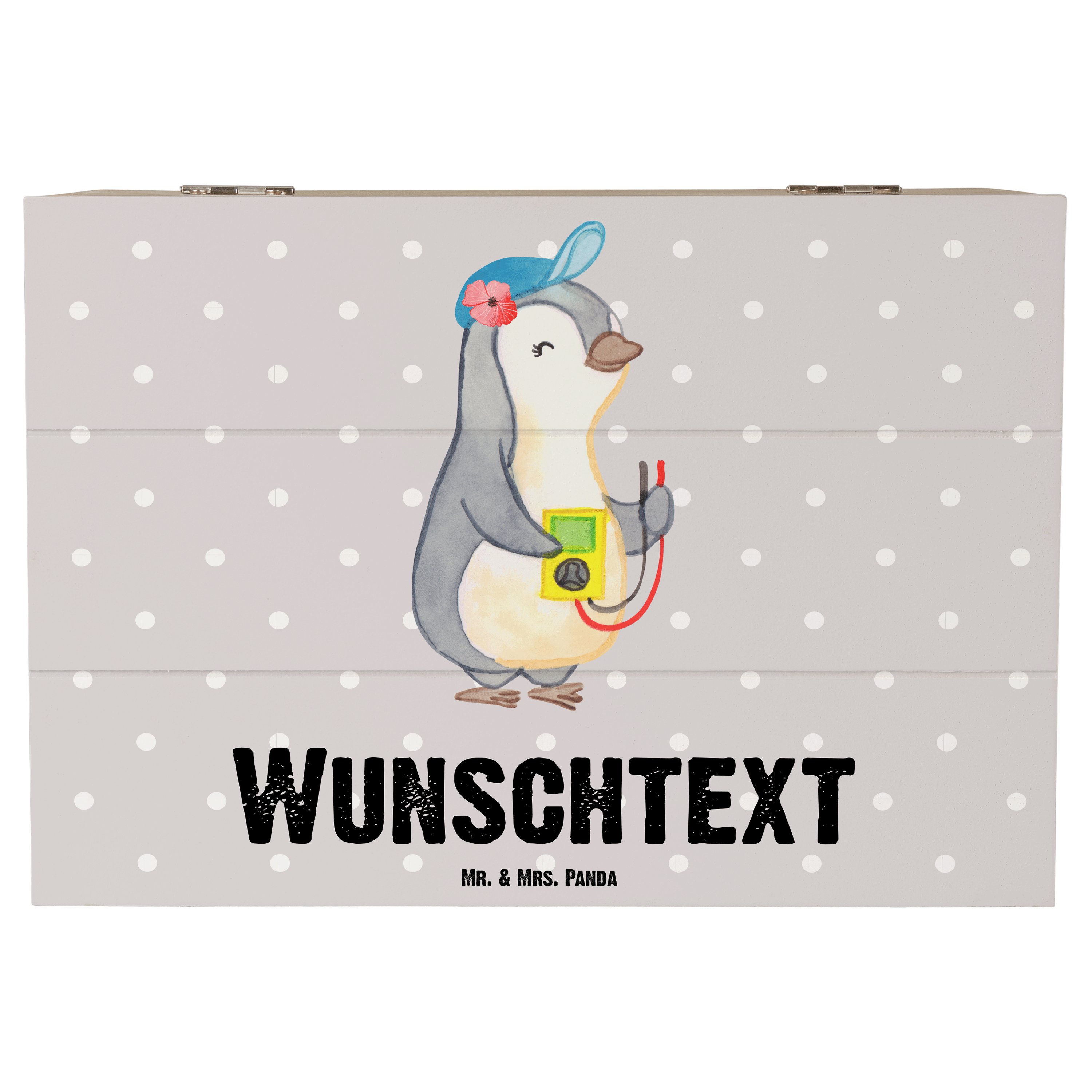 Personalisierte Holzkiste Elektrikerin mit Herz - Grau Pastell - 19 x 12 cm