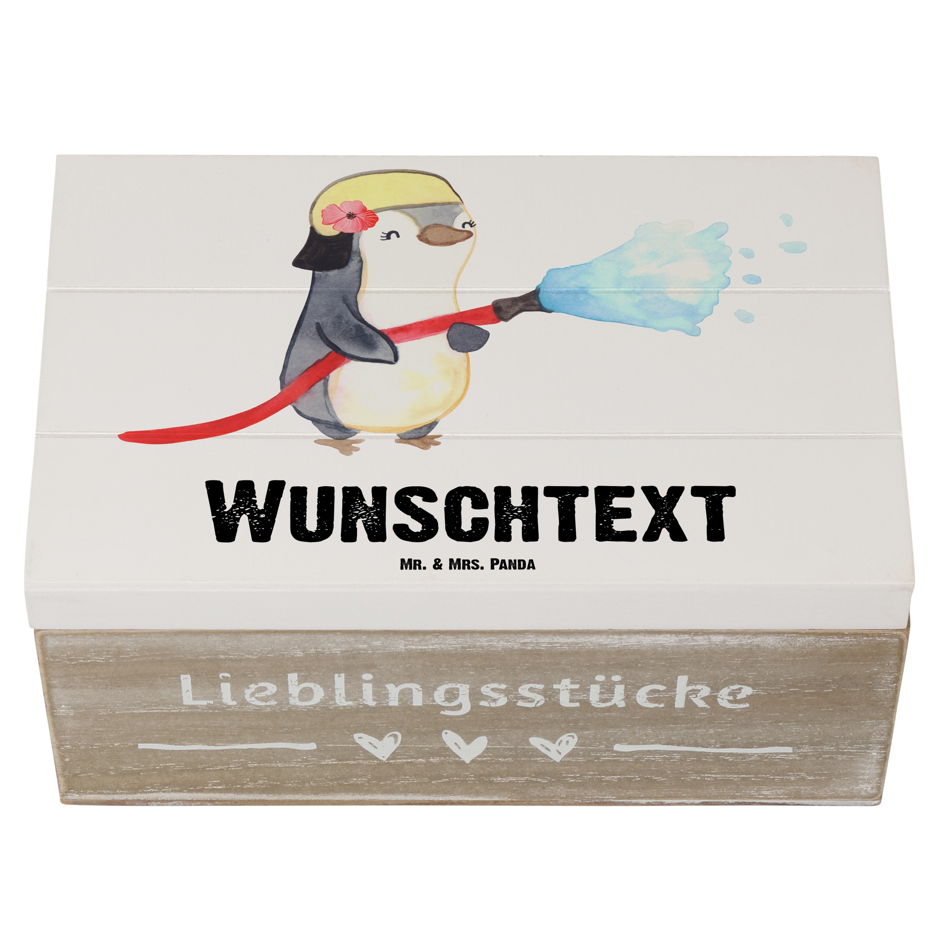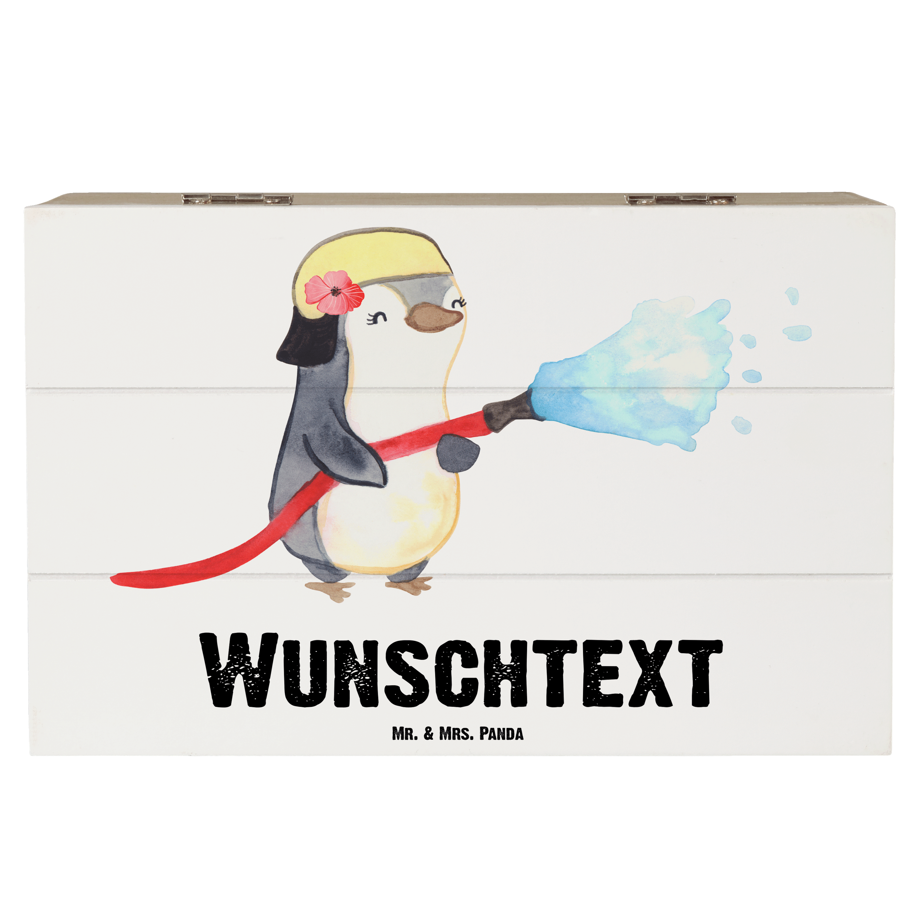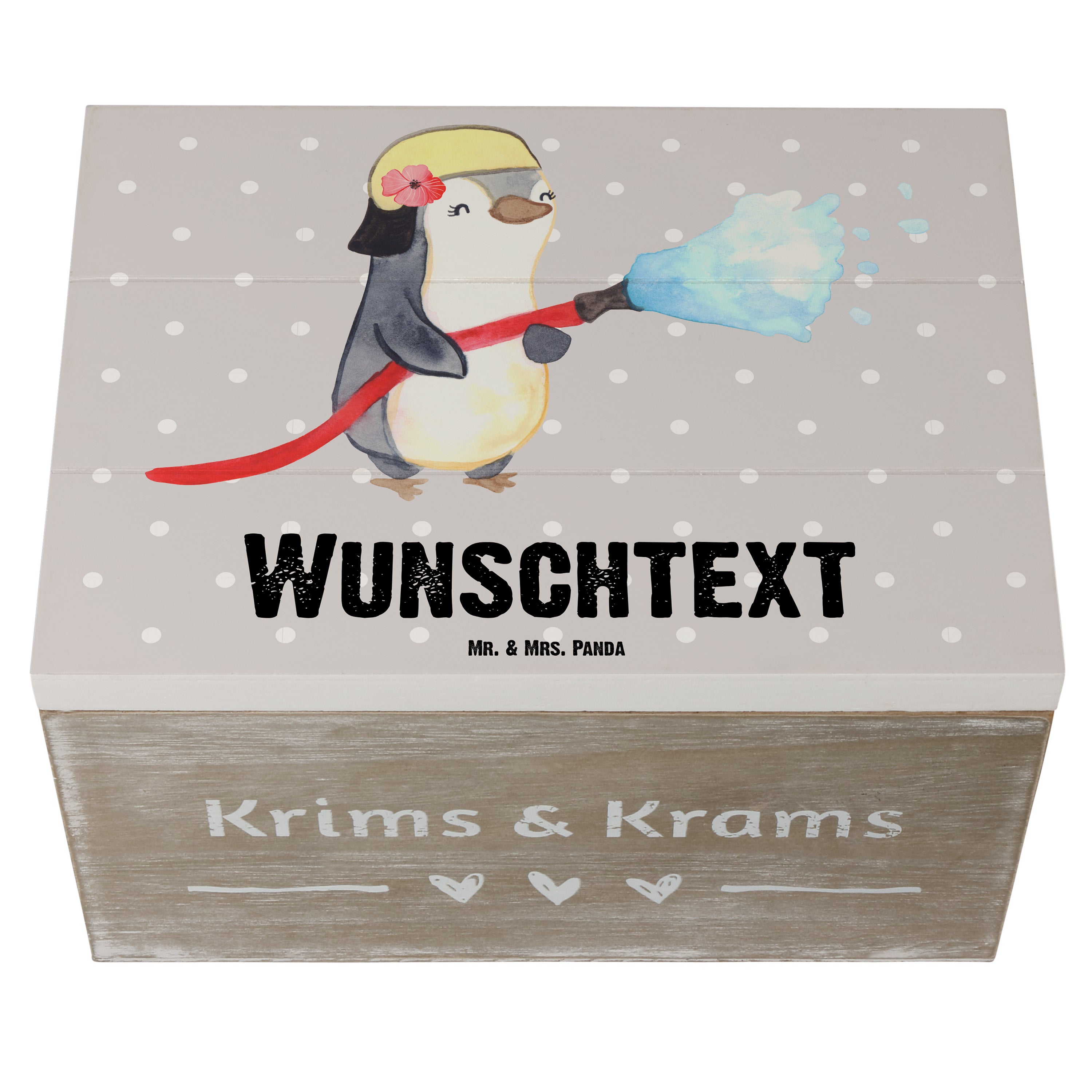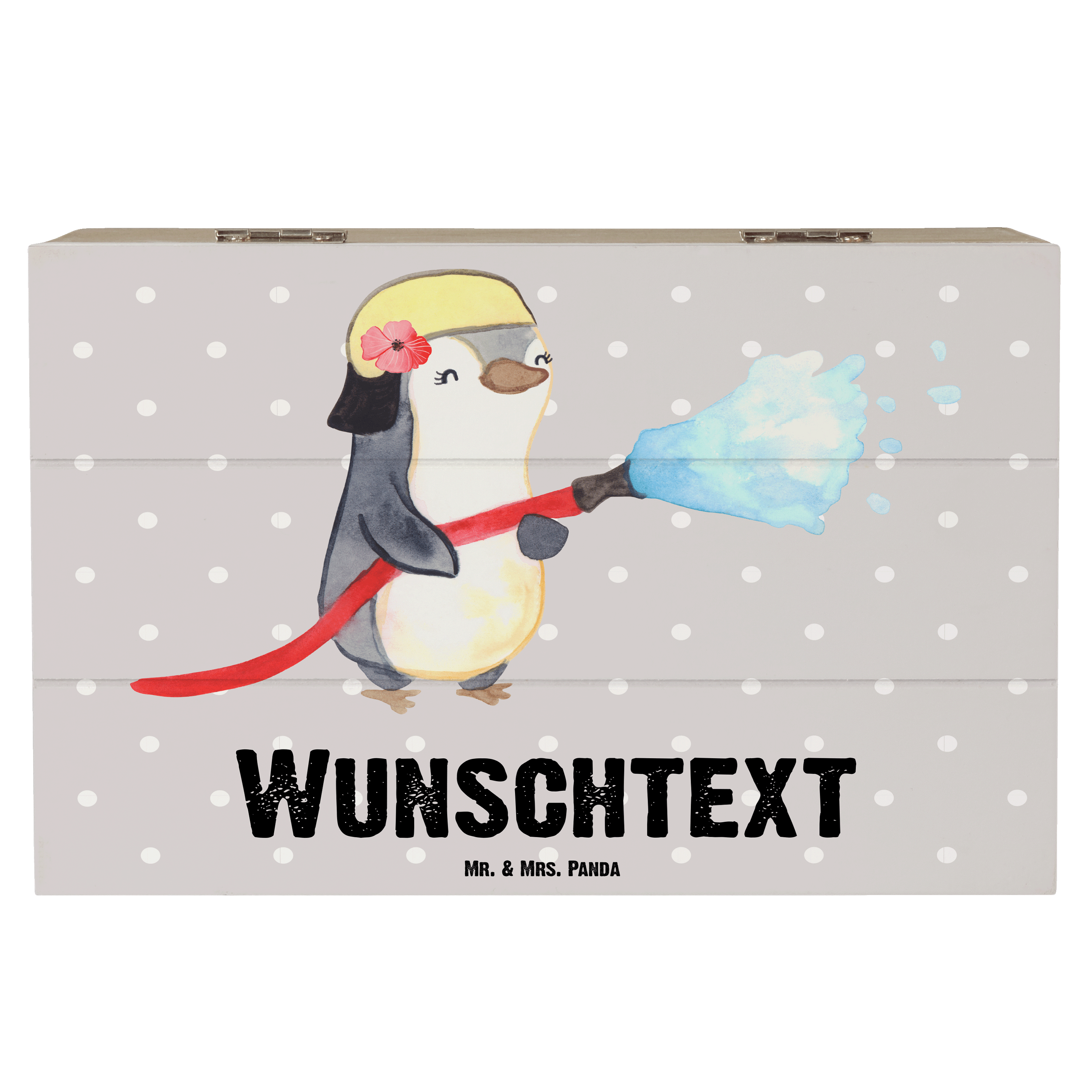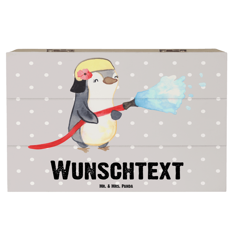 Personalisierte Holzkiste Feuerwehrfrau mit Herz - Grau Pastell - 19 x 12 cm