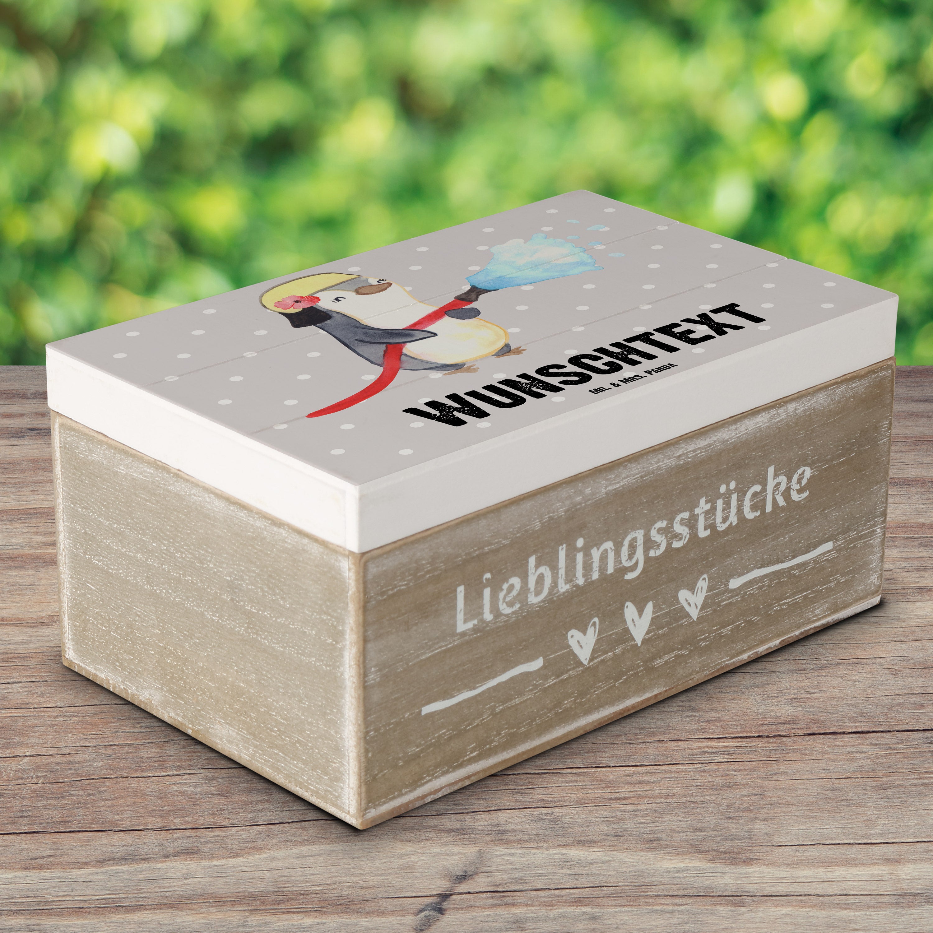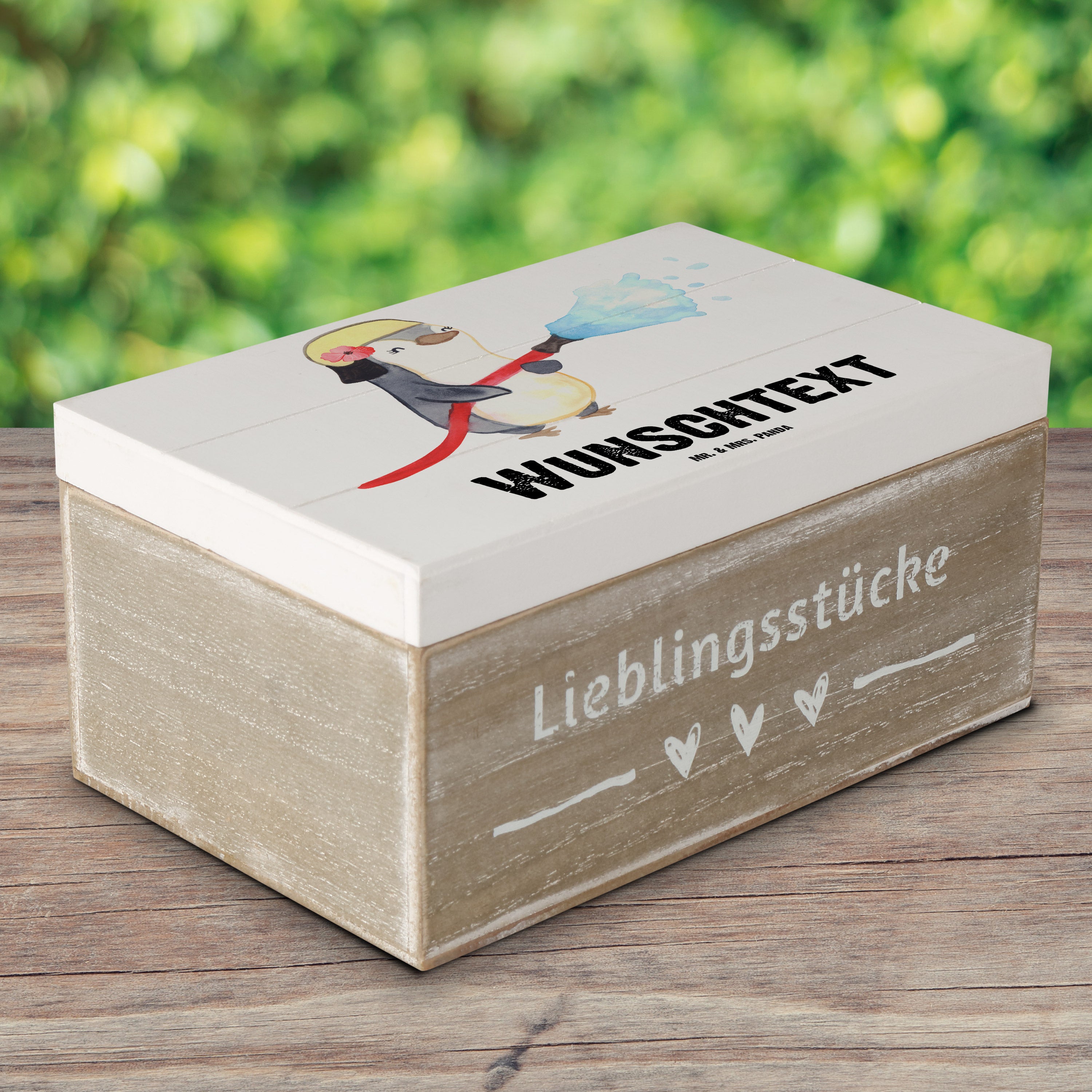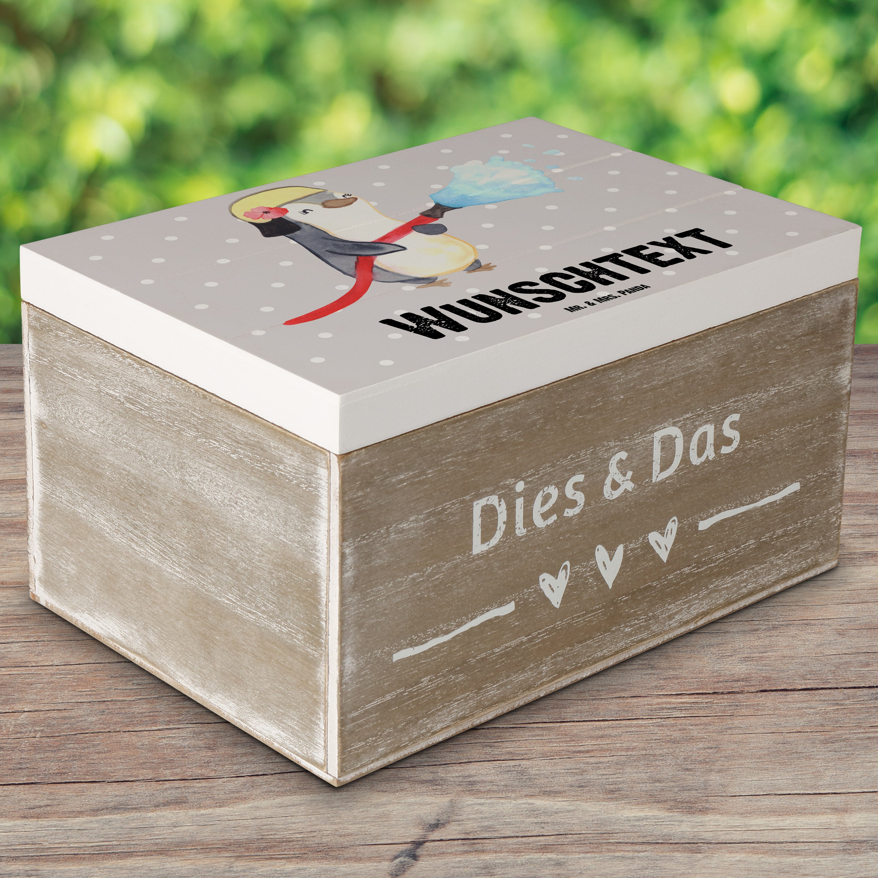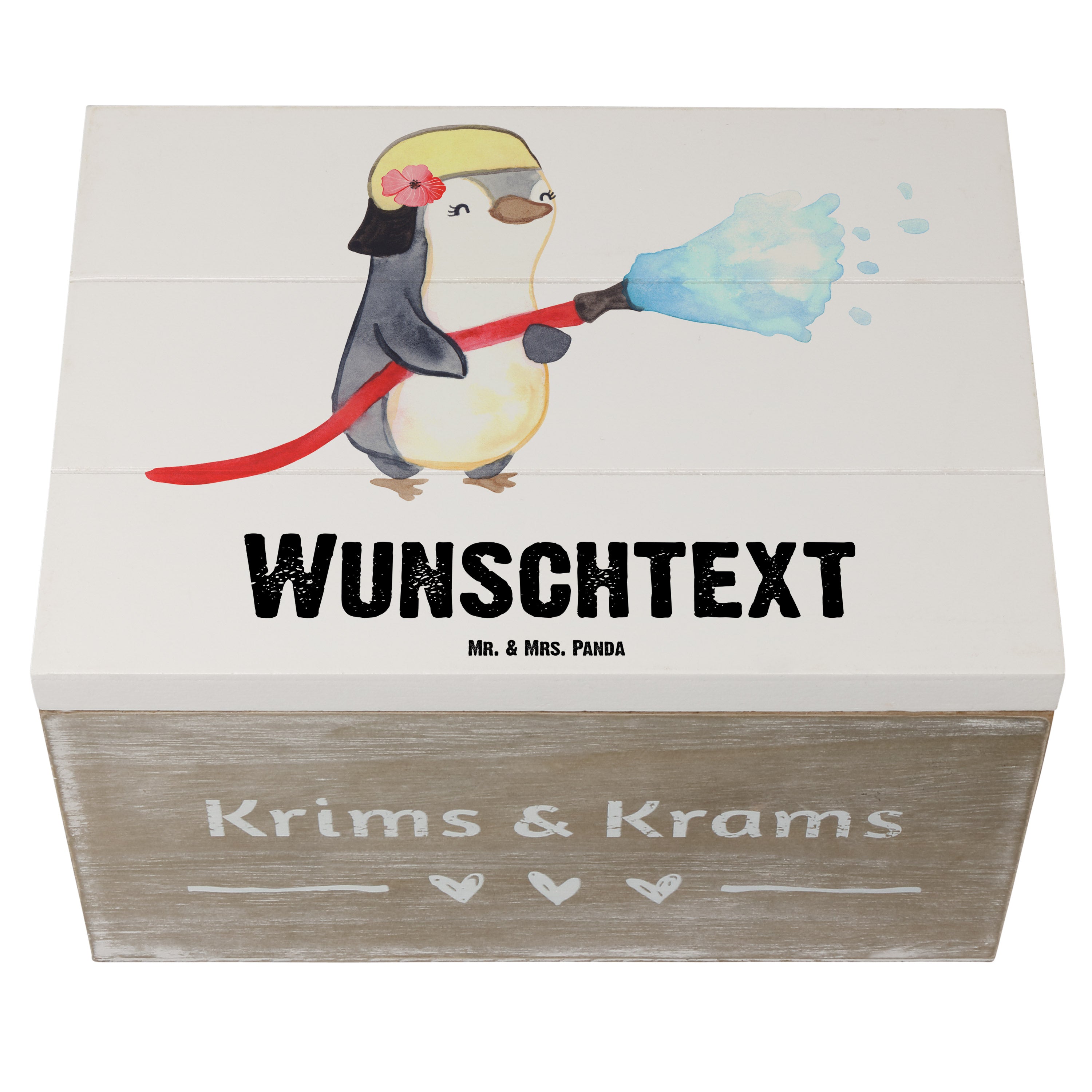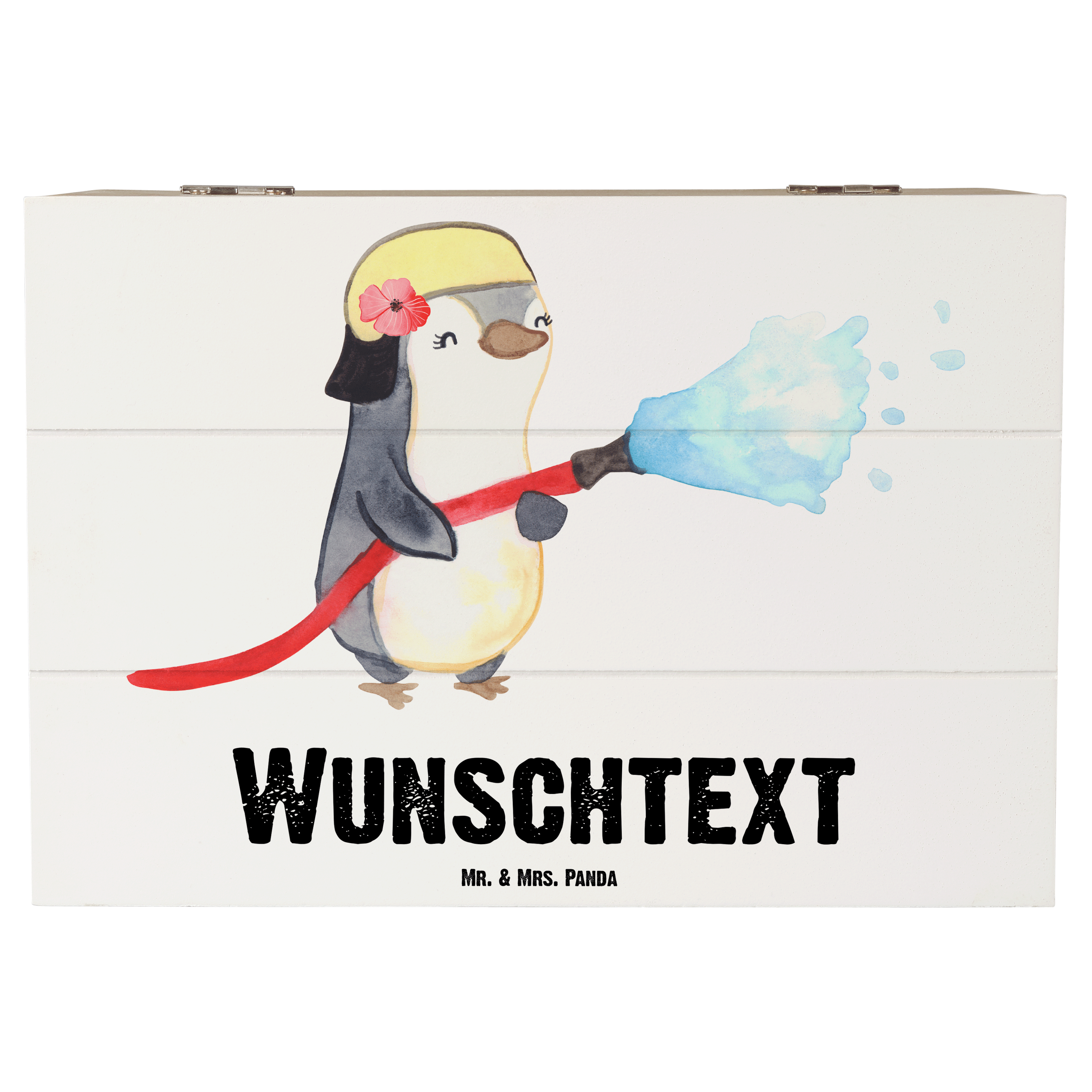 Personalisierte Holzkiste Feuerwehrfrau mit Herz - Grau Pastell - 19 x 12 cm