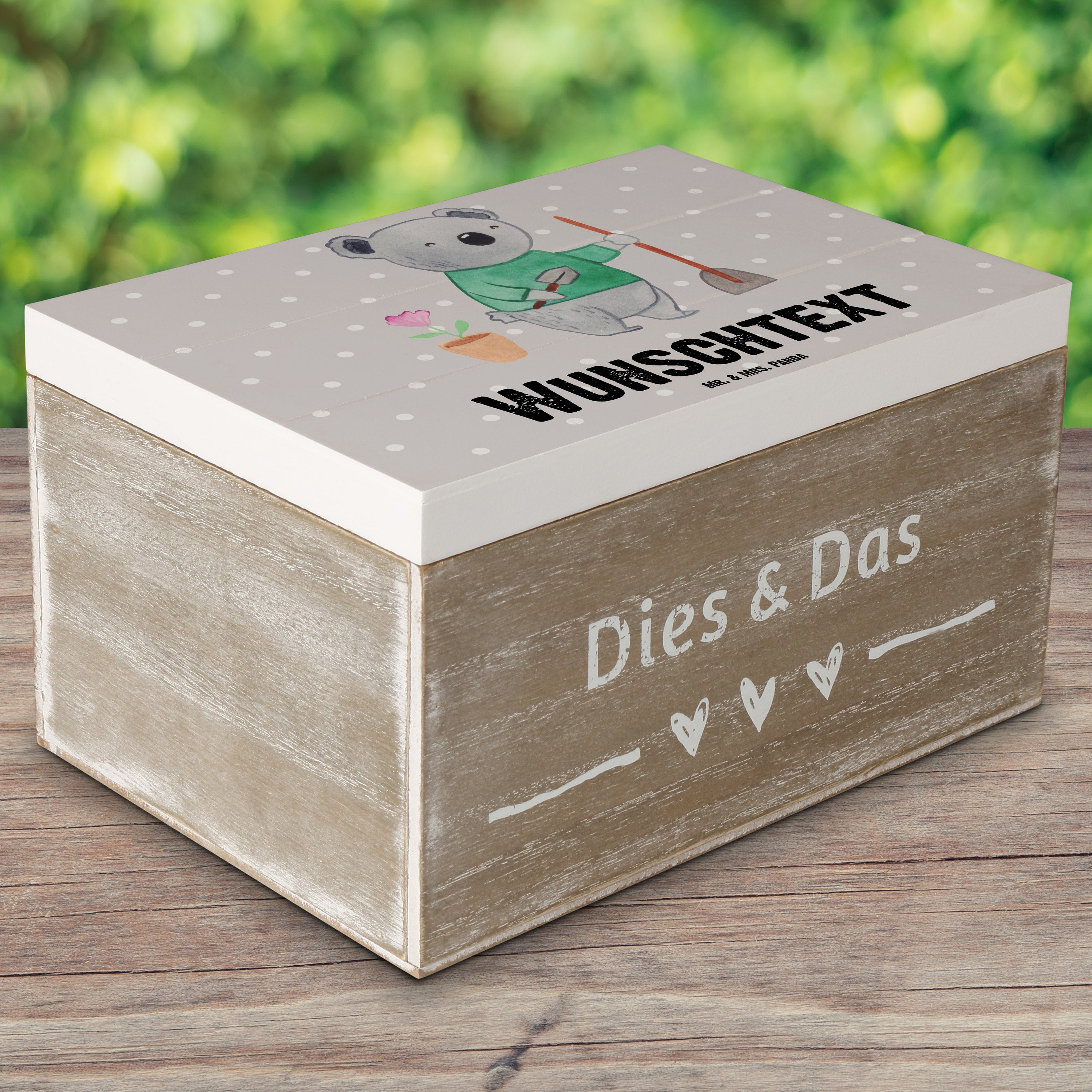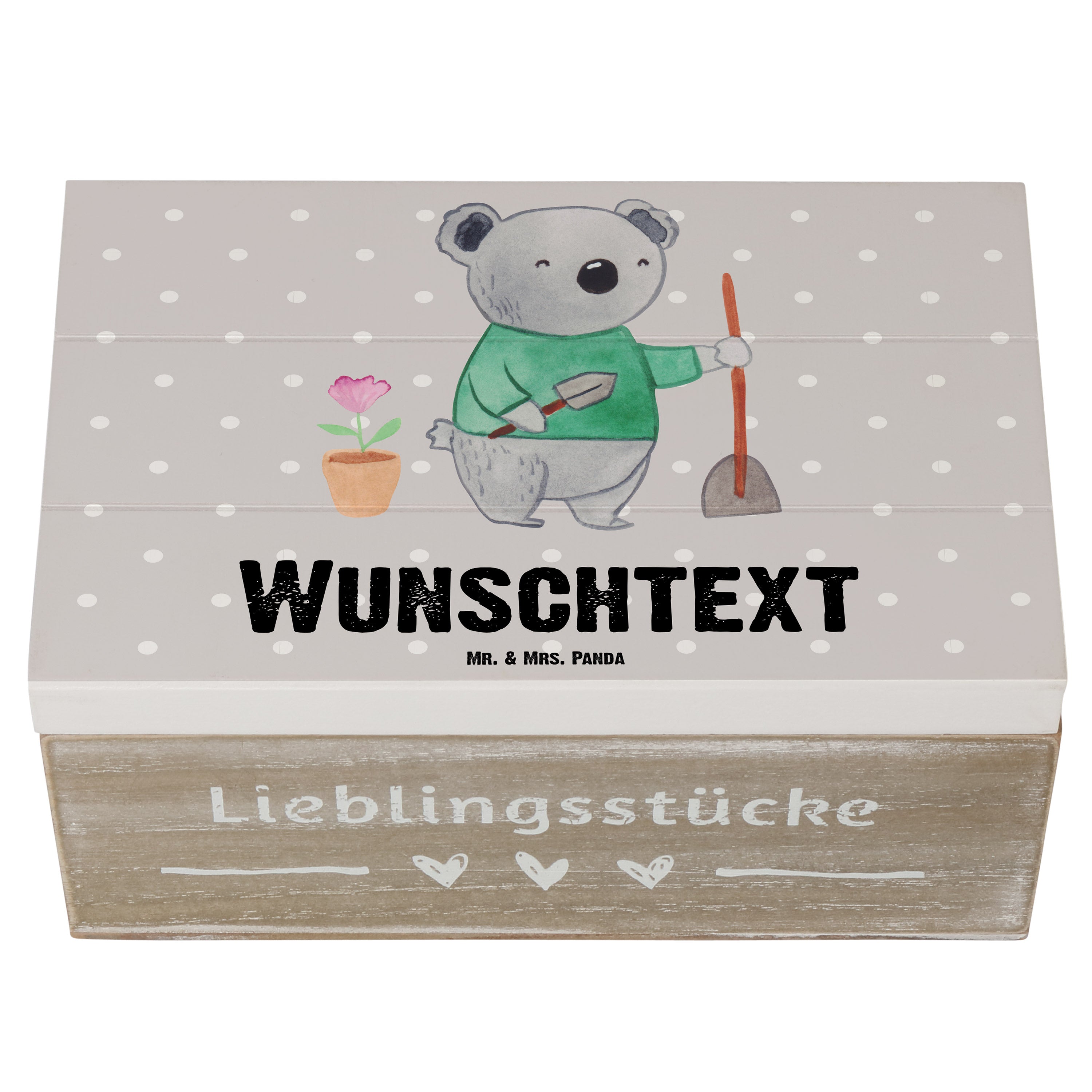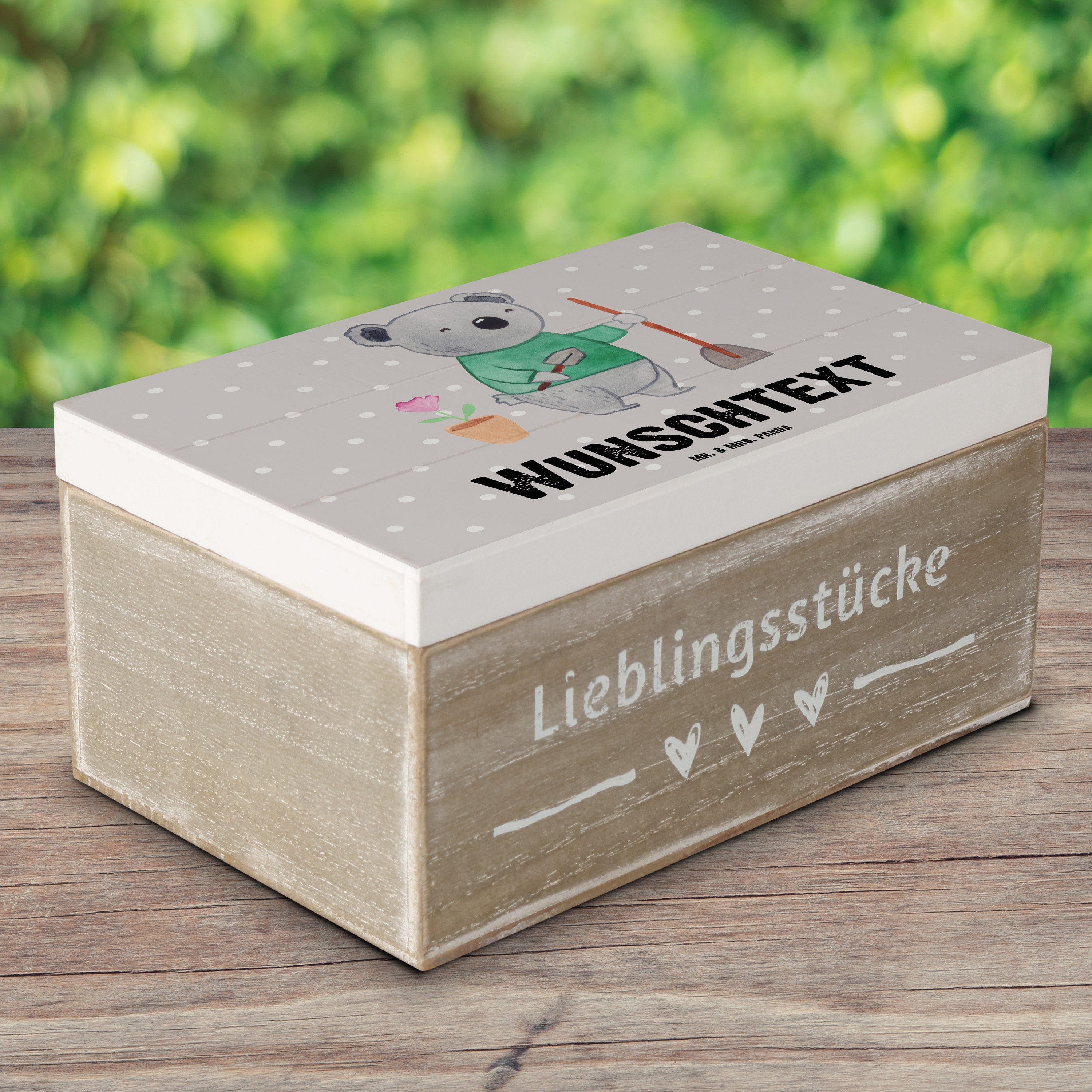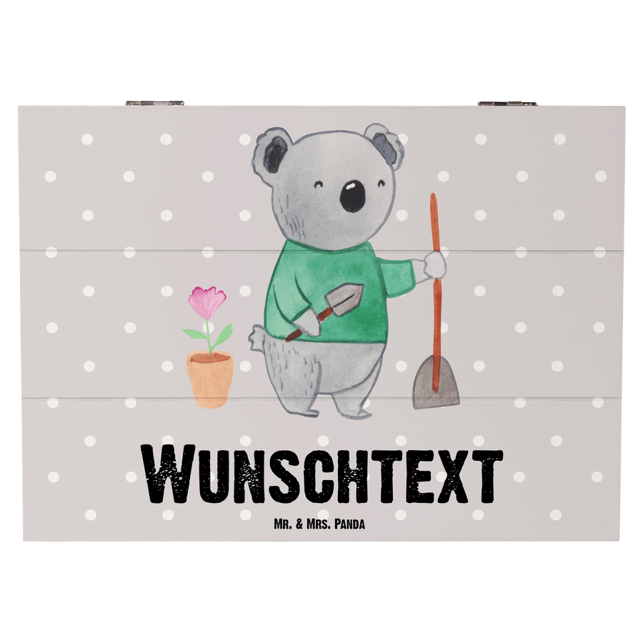 Personalisierte Holzkiste Garten- und Landschaftsbauerin mit Herz - 25 x 18 cm - Grau Pastell