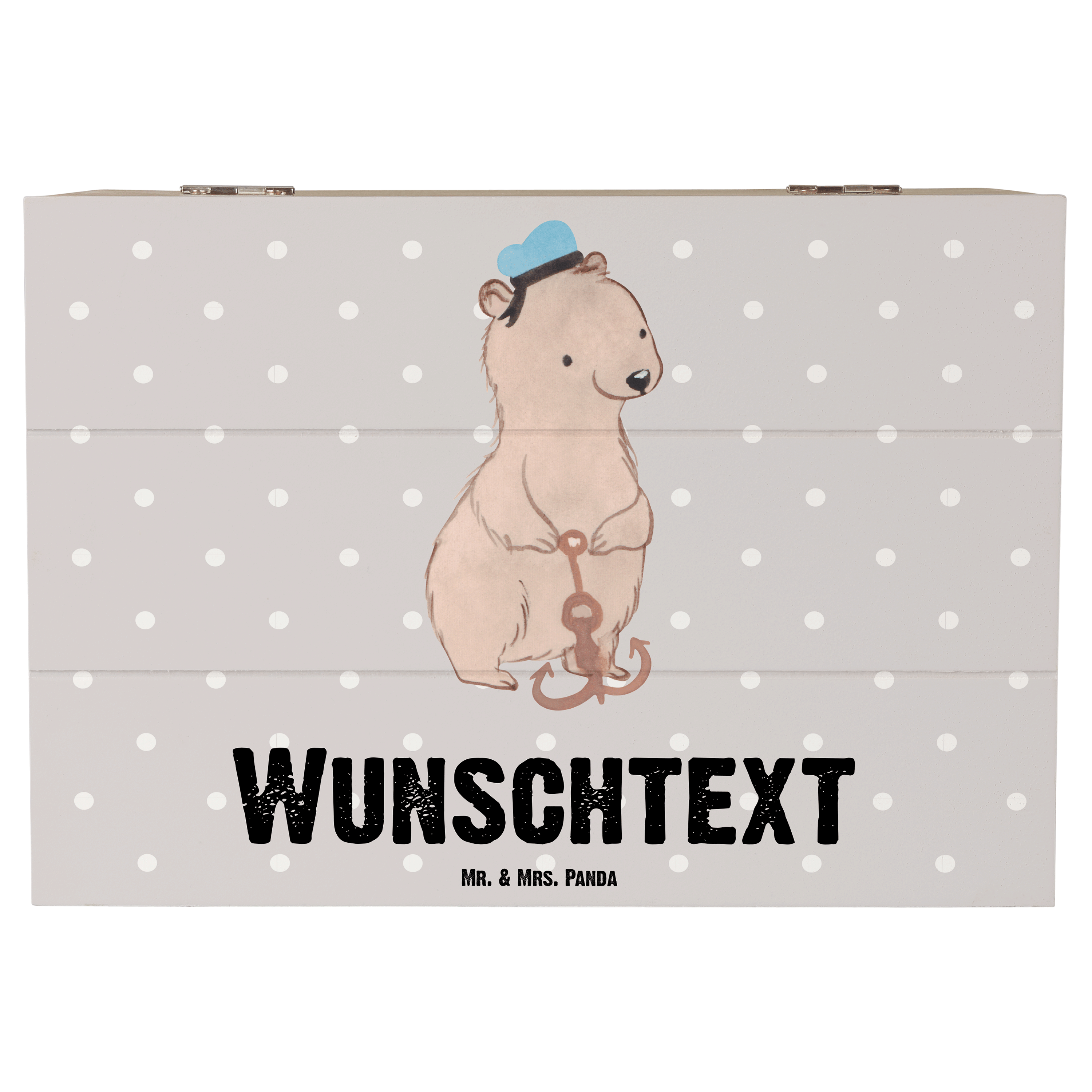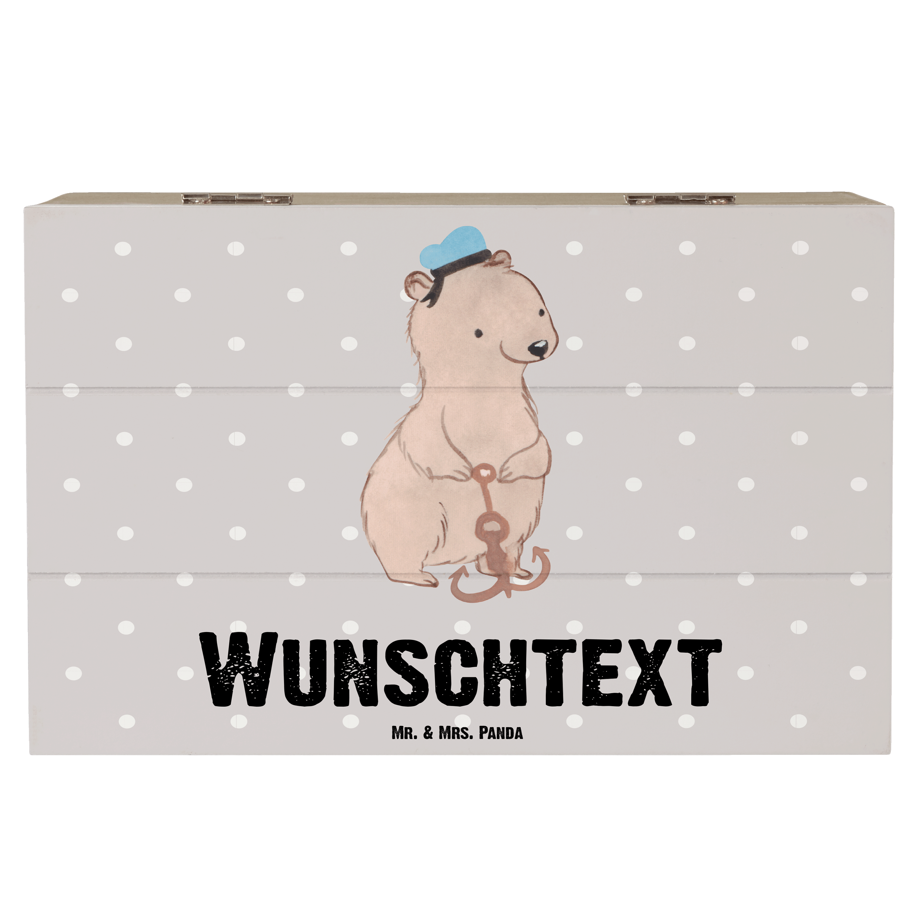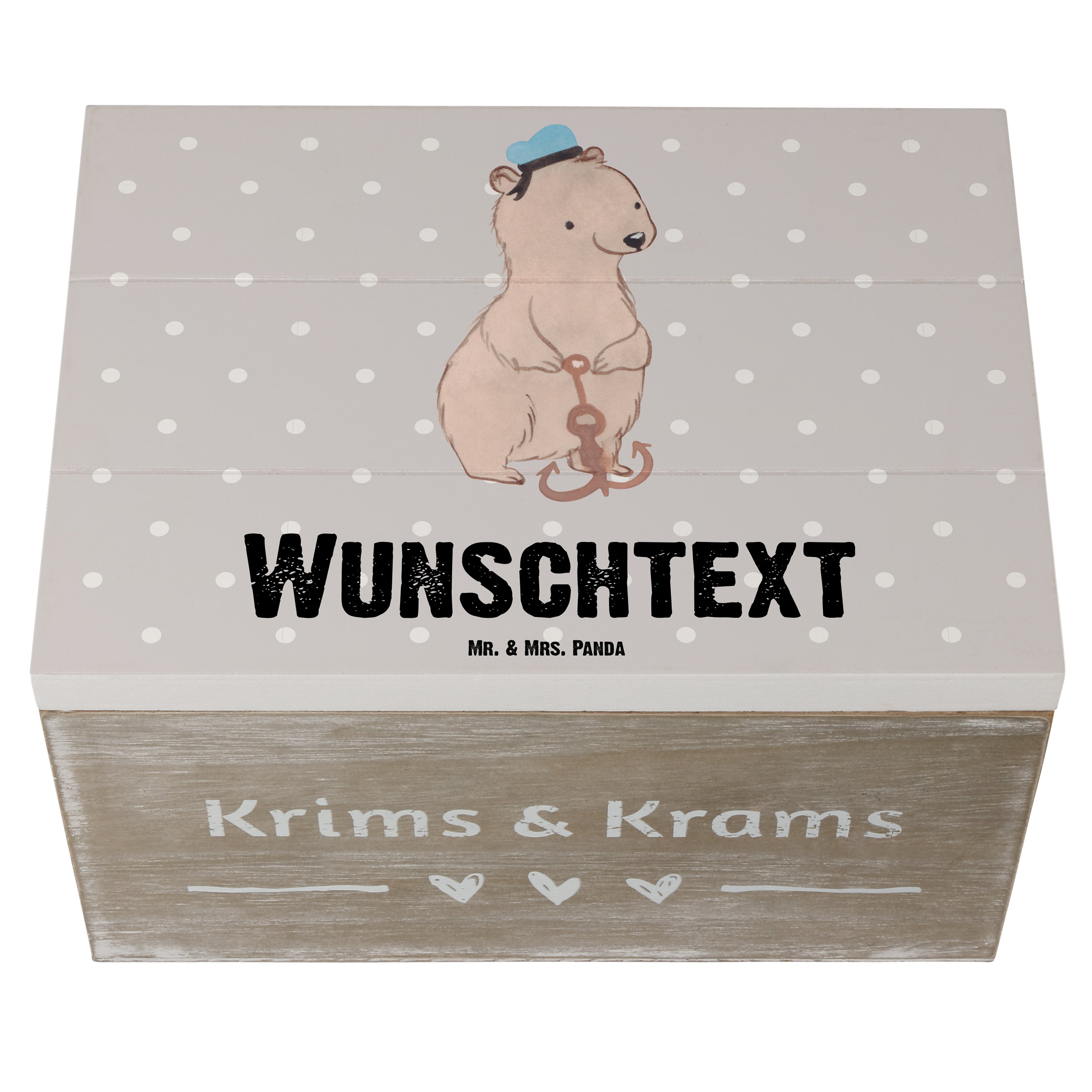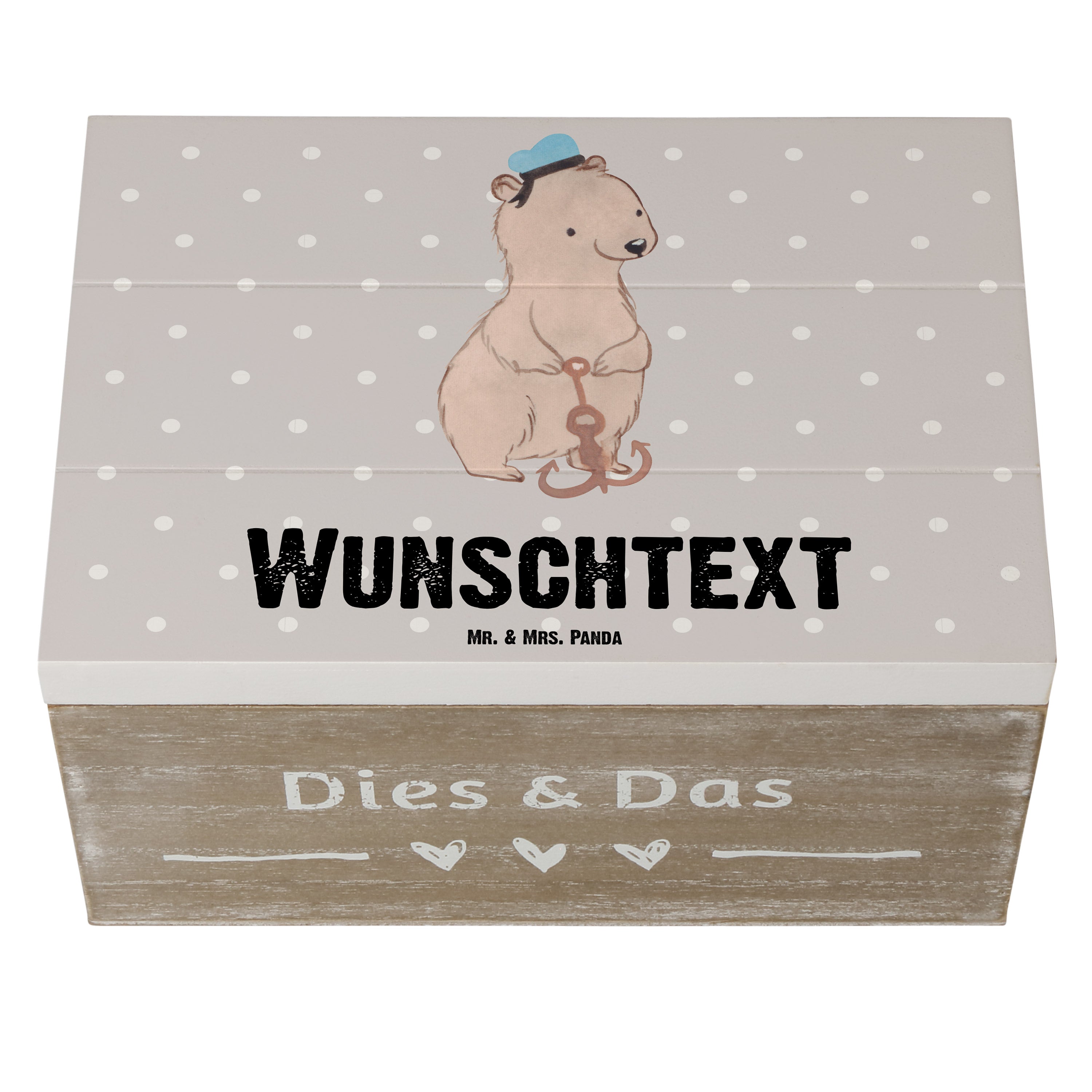 Personalisierte Holzkiste Matrosin mit Herz - Grau Pastell - 19 x 12 cm