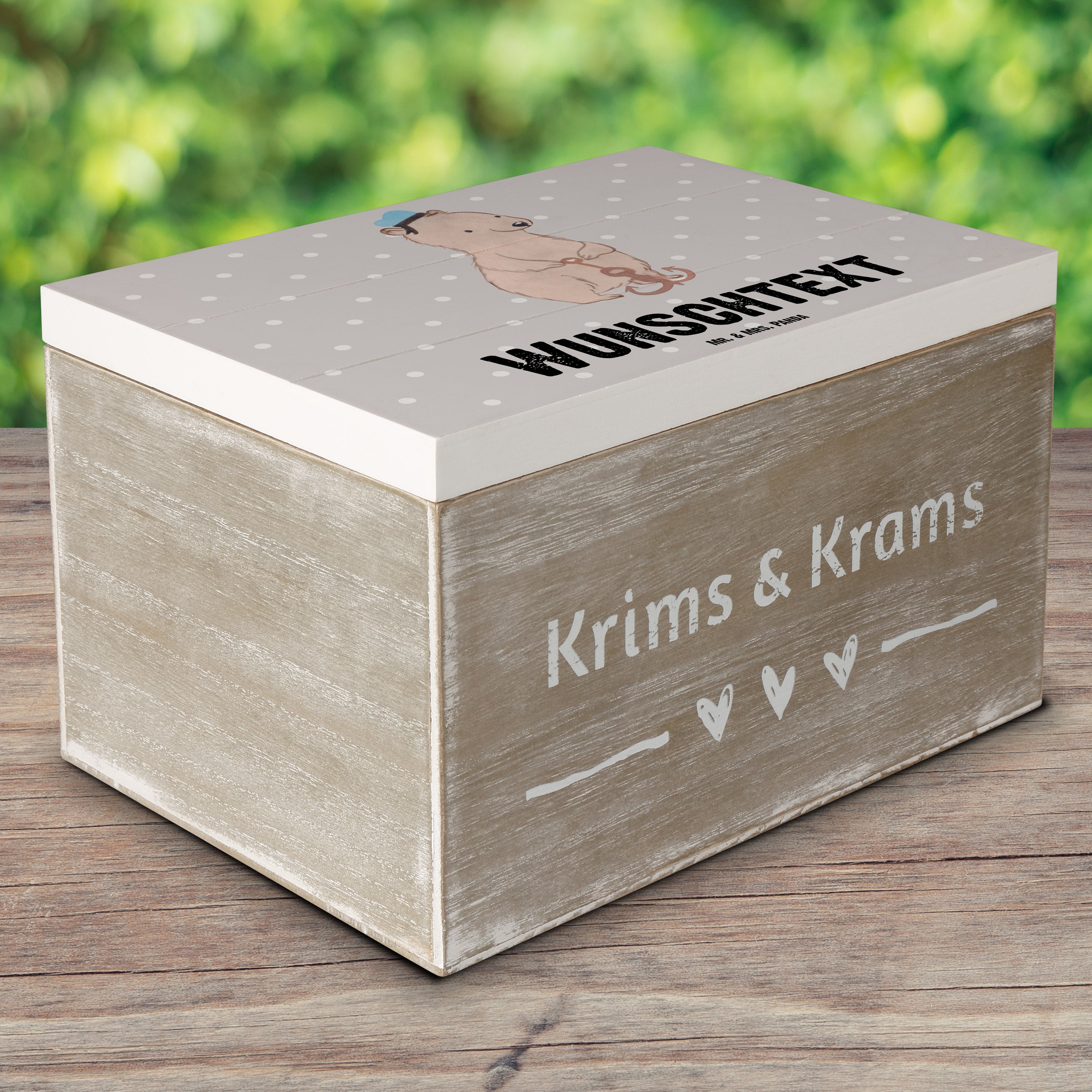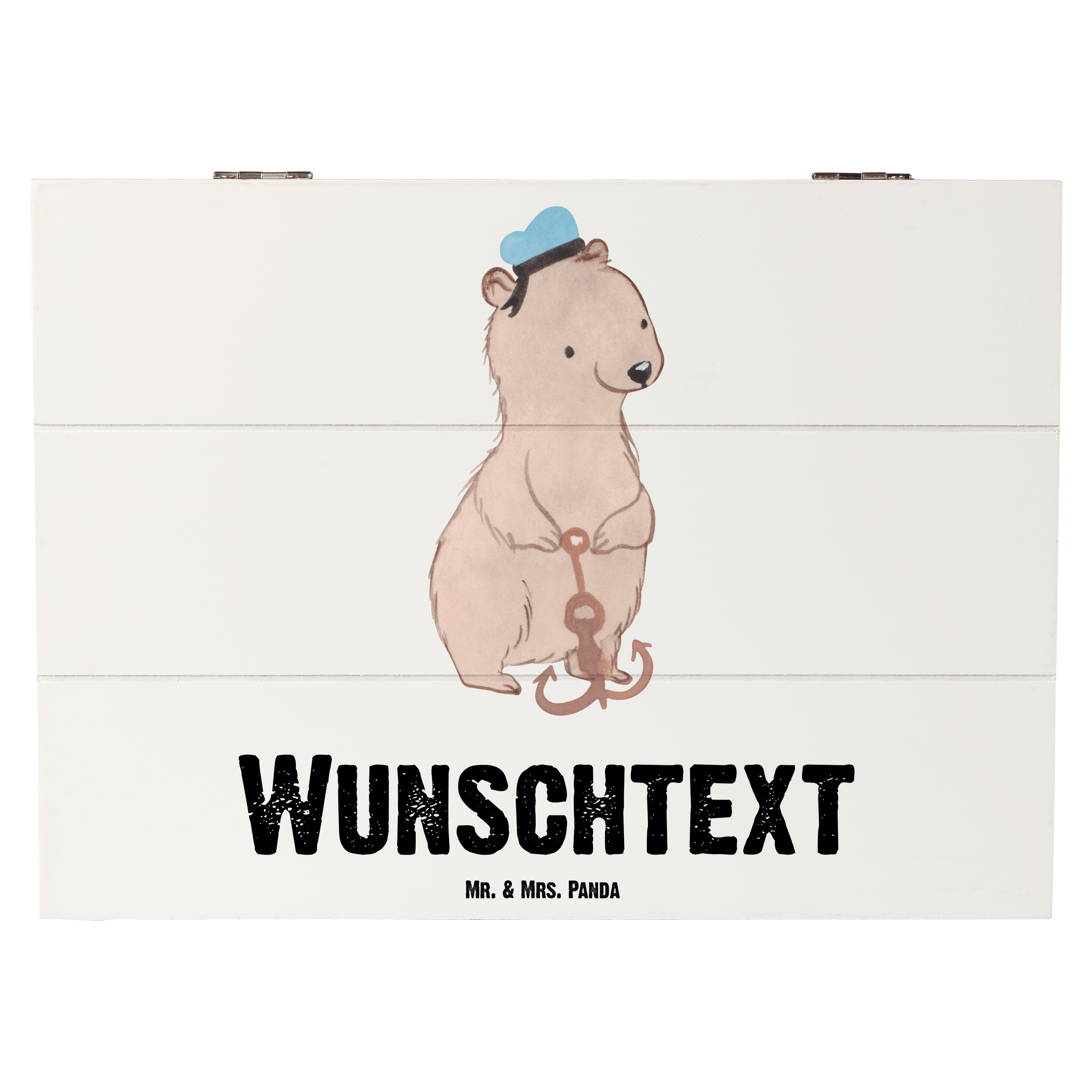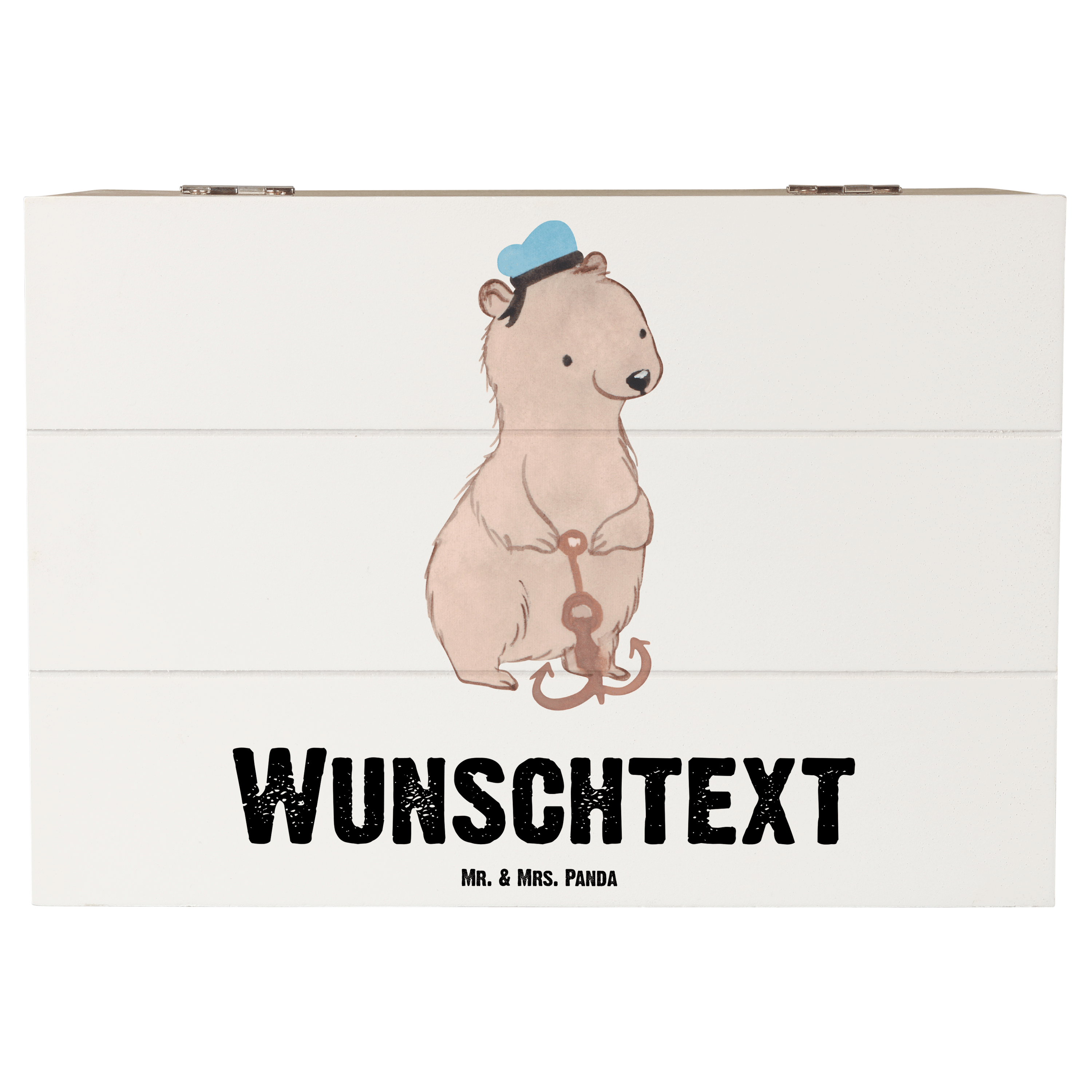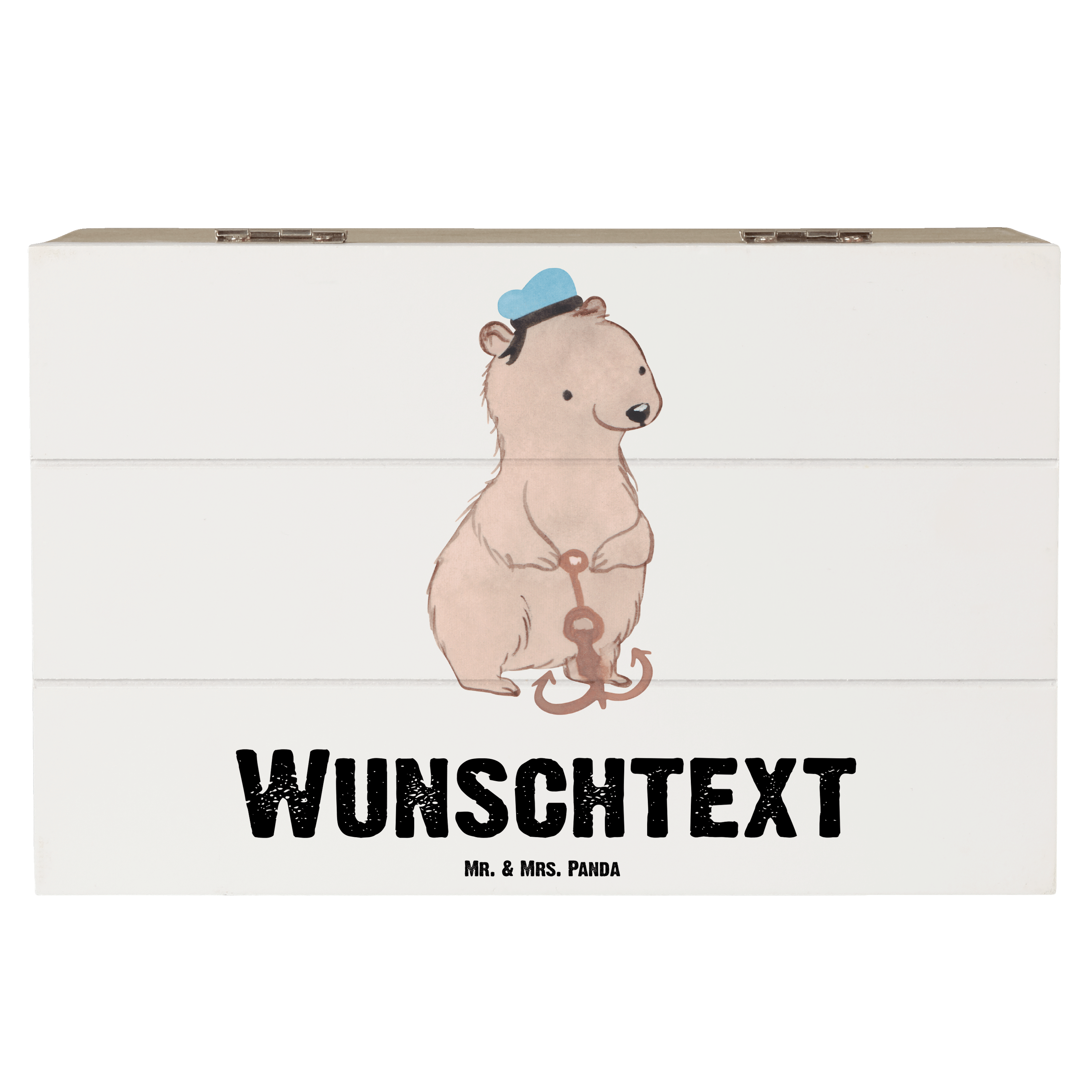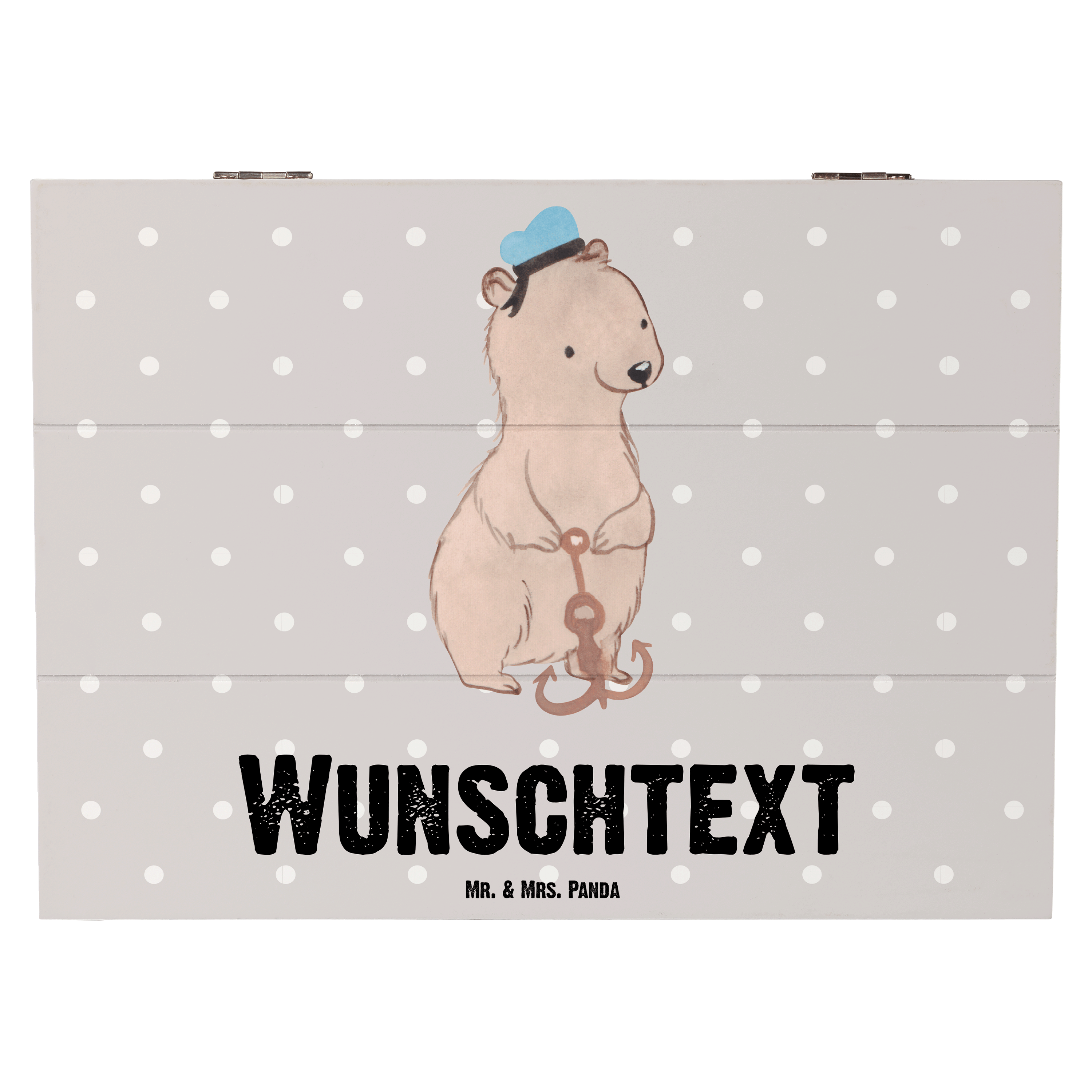 Personalisierte Holzkiste Matrosin mit Herz - Grau Pastell - 19 x 12 cm