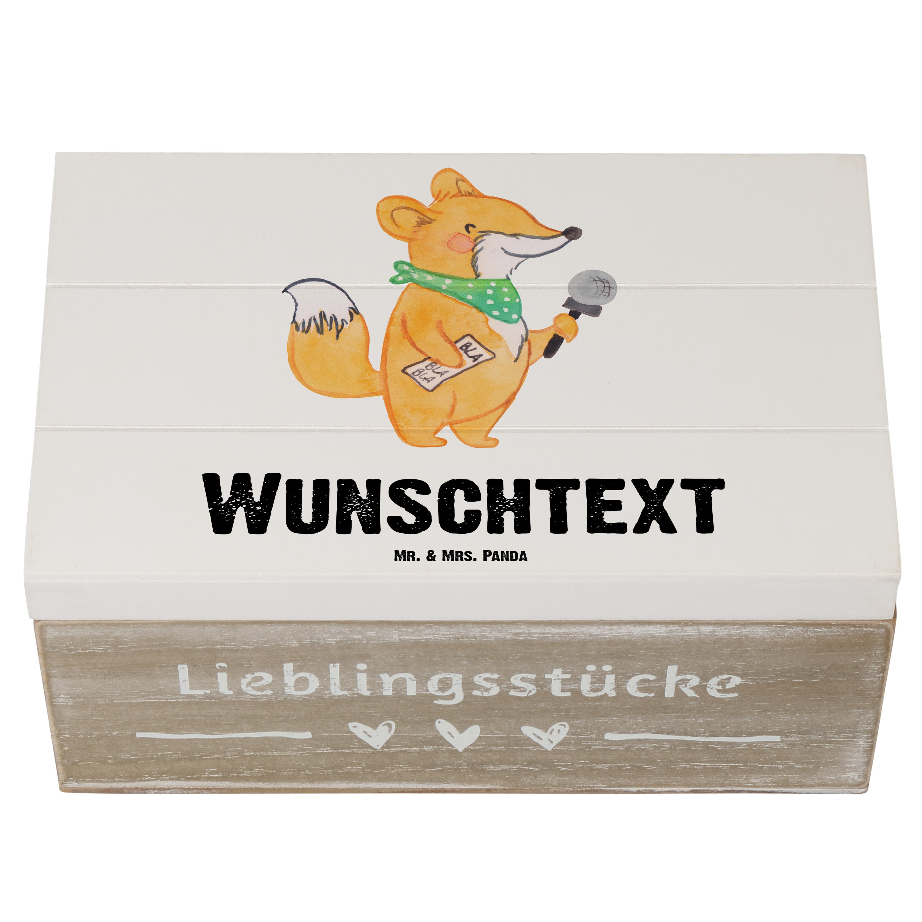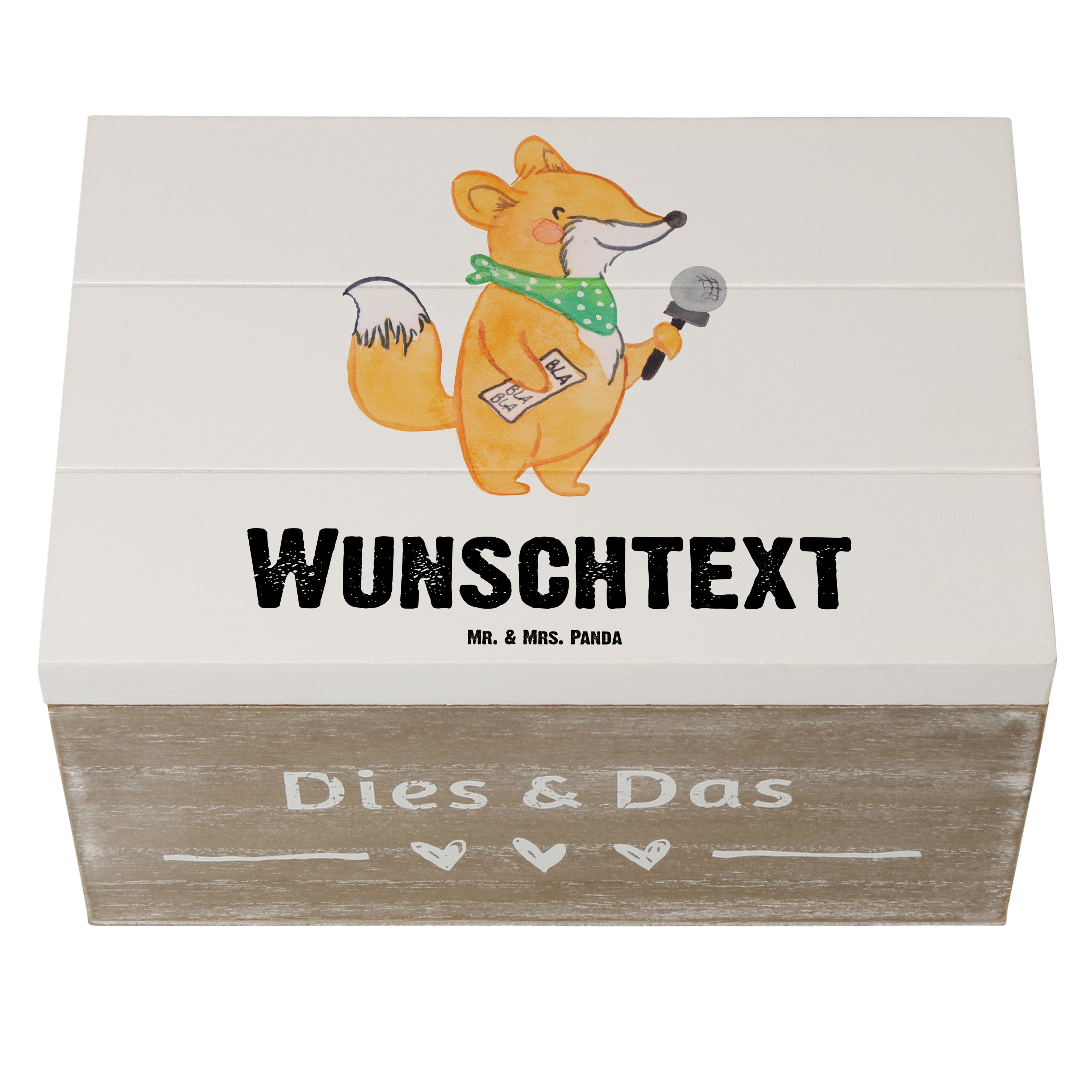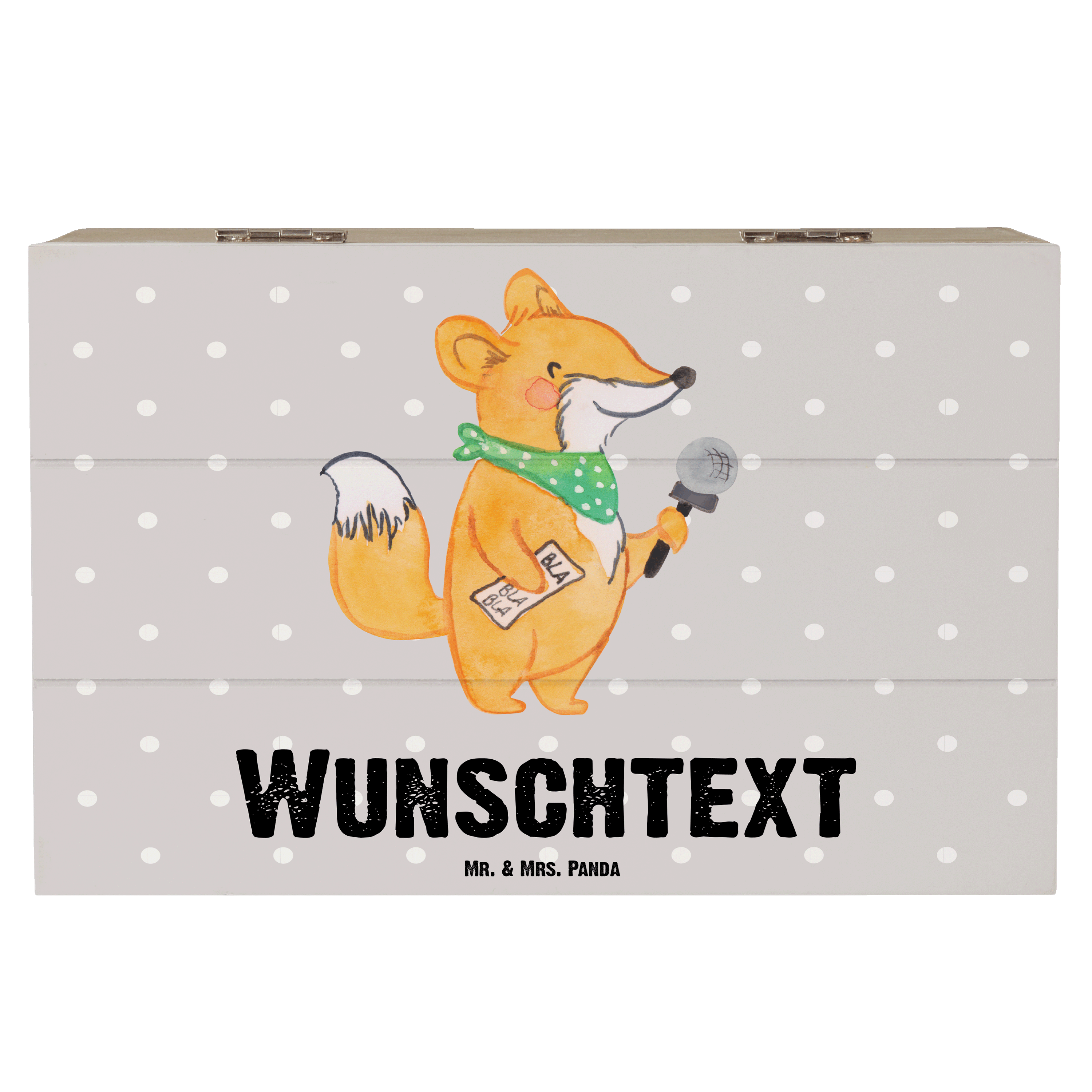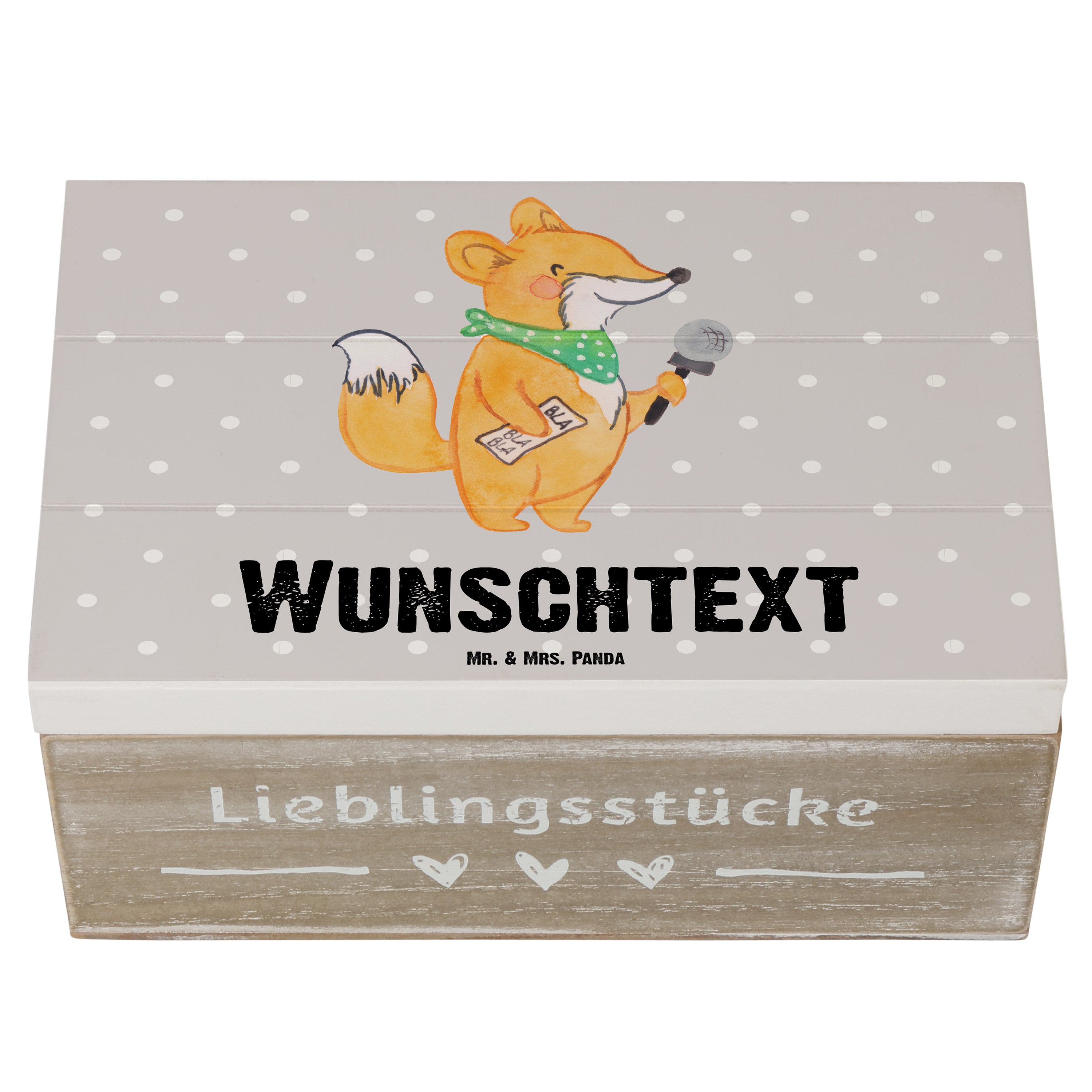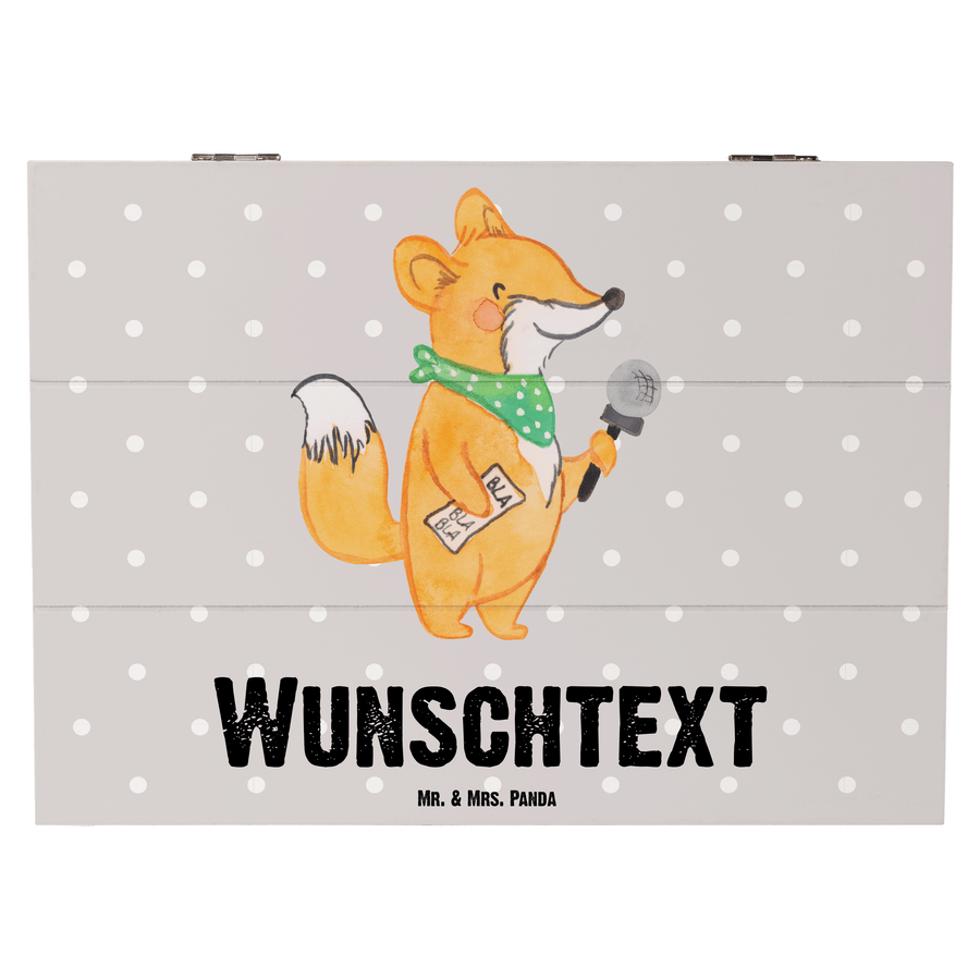 Personalisierte Holzkiste Moderatorin mit Herz - 25 x 18 cm - Grau Pastell