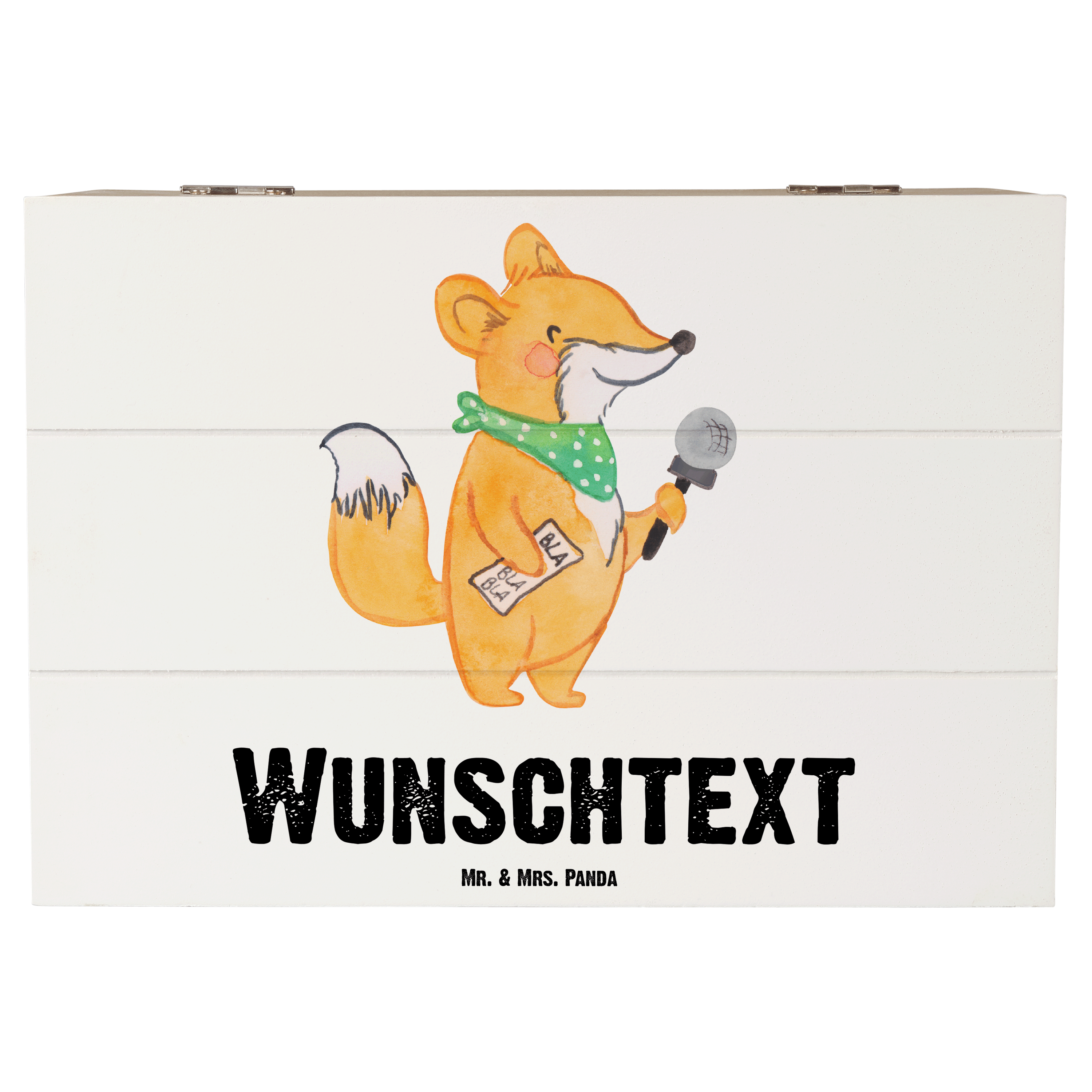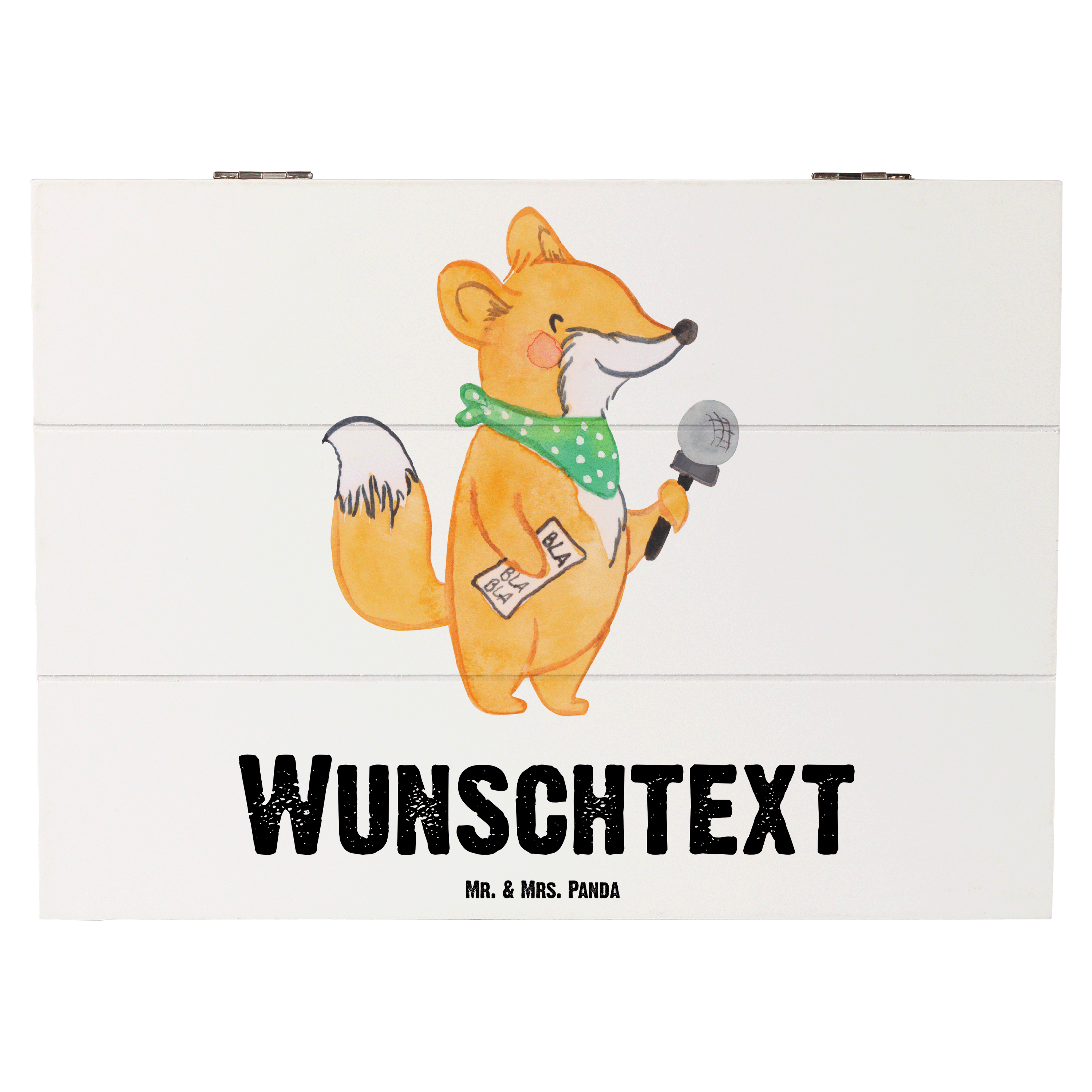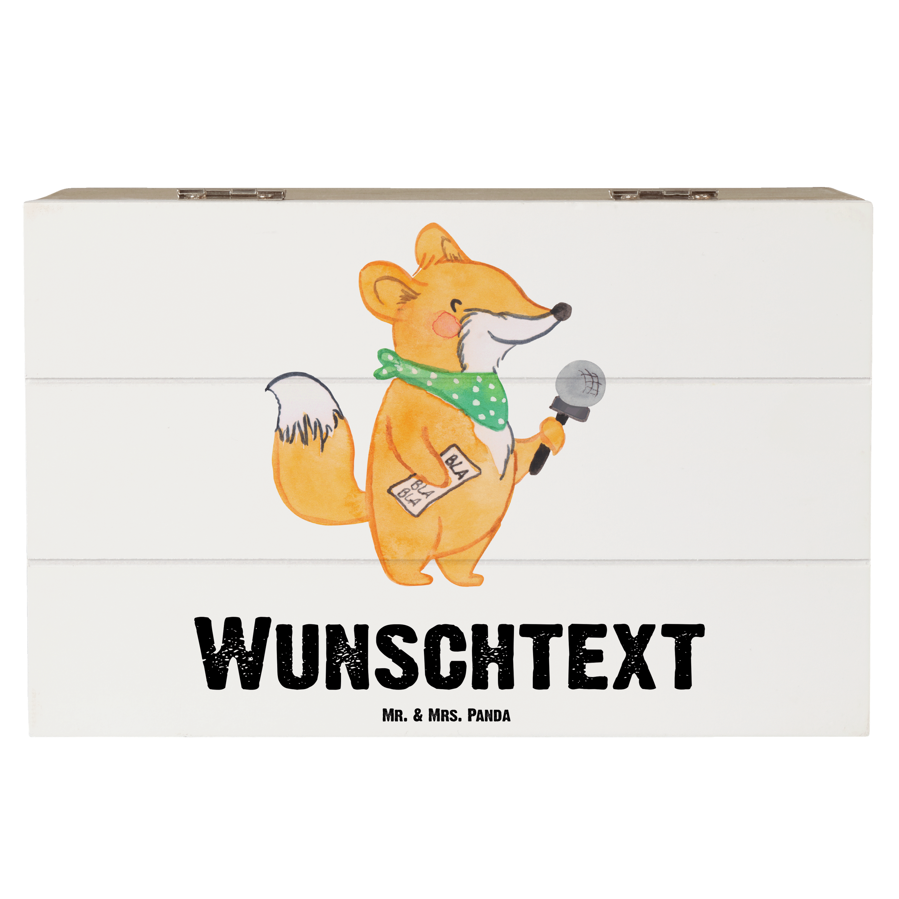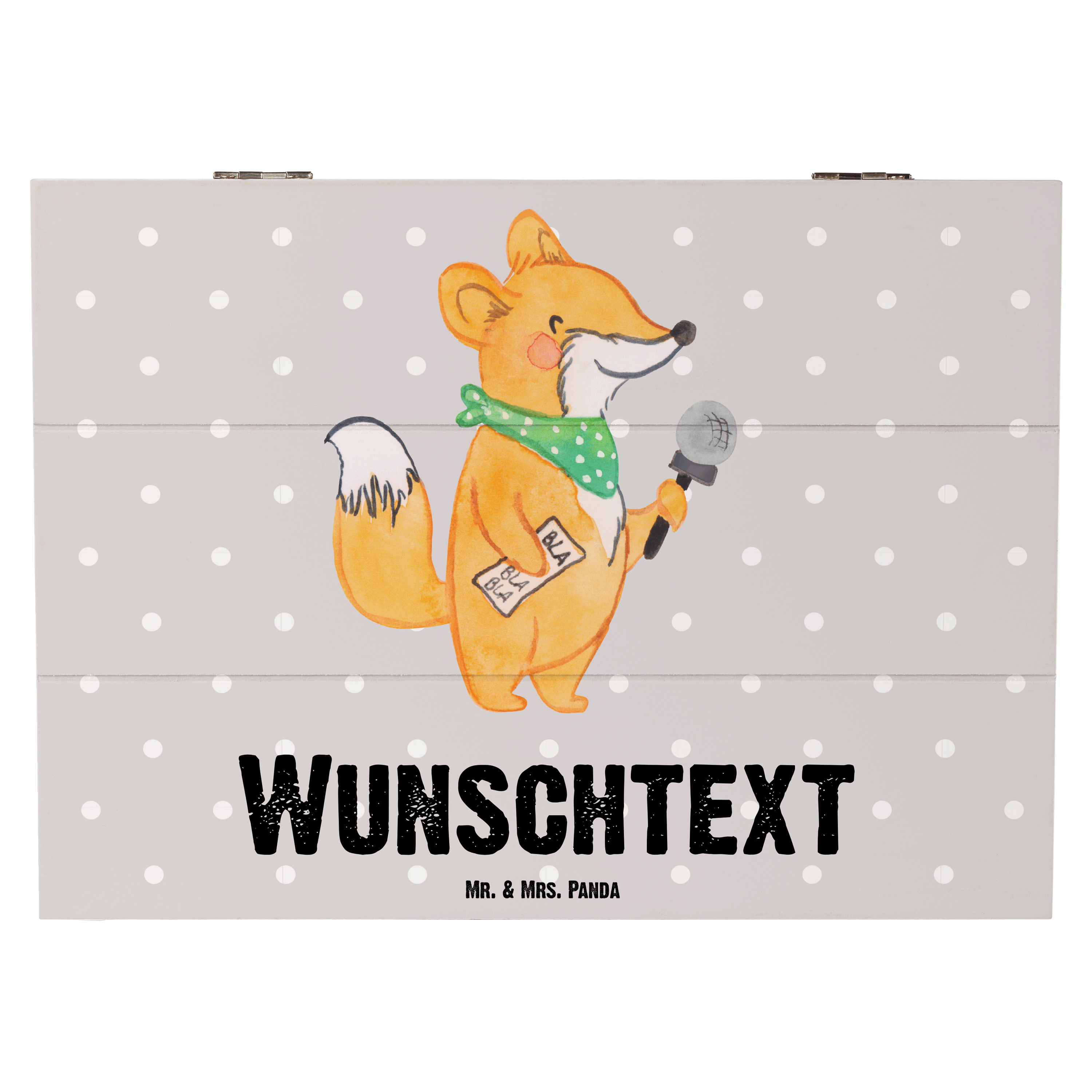 Personalisierte Holzkiste Moderatorin mit Herz - 25 x 18 cm - Grau Pastell