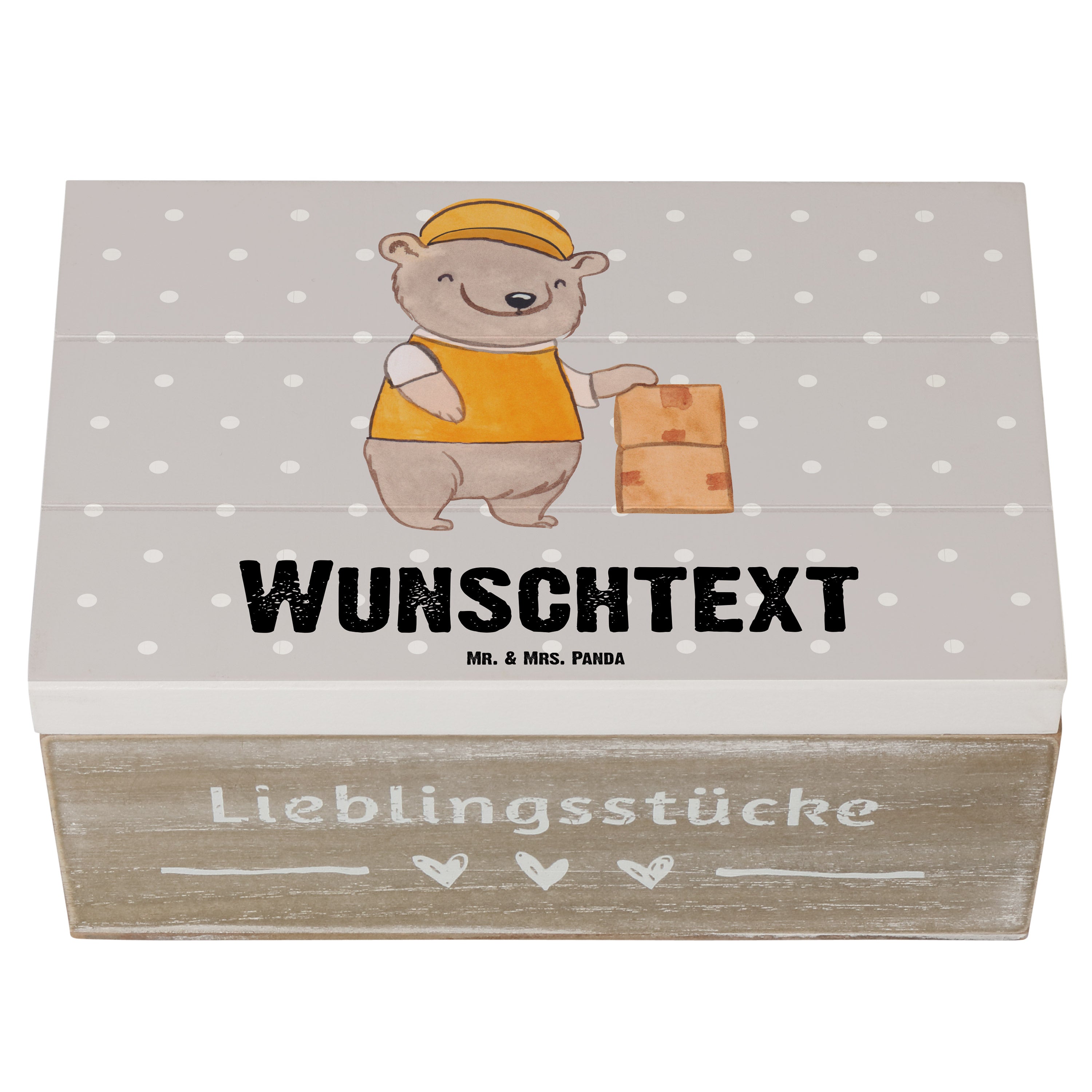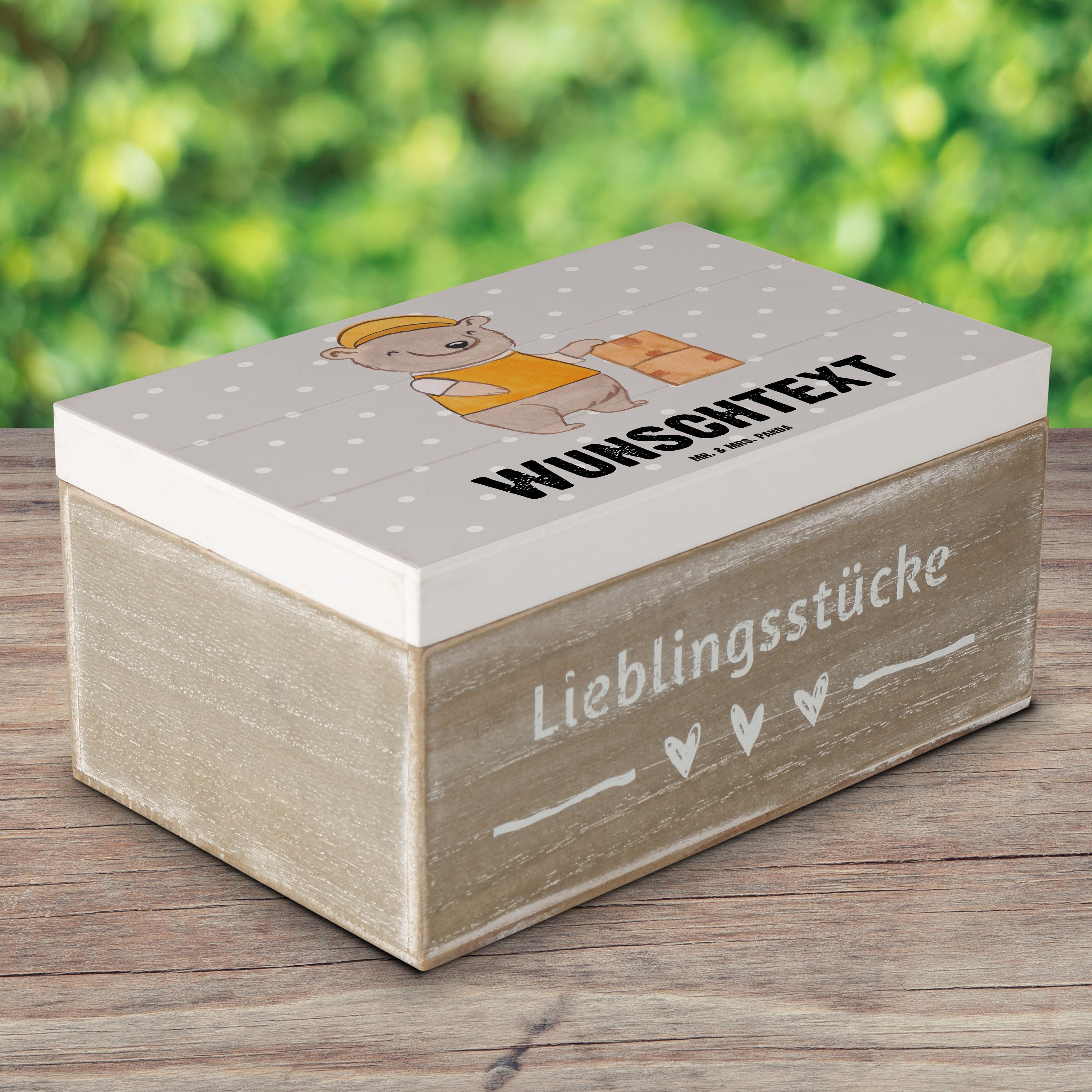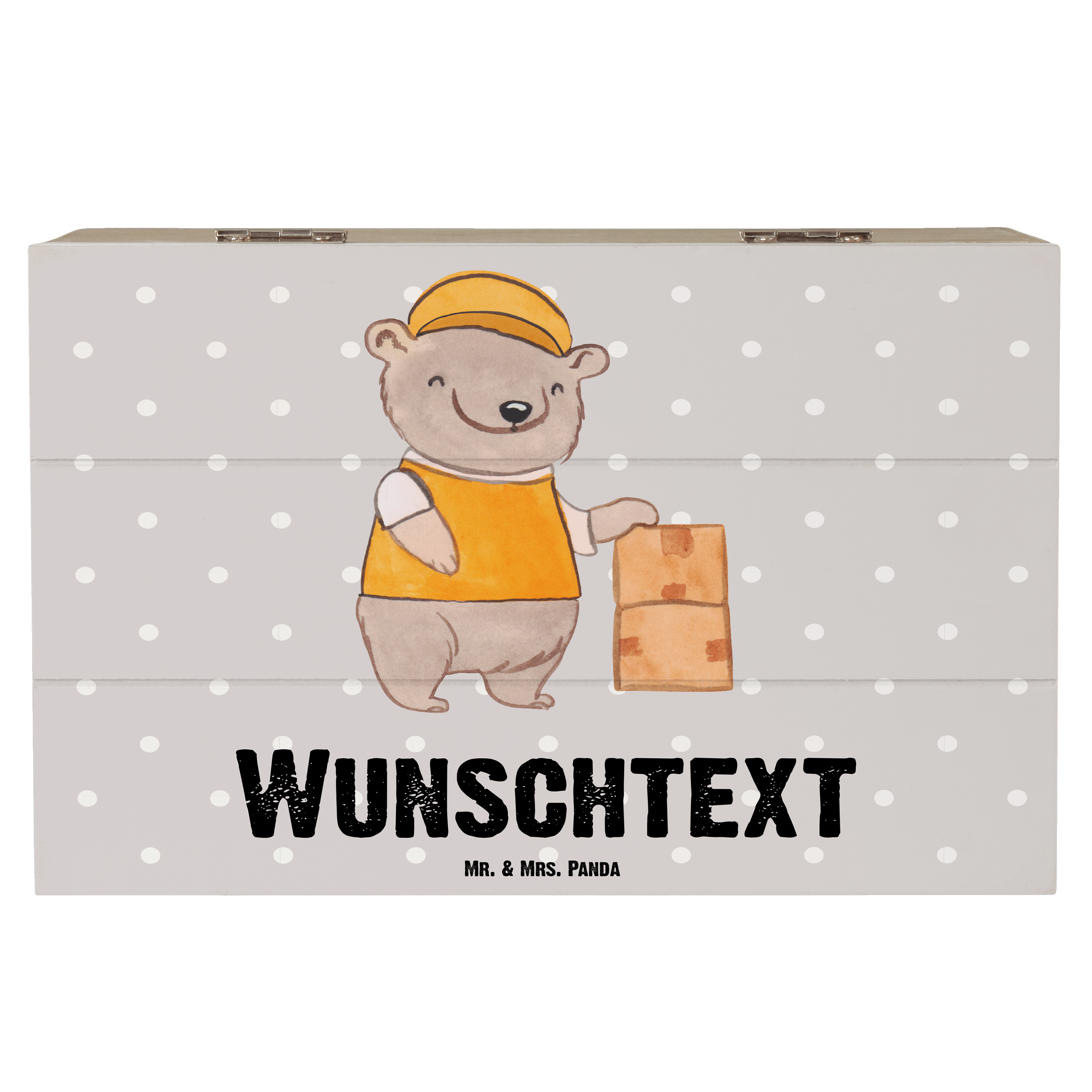Personalisierte Holzkiste Paketzusteller mit Herz - Weiß - 19 x 12 cm