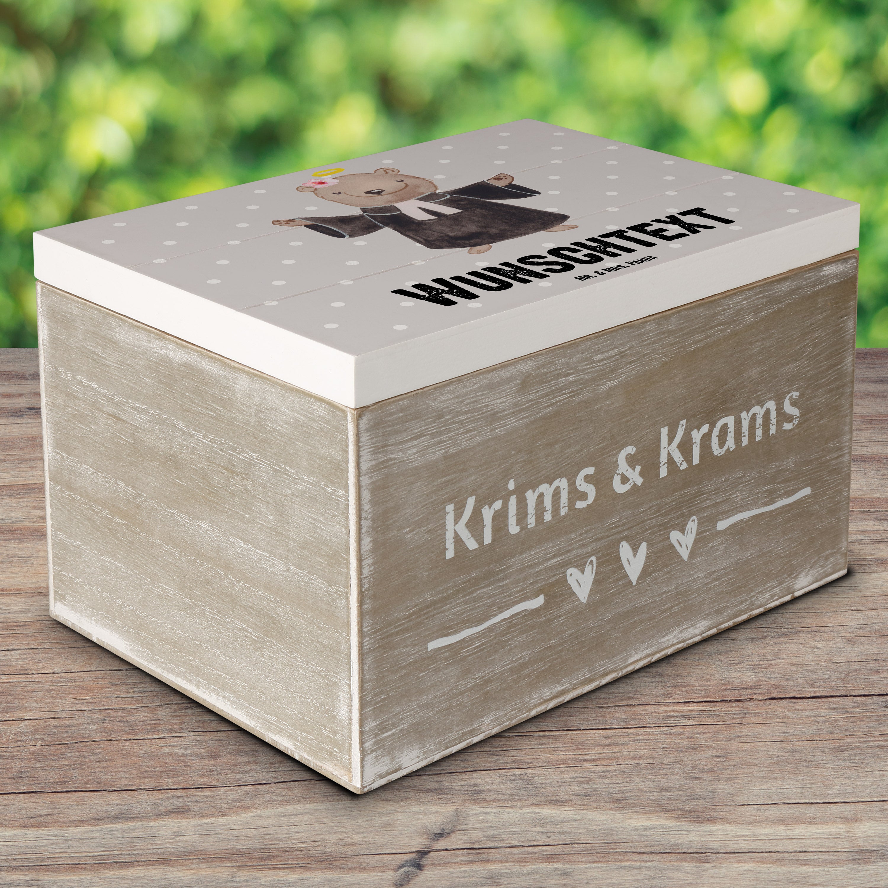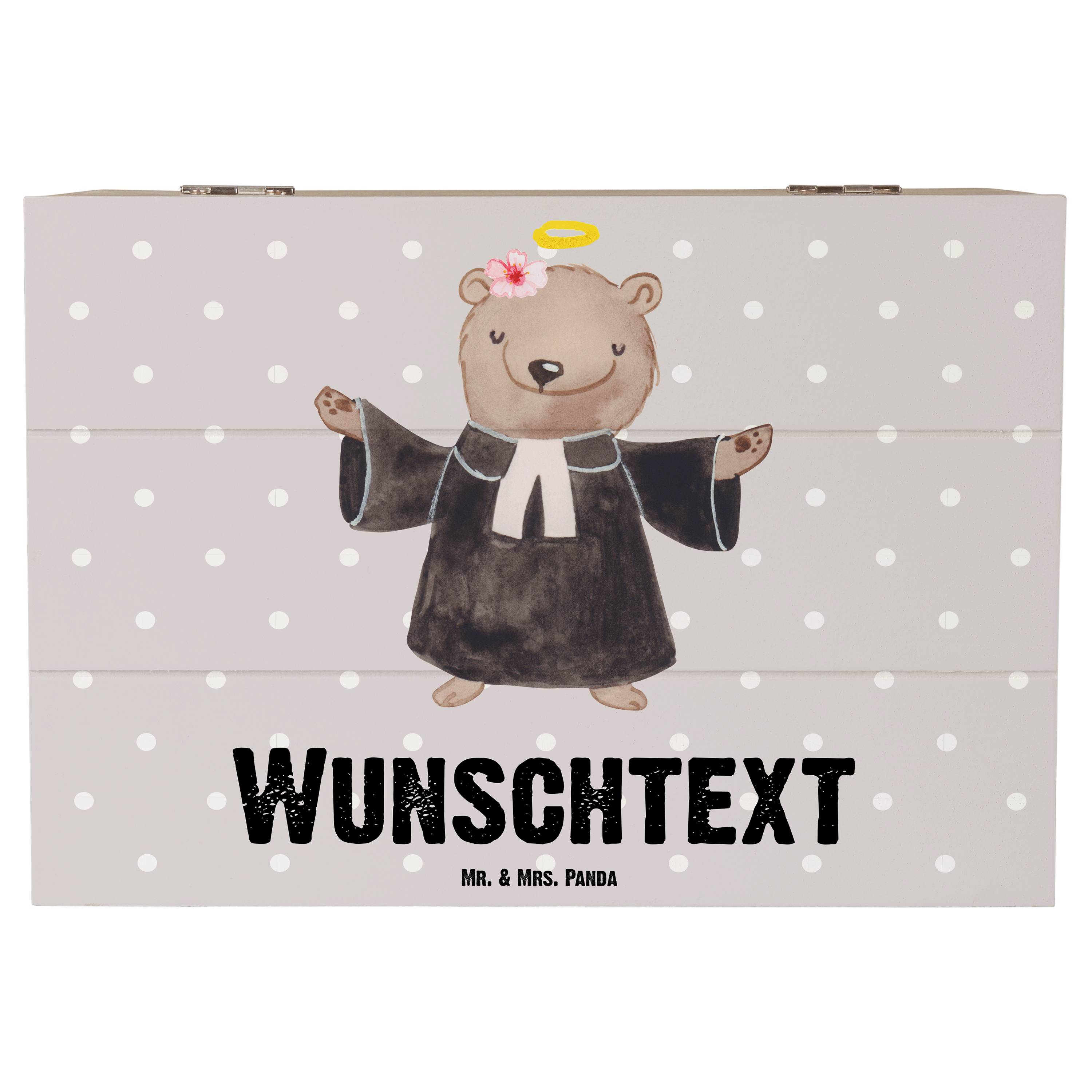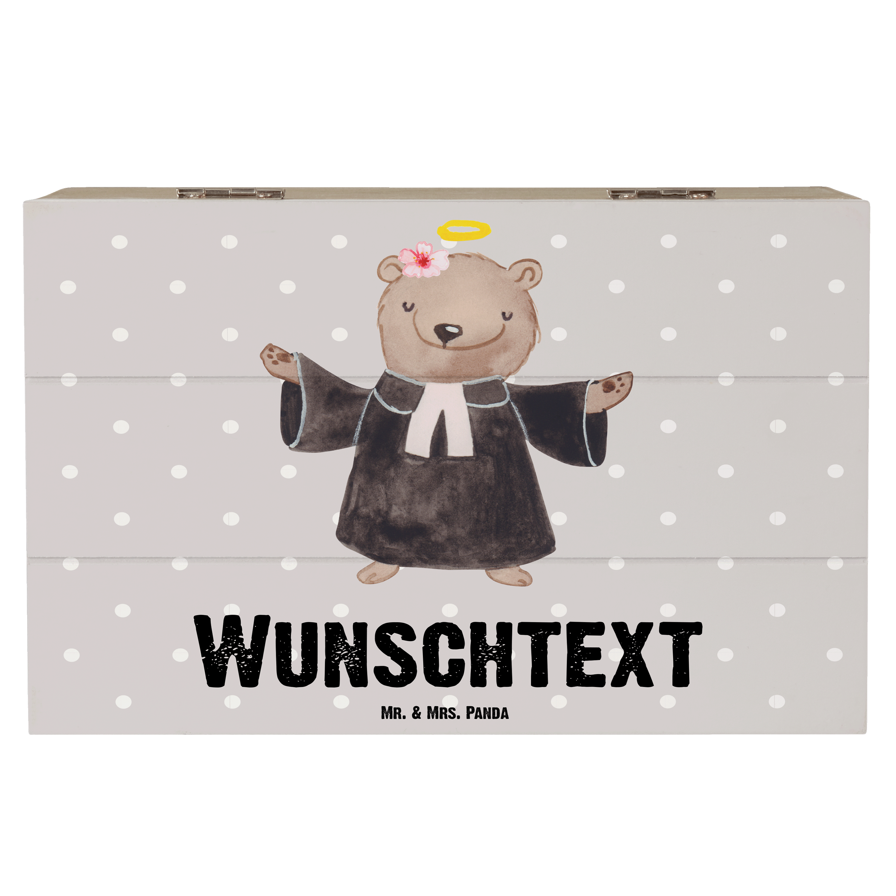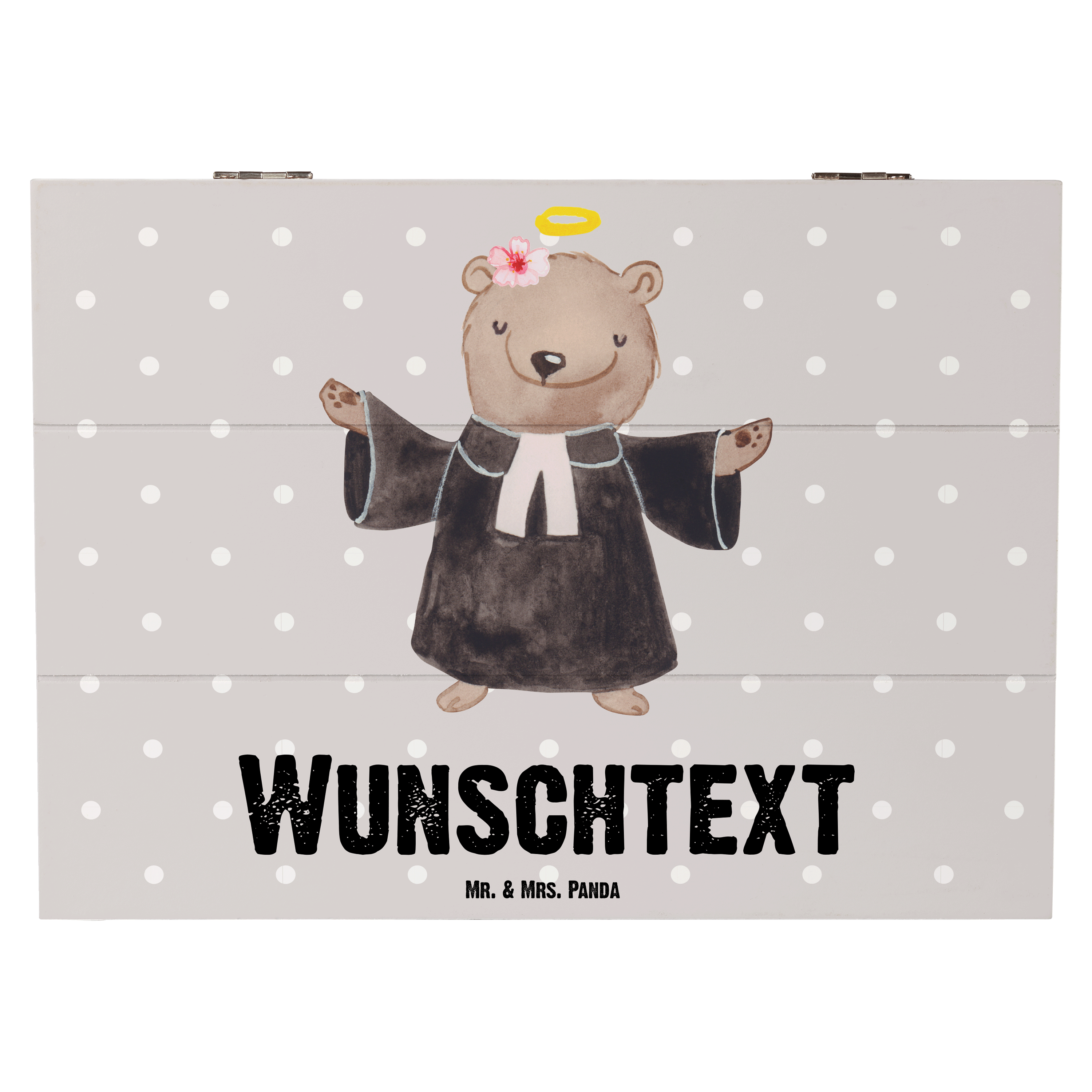 Personalisierte Holzkiste Pfarrerin mit Herz - Grau Pastell - 19 x 12 cm