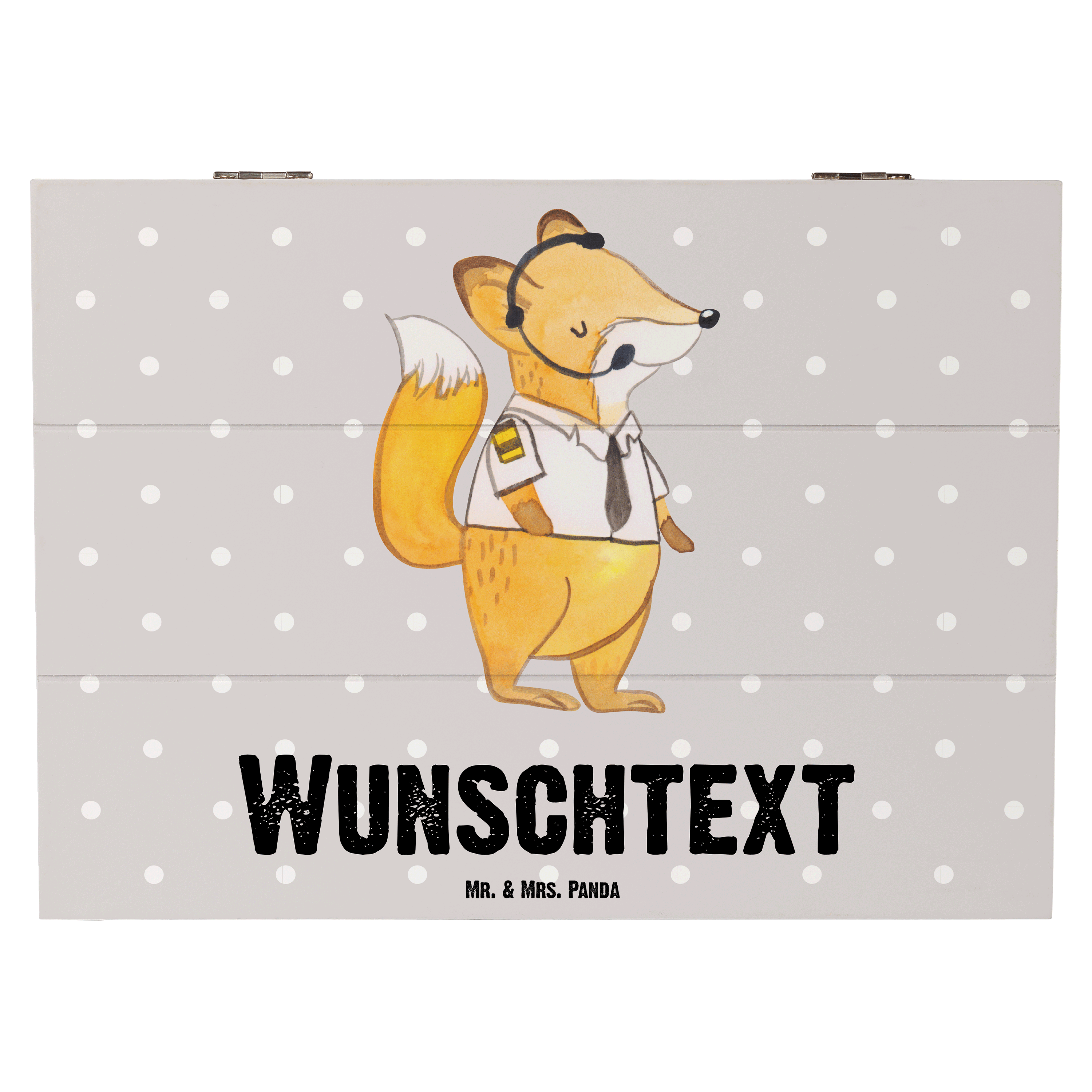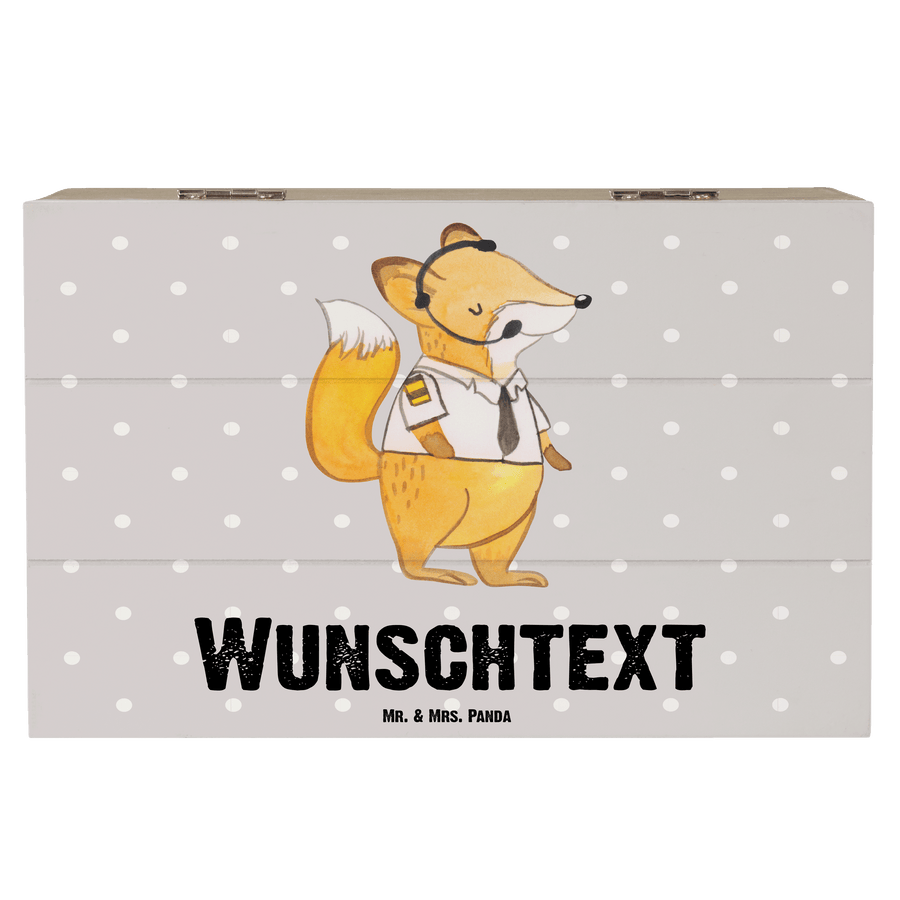 Personalisierte Holzkiste Pilot mit Herz - Grau Pastell - 19 x 12 cm