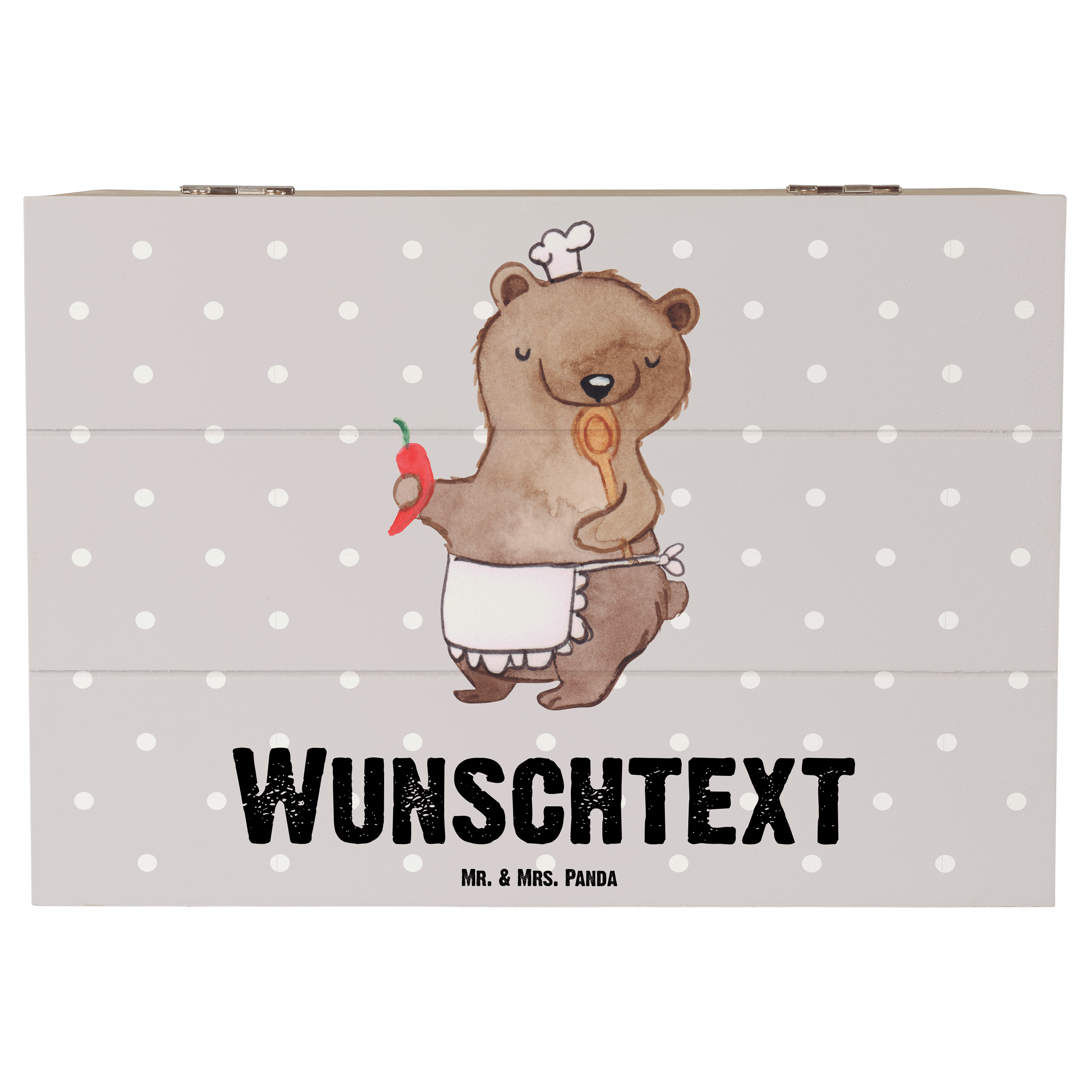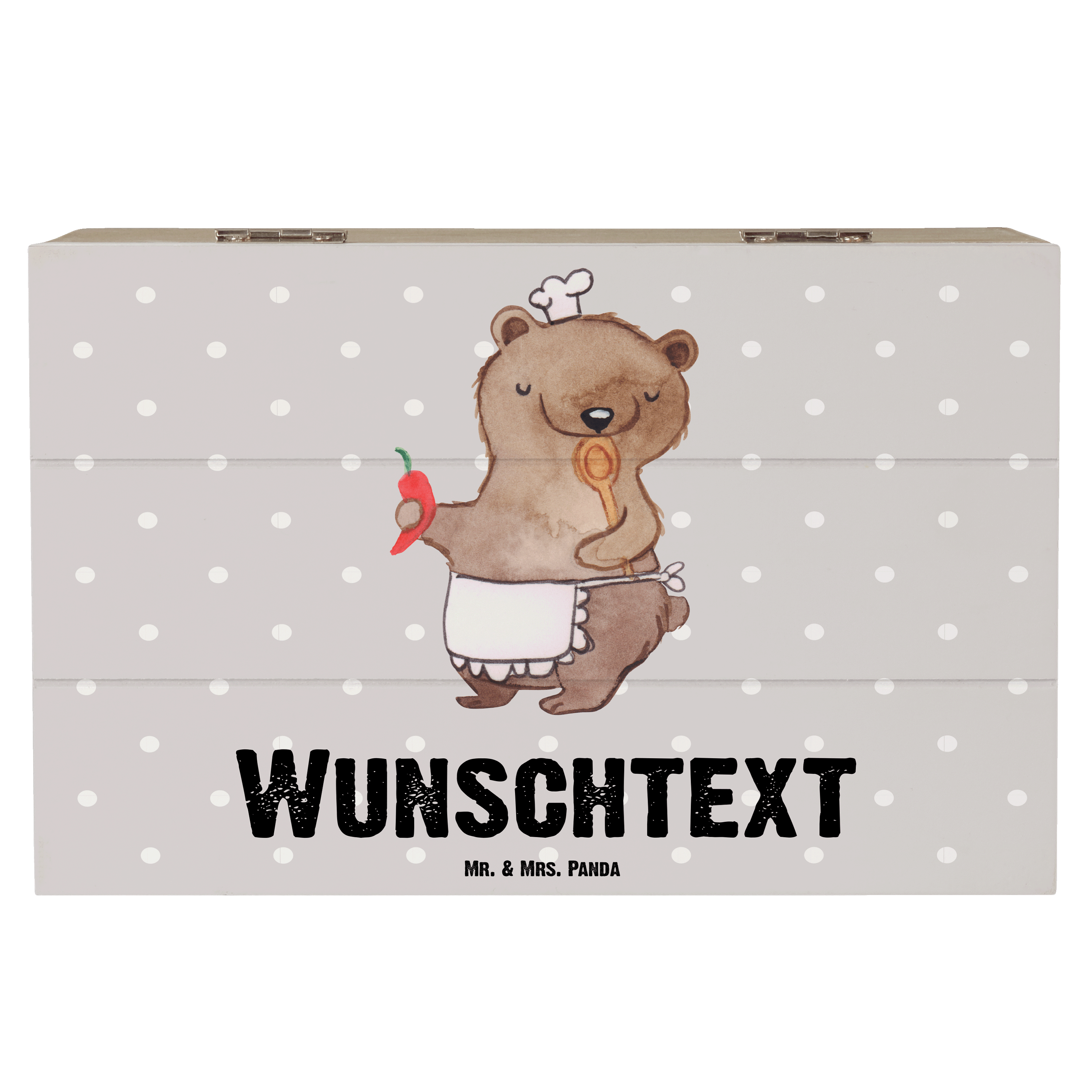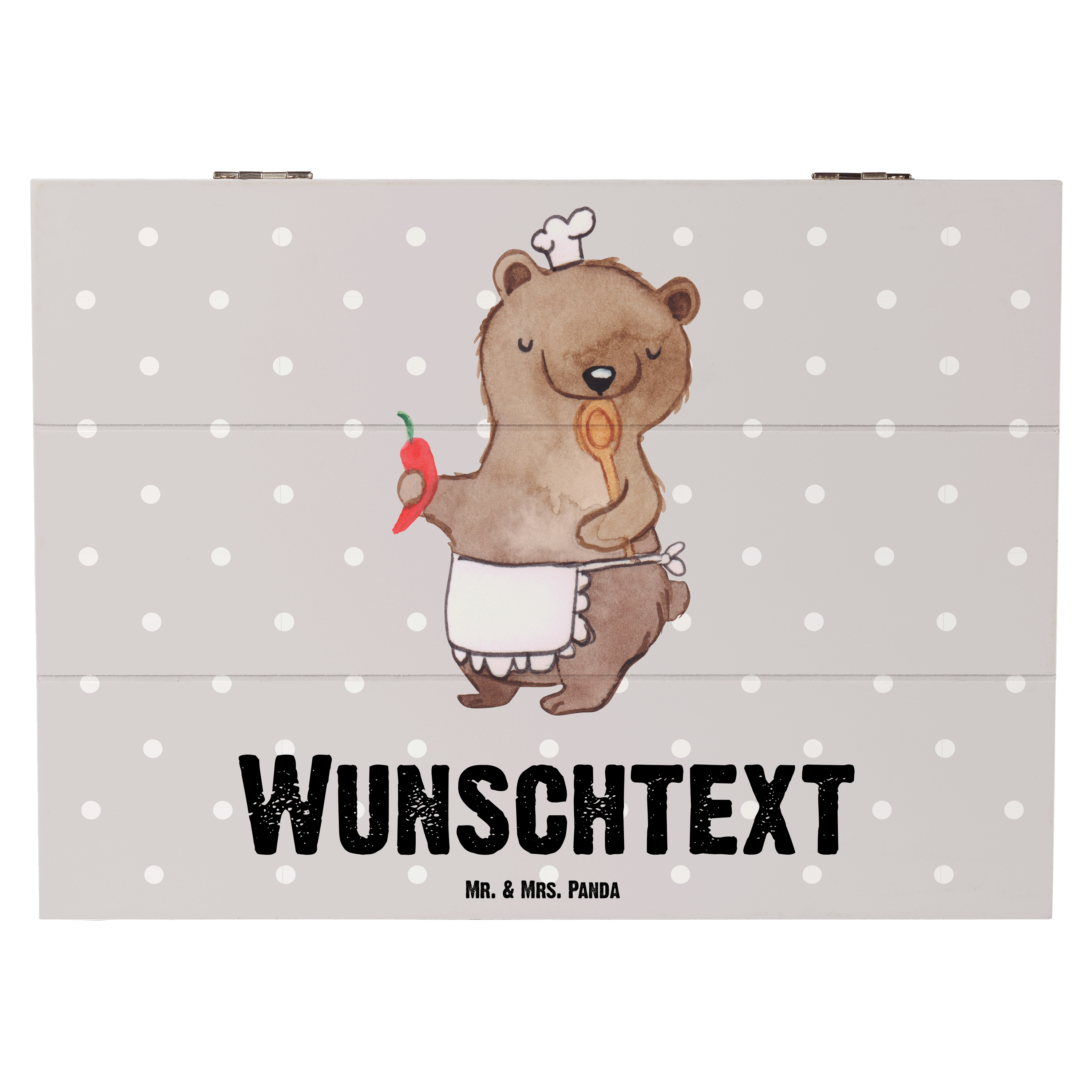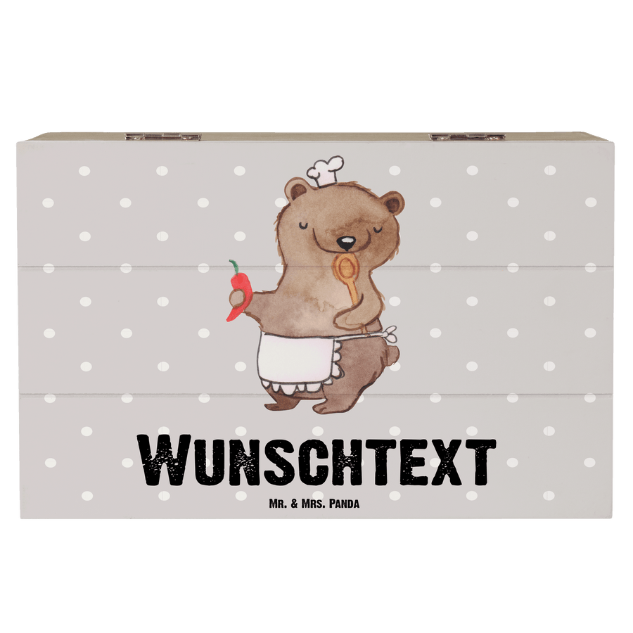 Personalisierte Holzkiste Pizzabäcker mit Herz - Grau Pastell - 19 x 12 cm