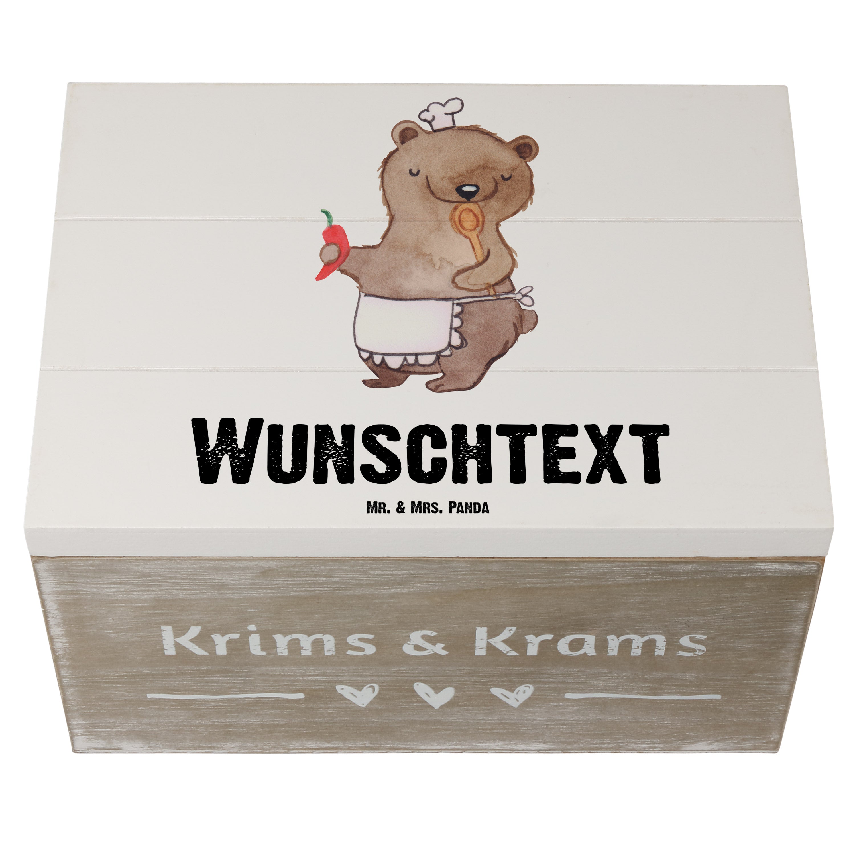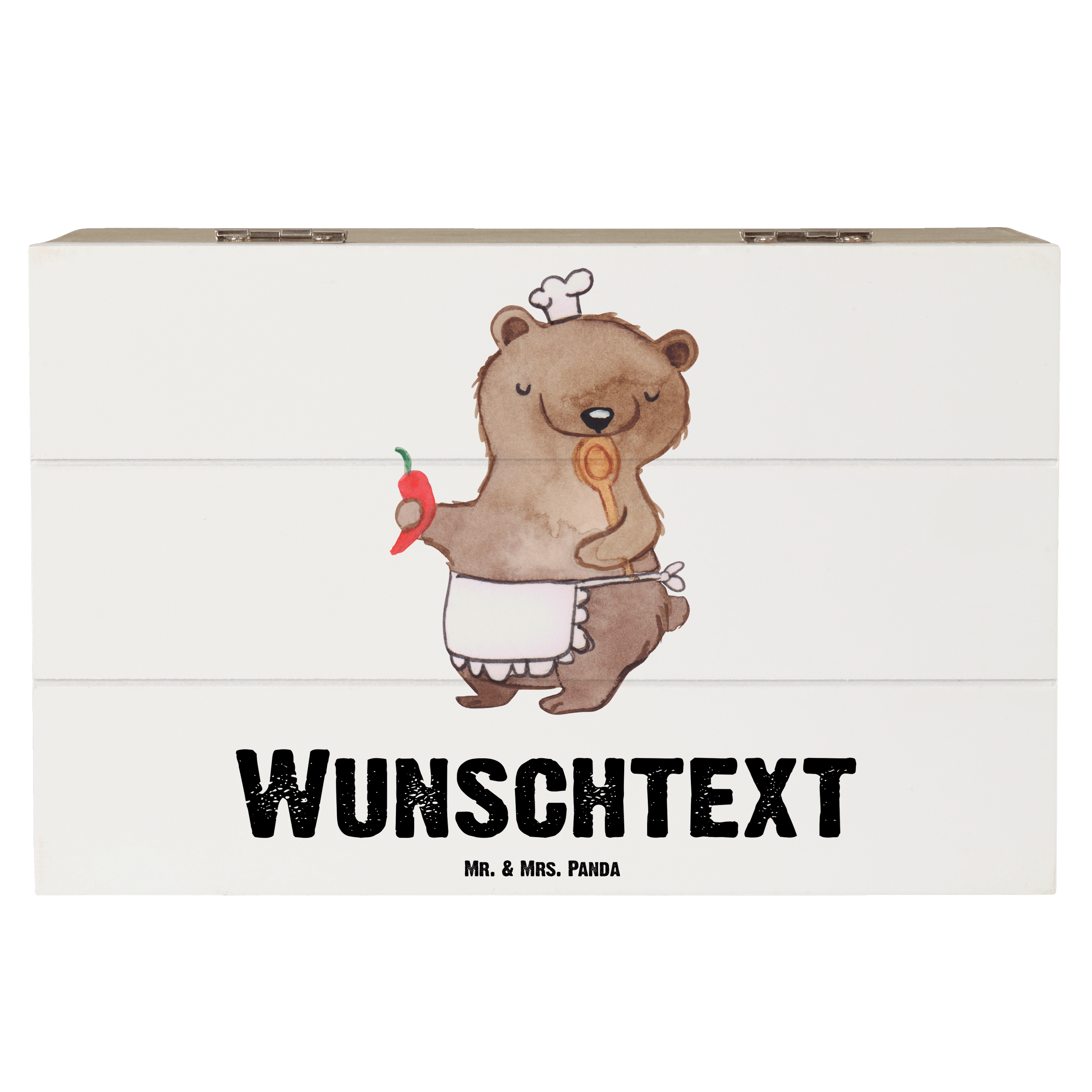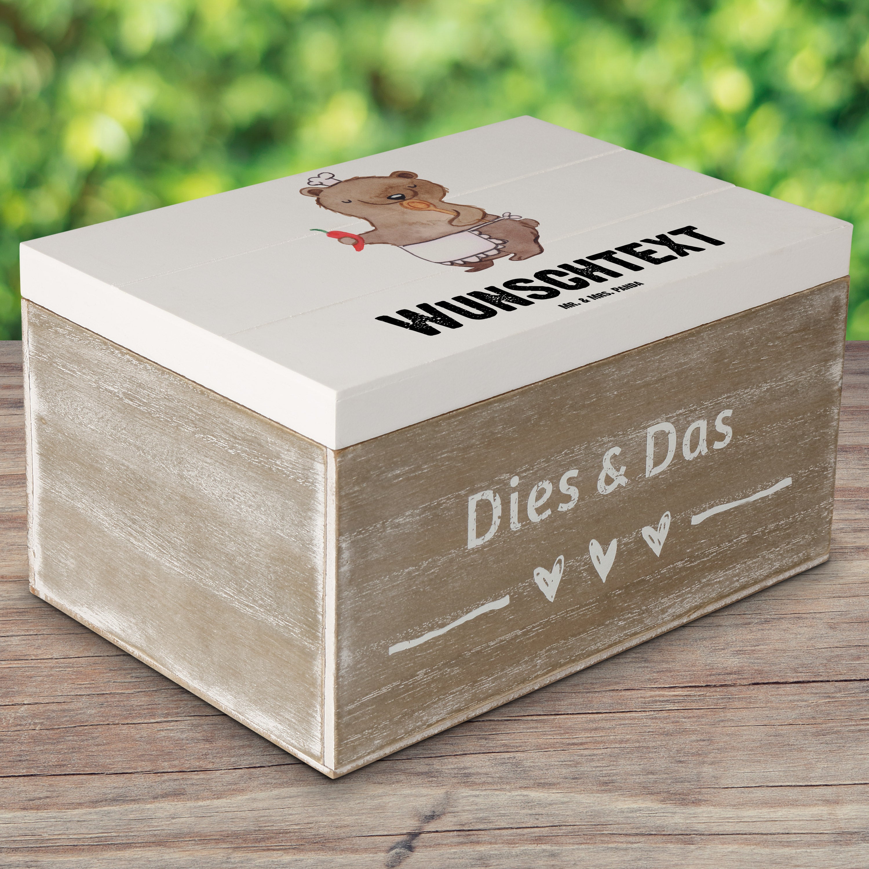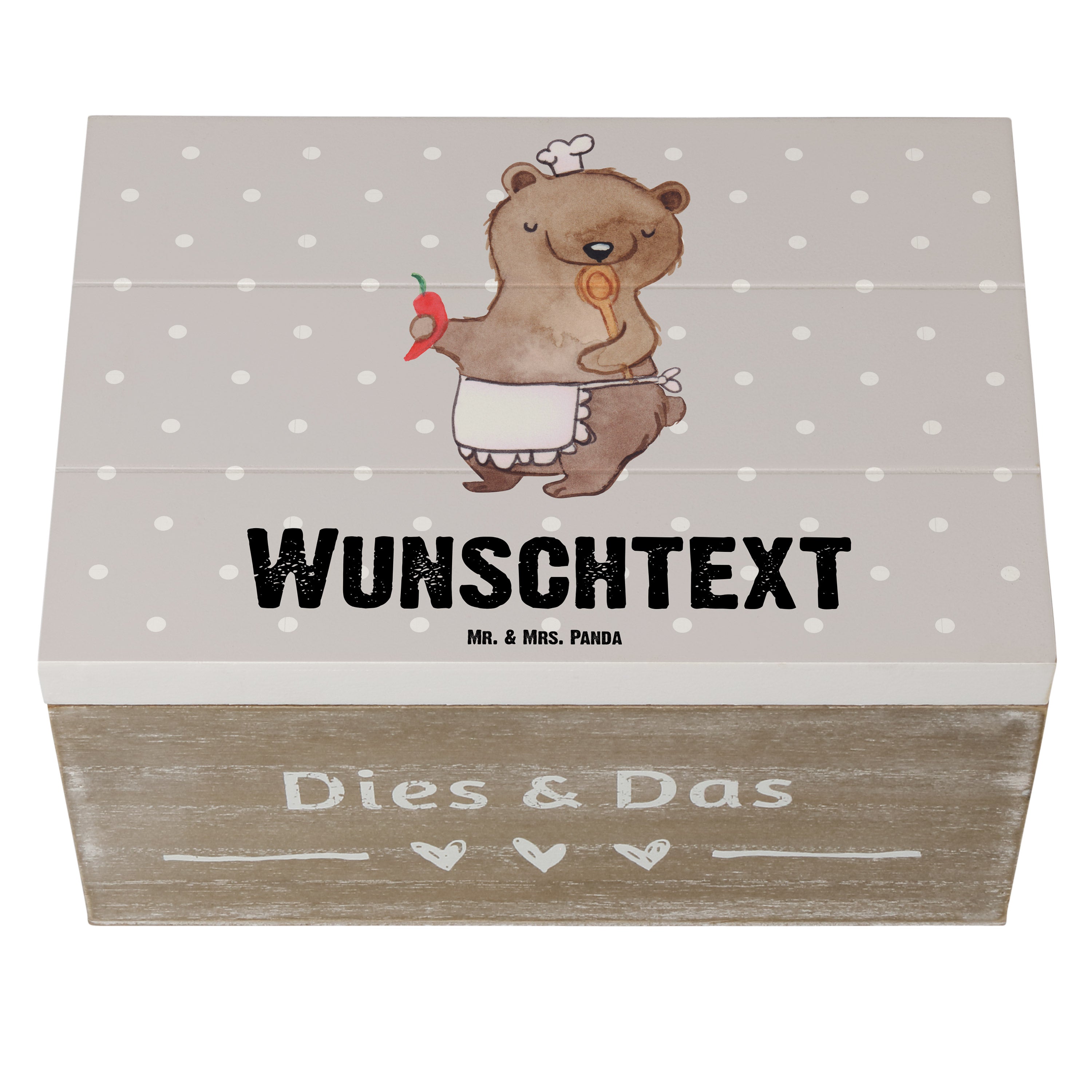 Personalisierte Holzkiste Pizzabäcker mit Herz - Grau Pastell - 19 x 12 cm