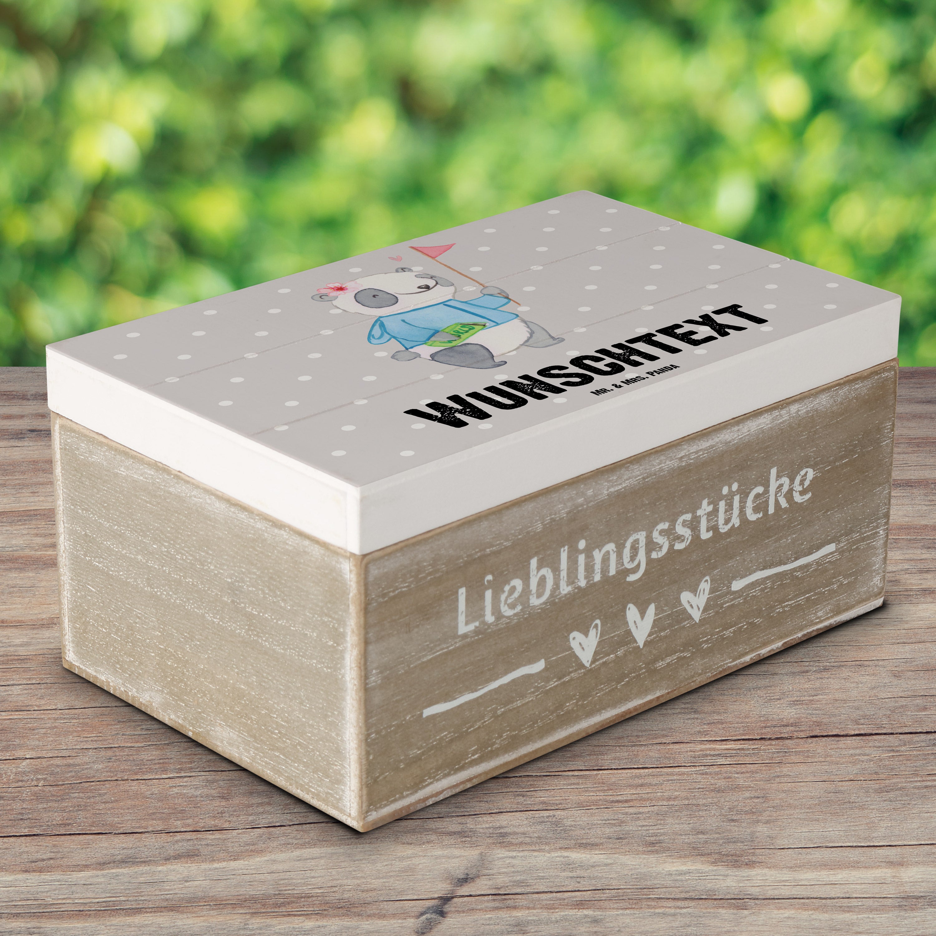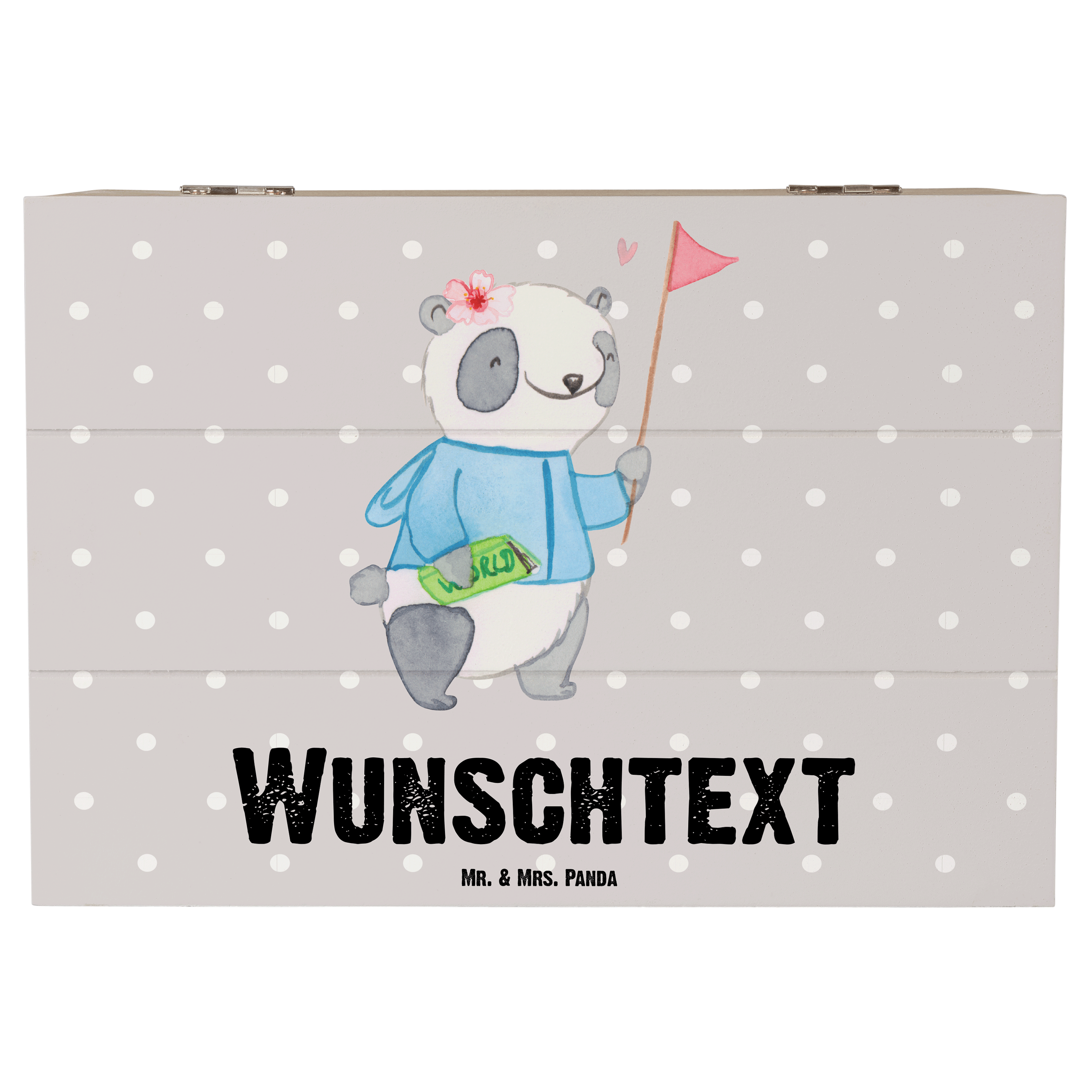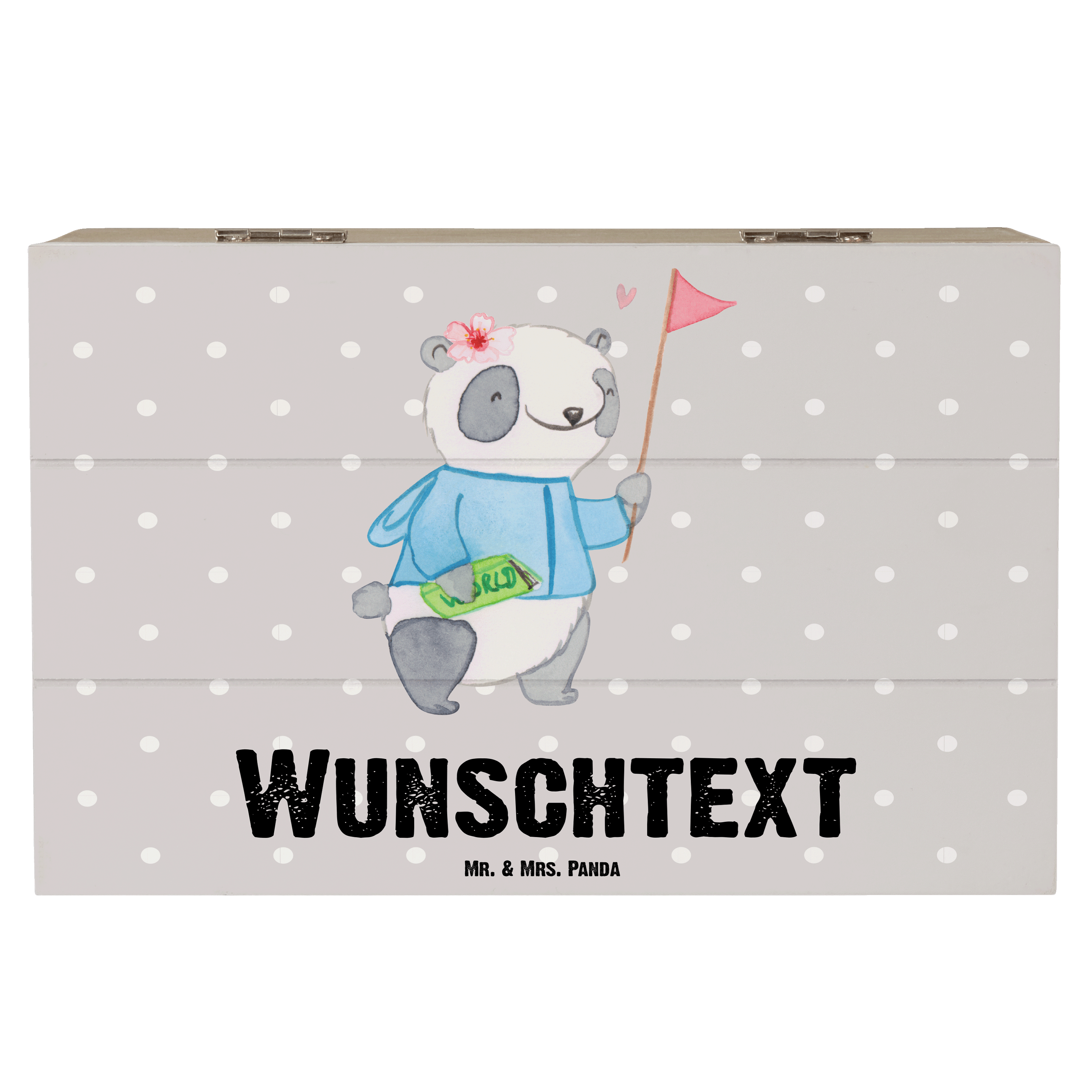 Personalisierte Holzkiste Reiseleiterin mit Herz - 25 x 18 cm - Grau Pastell