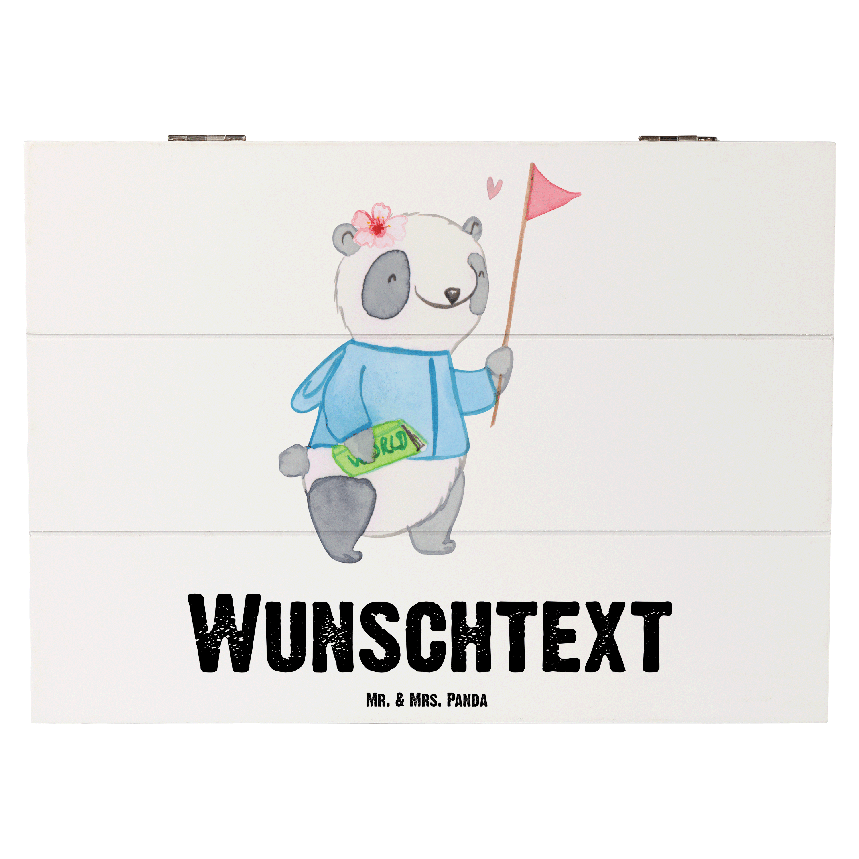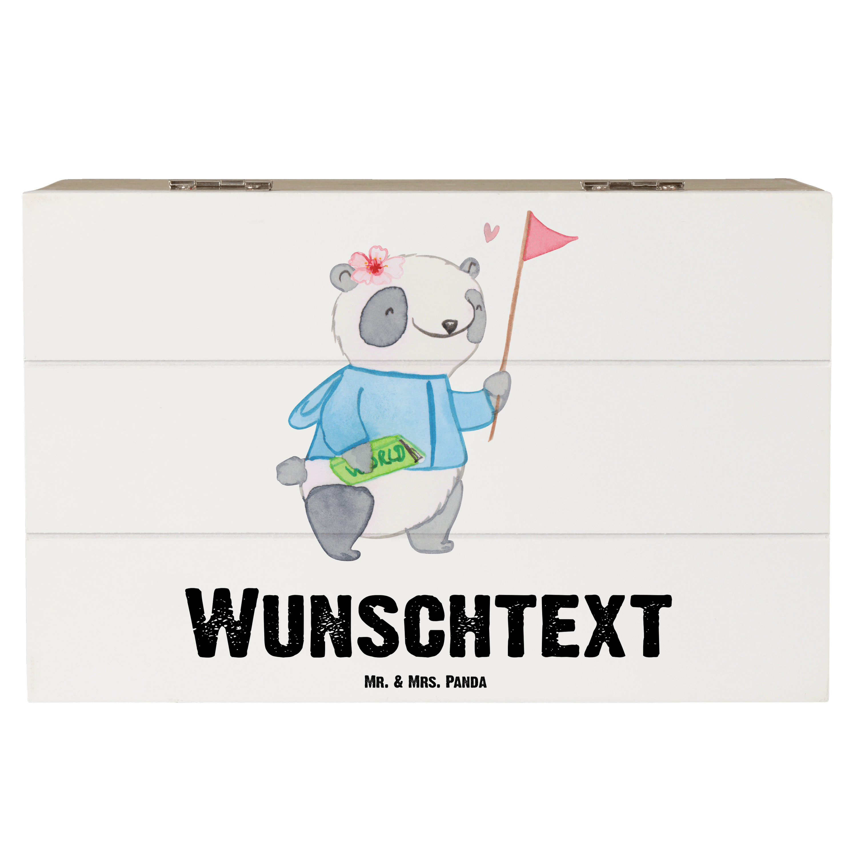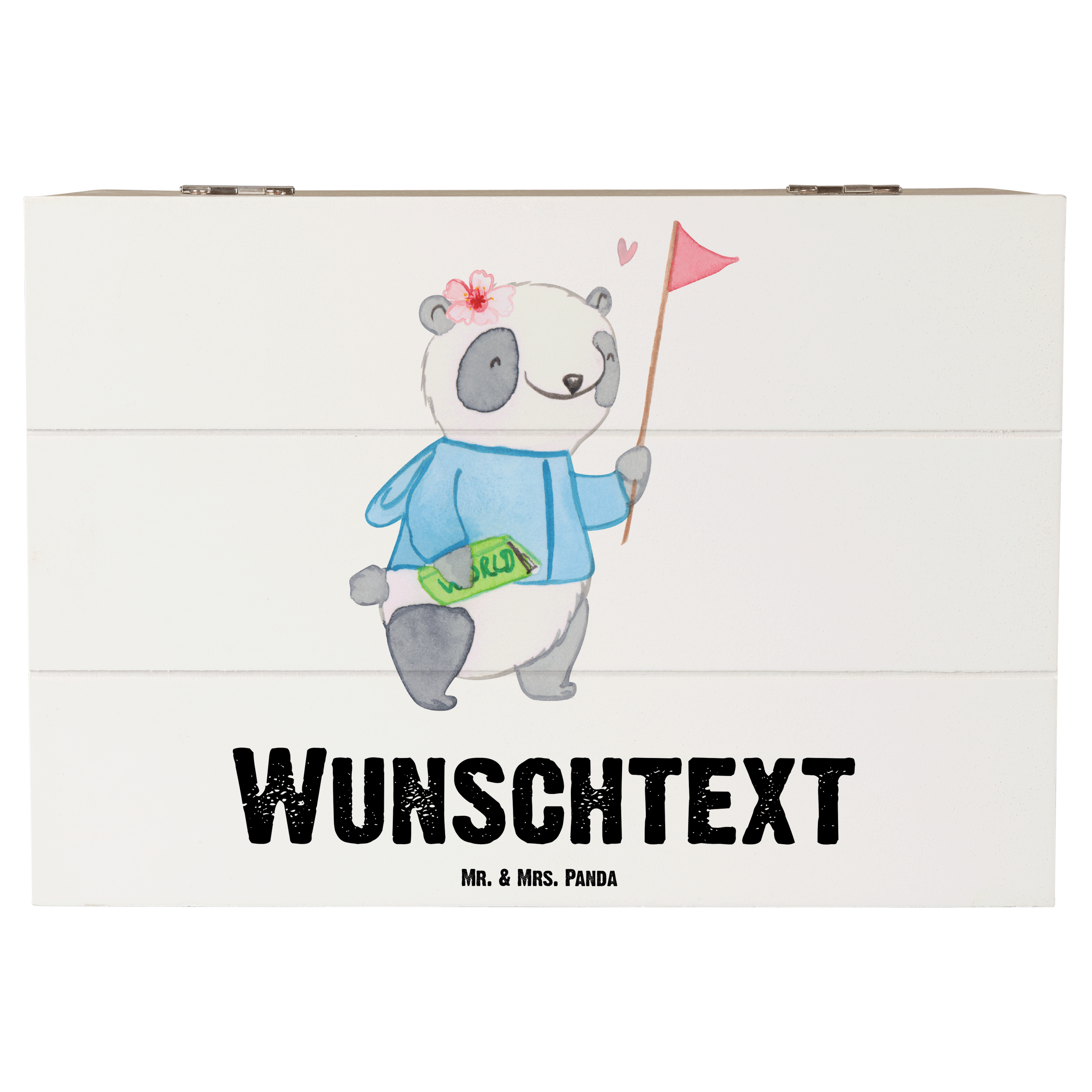 Personalisierte Holzkiste Reiseleiterin mit Herz - 25 x 18 cm - Grau Pastell