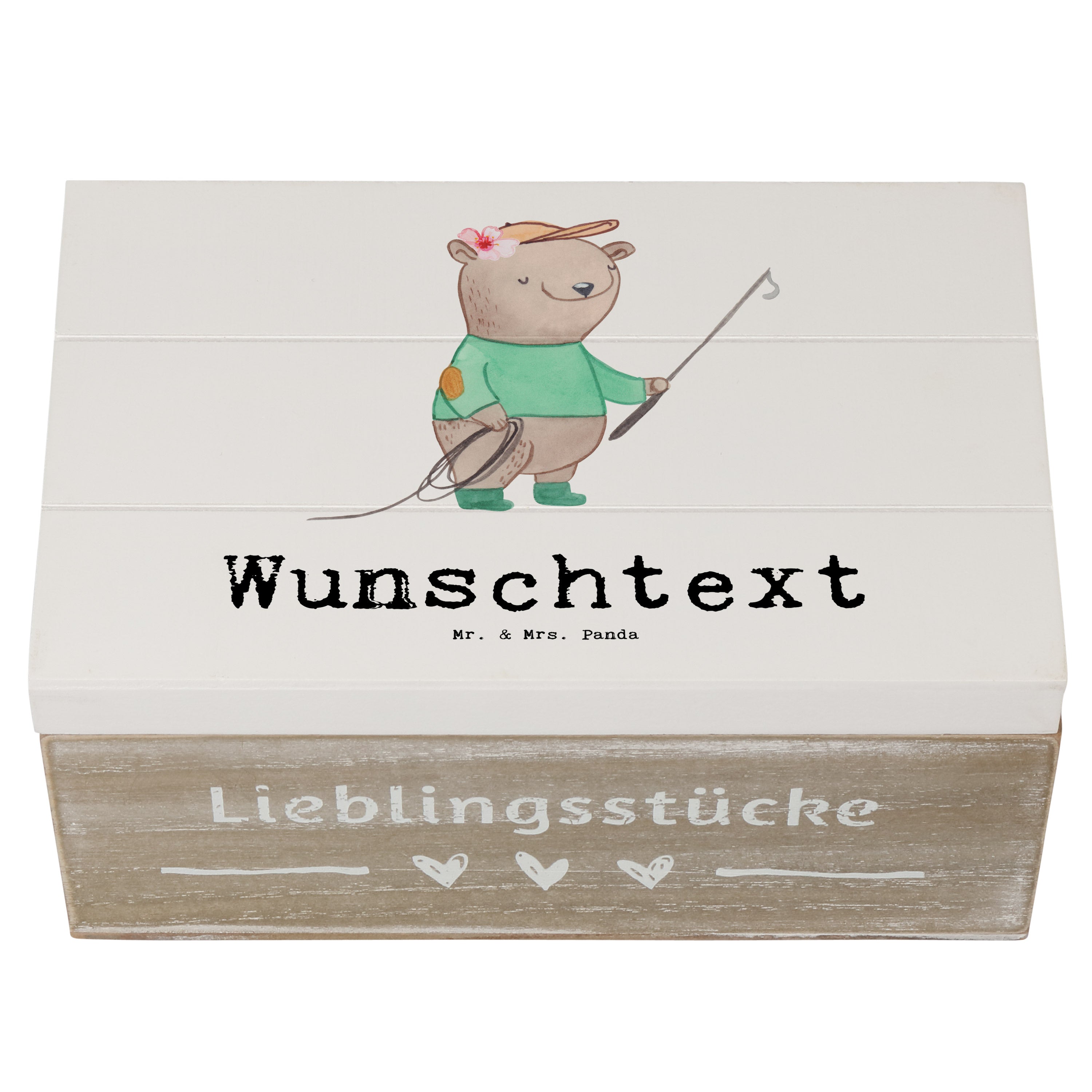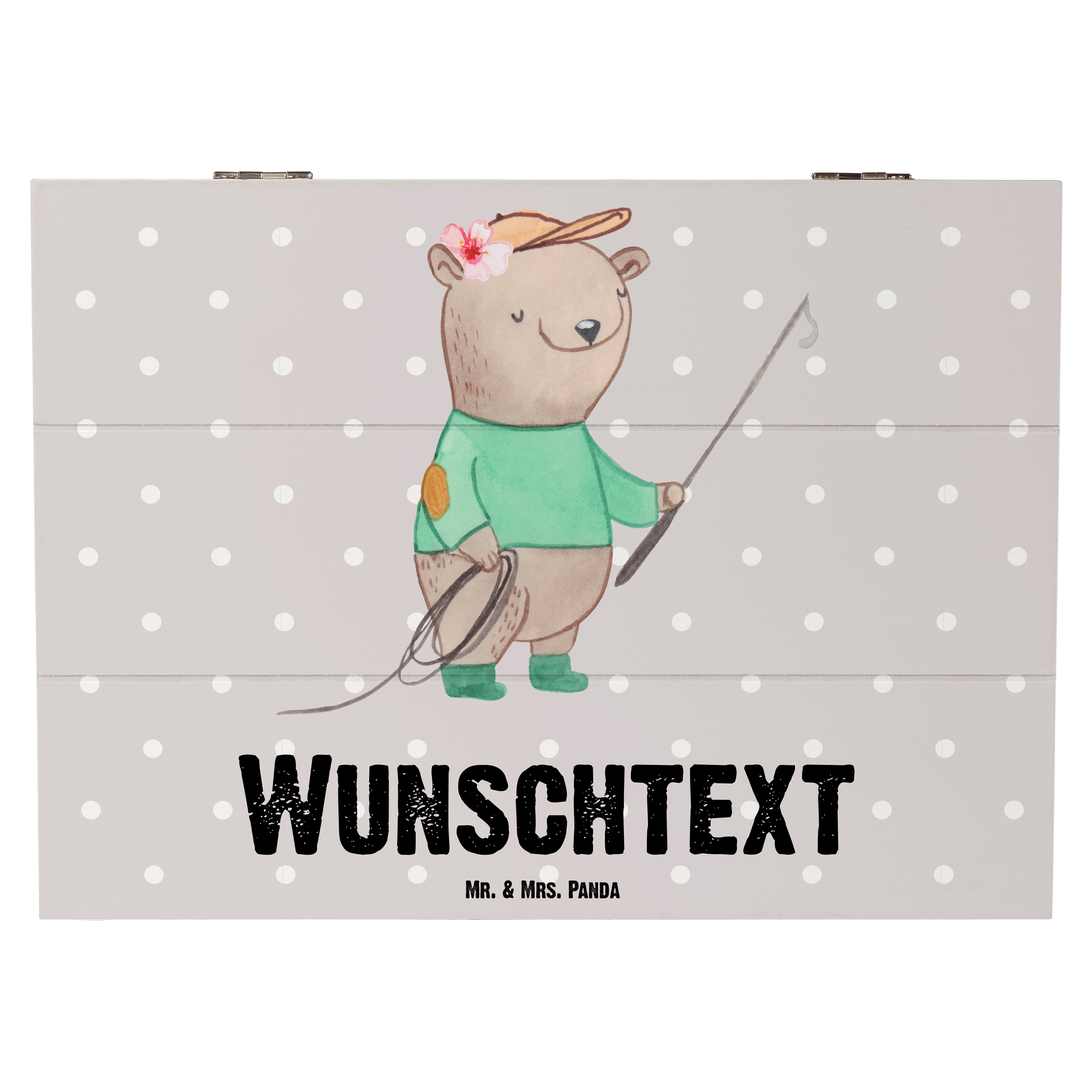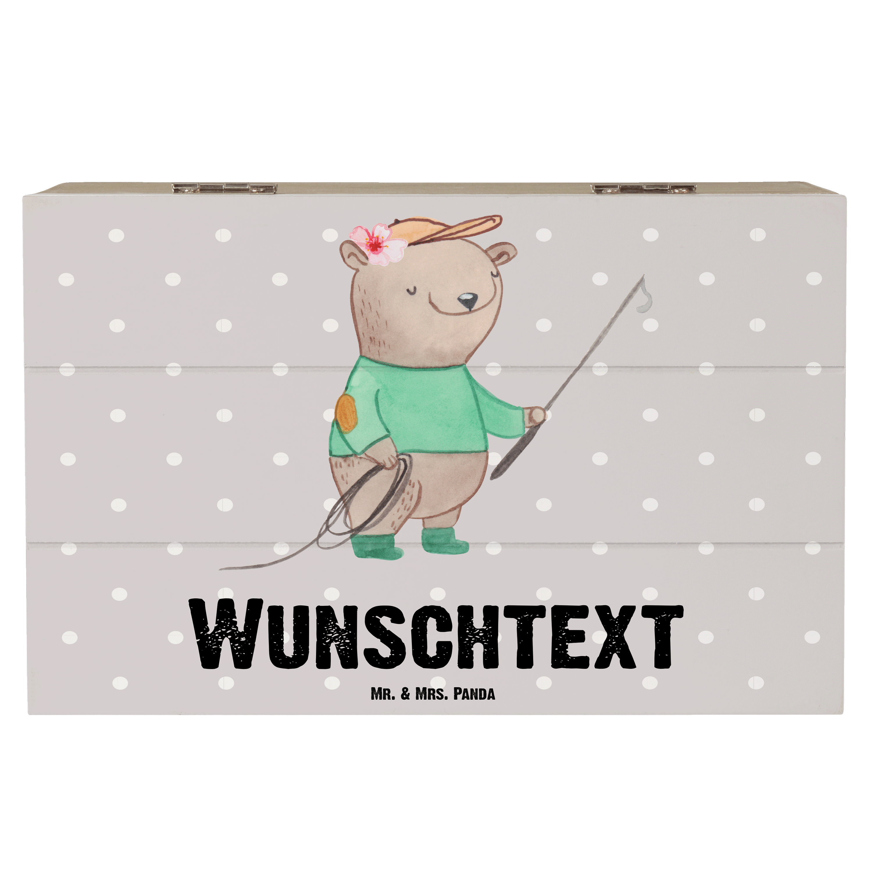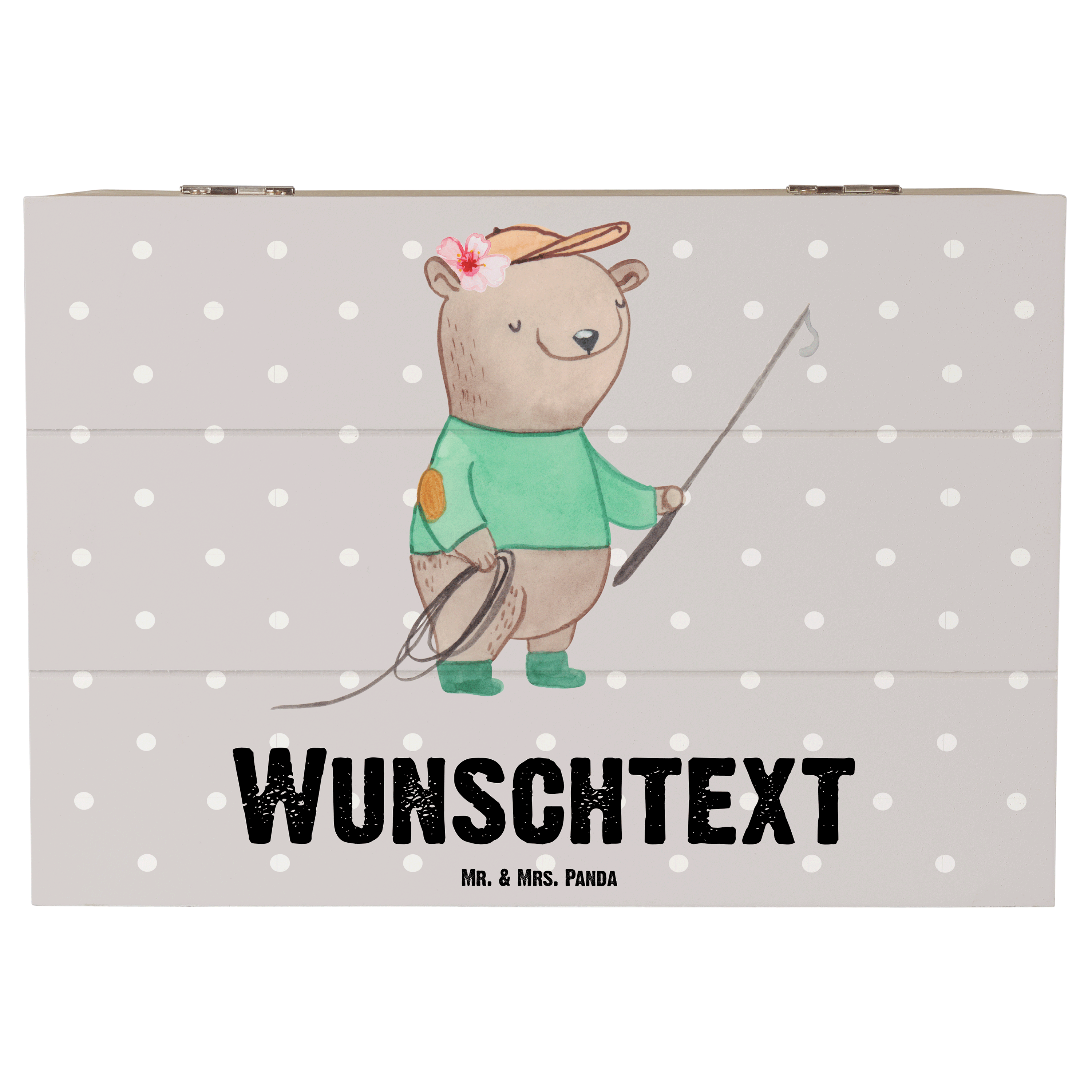 Personalisierte Holzkiste Reitlehrerin mit Herz - Grau Pastell - 19 x 12 cm