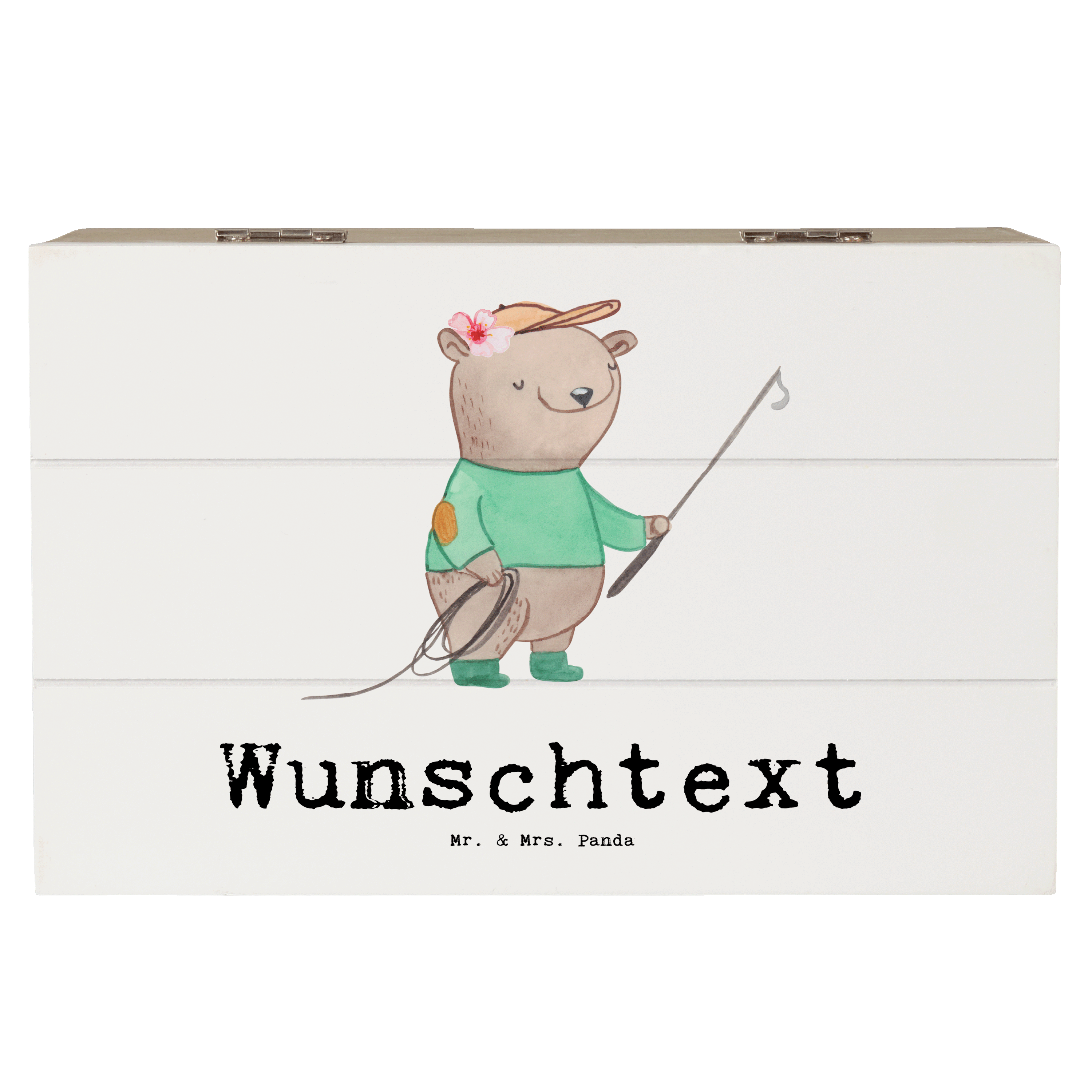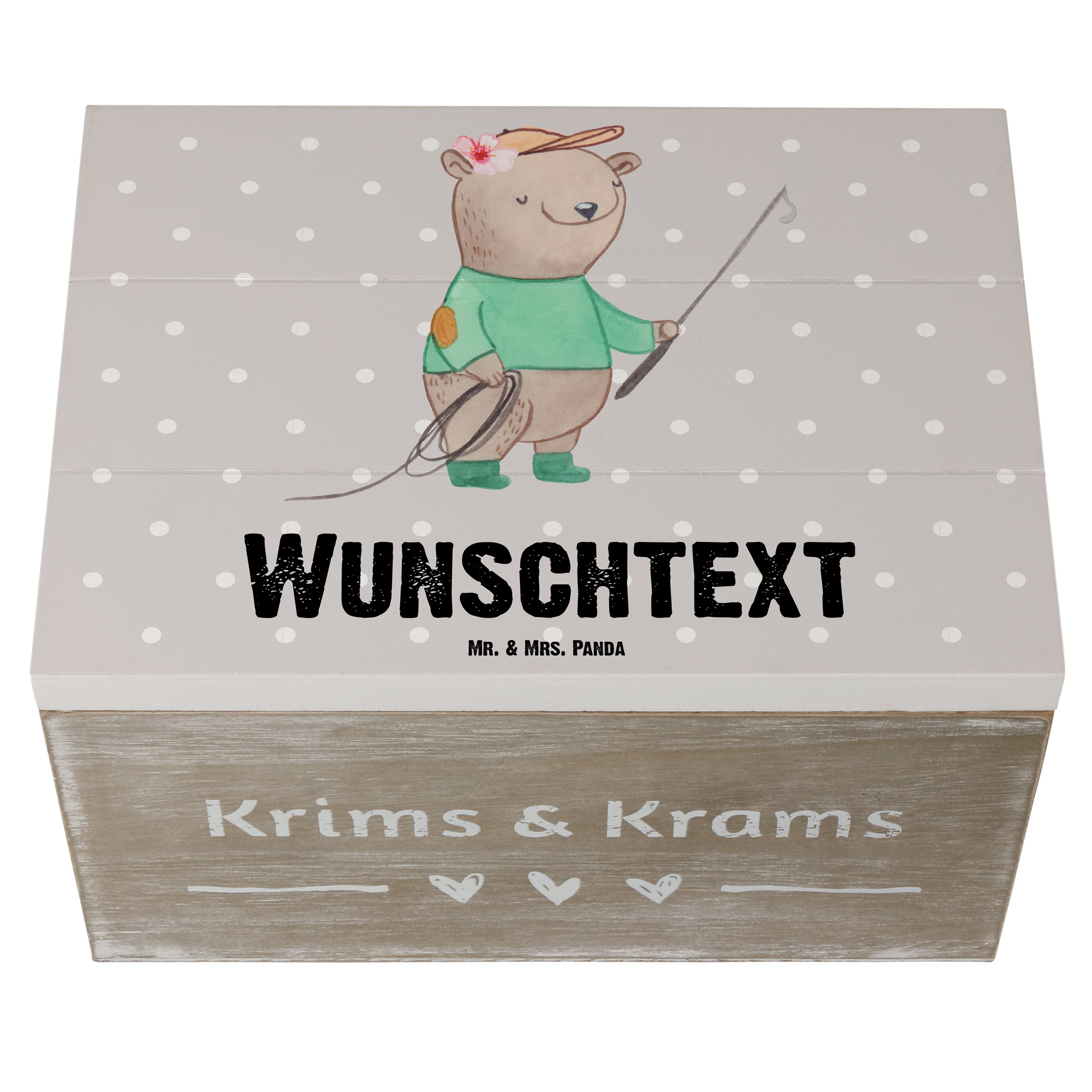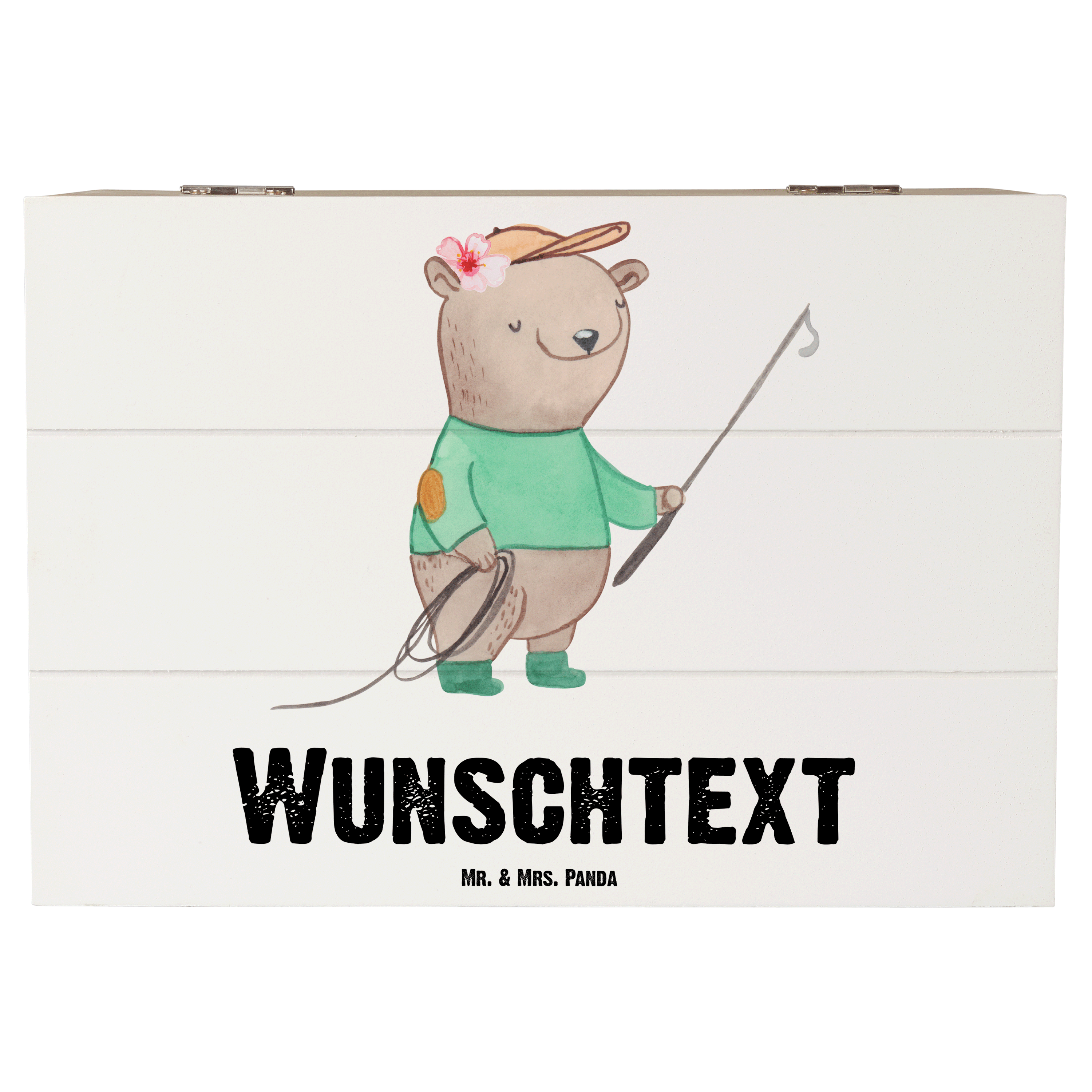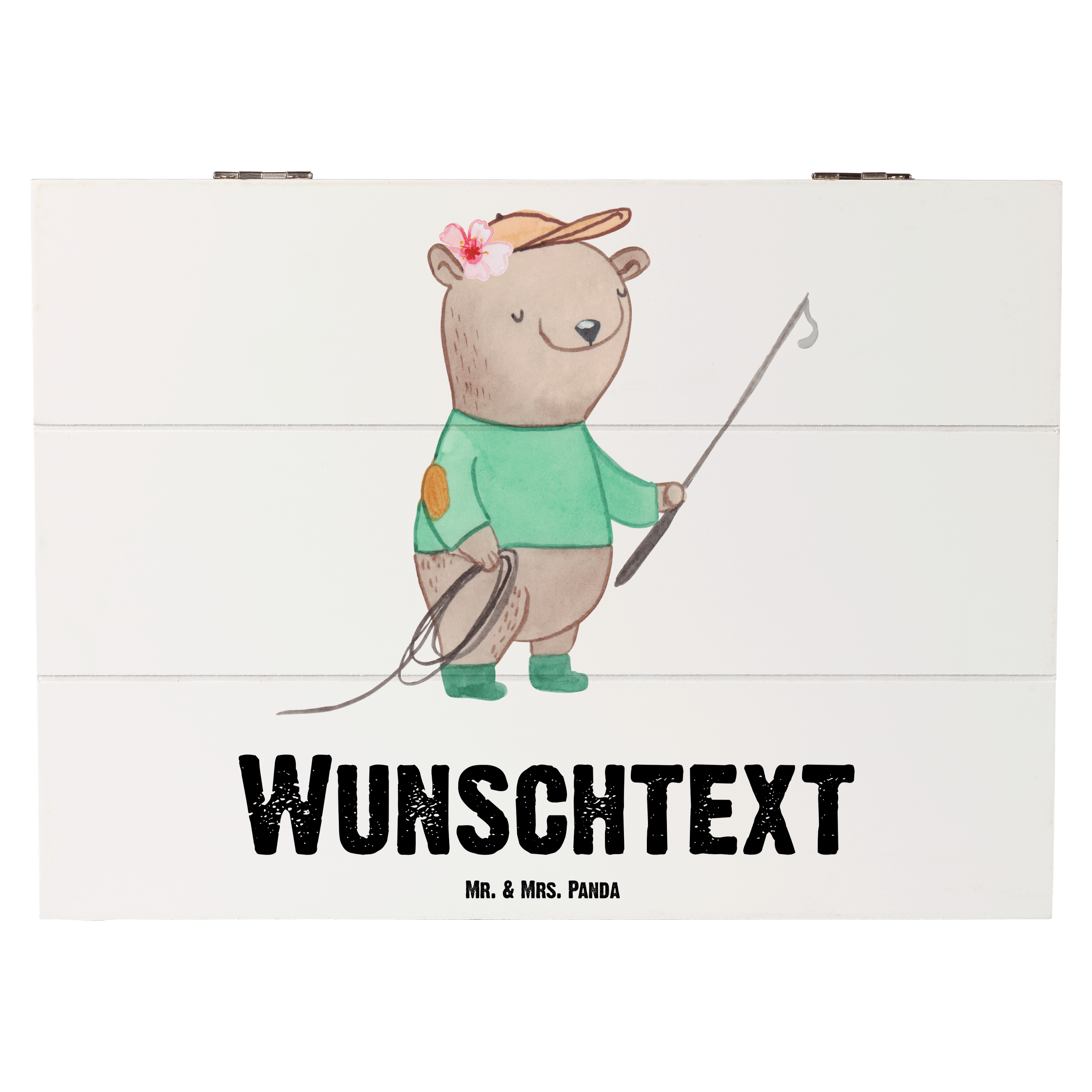 Personalisierte Holzkiste Reitlehrerin mit Herz - Grau Pastell - 19 x 12 cm