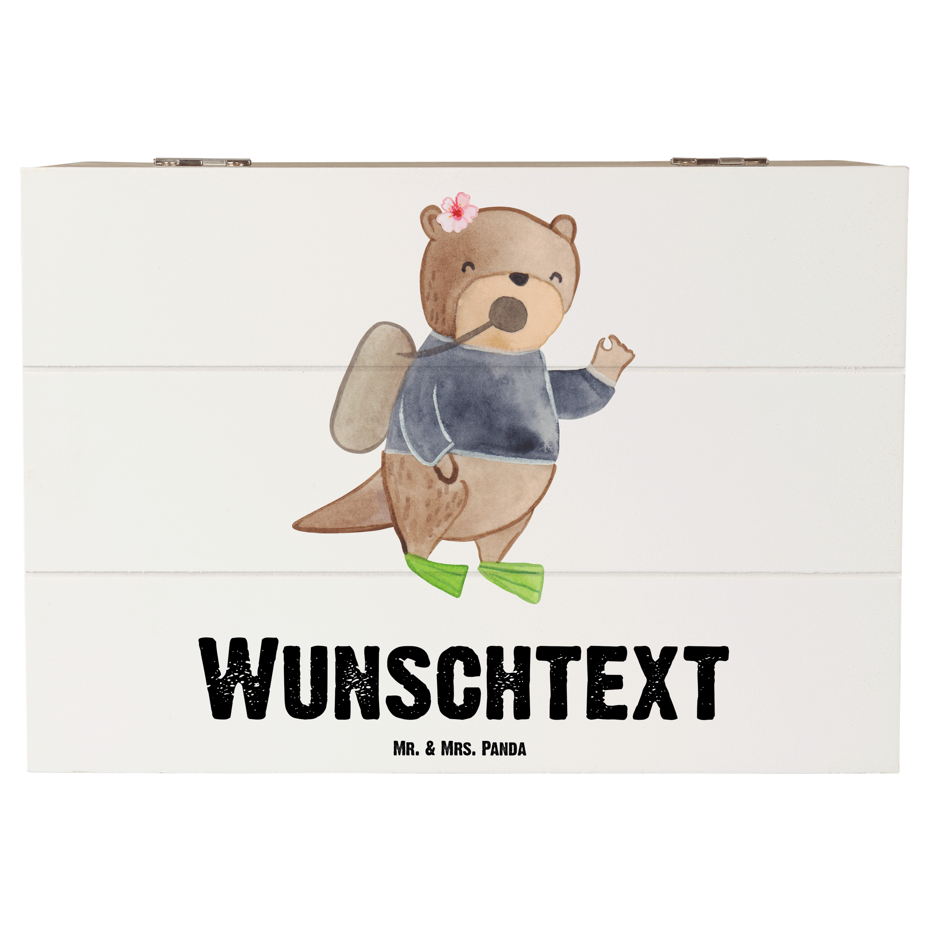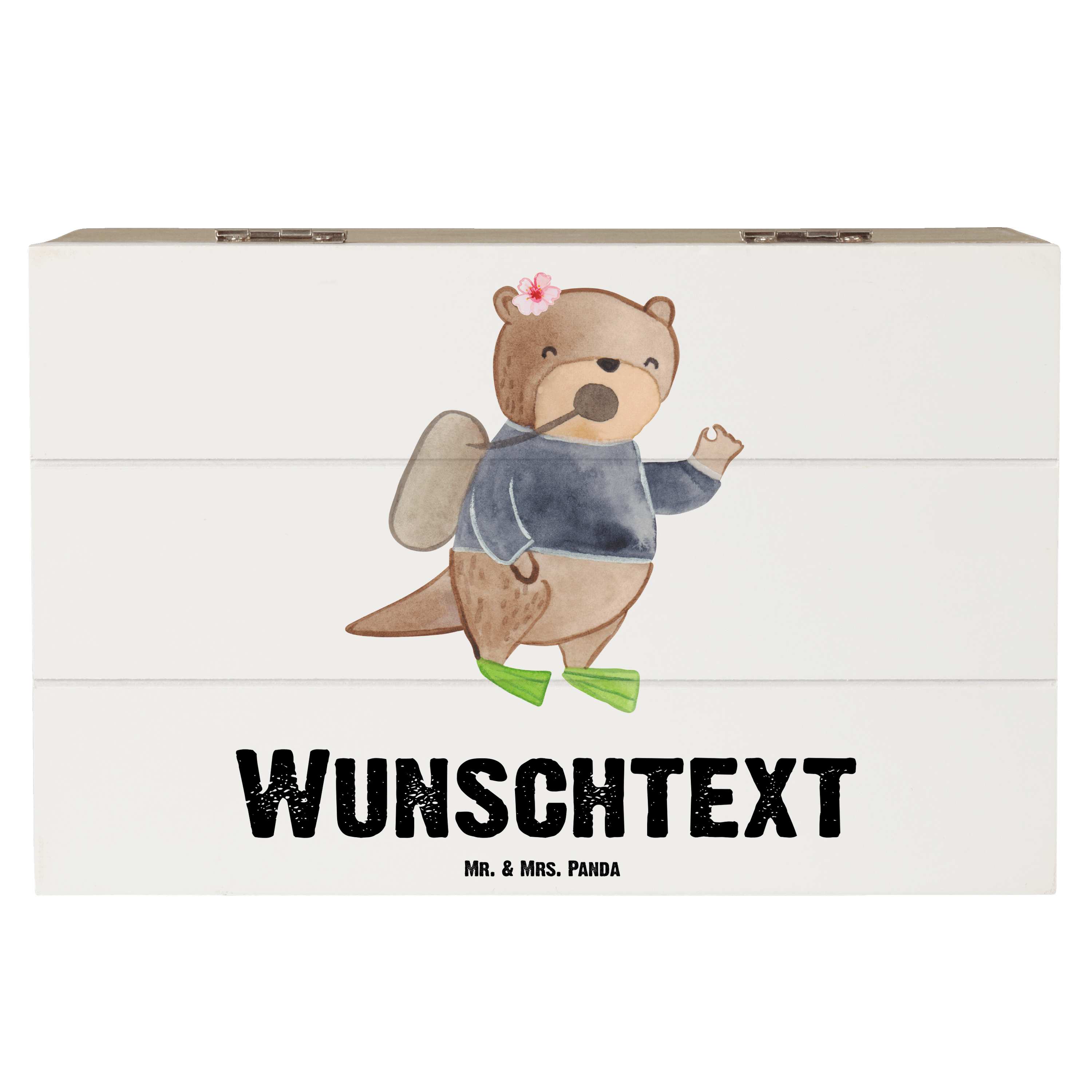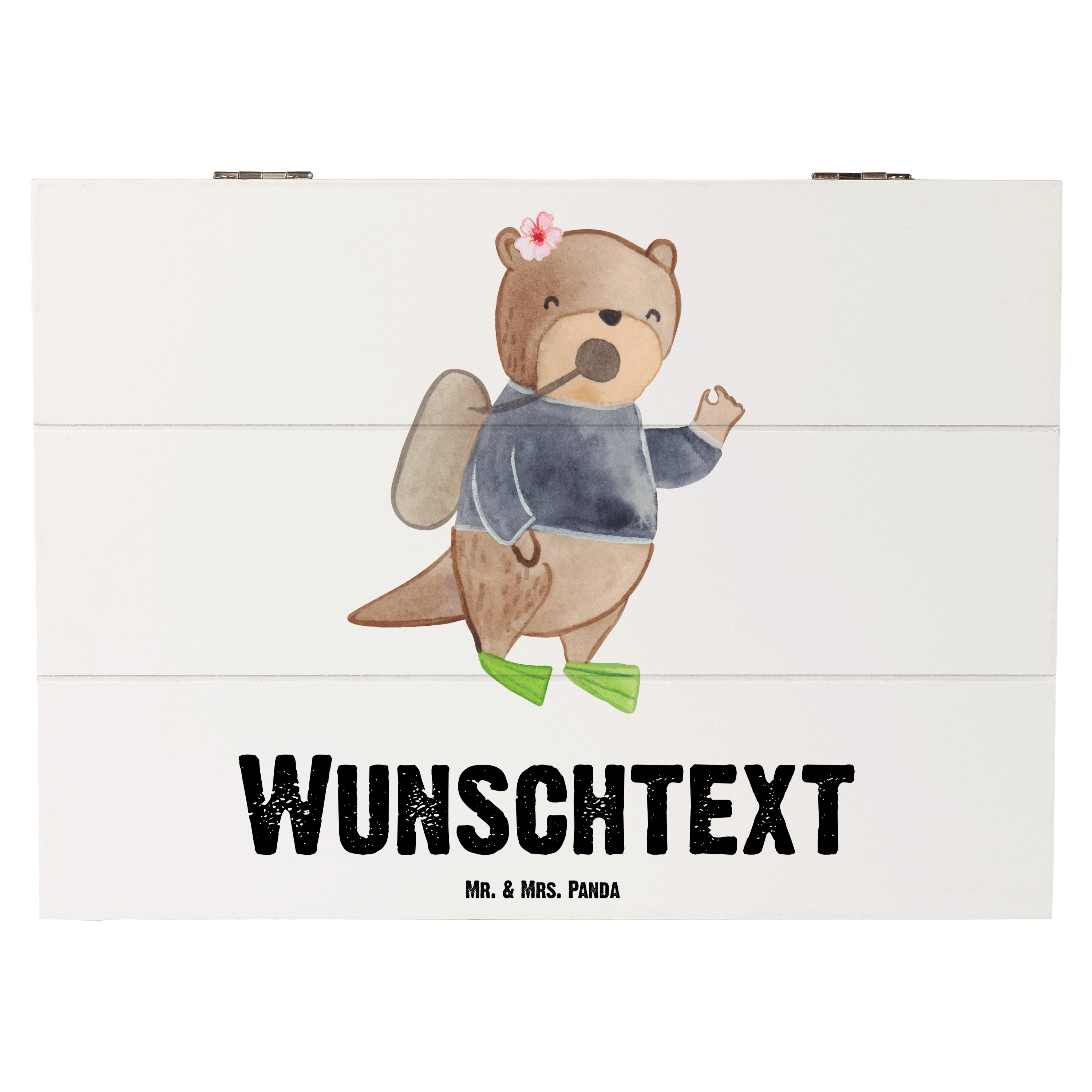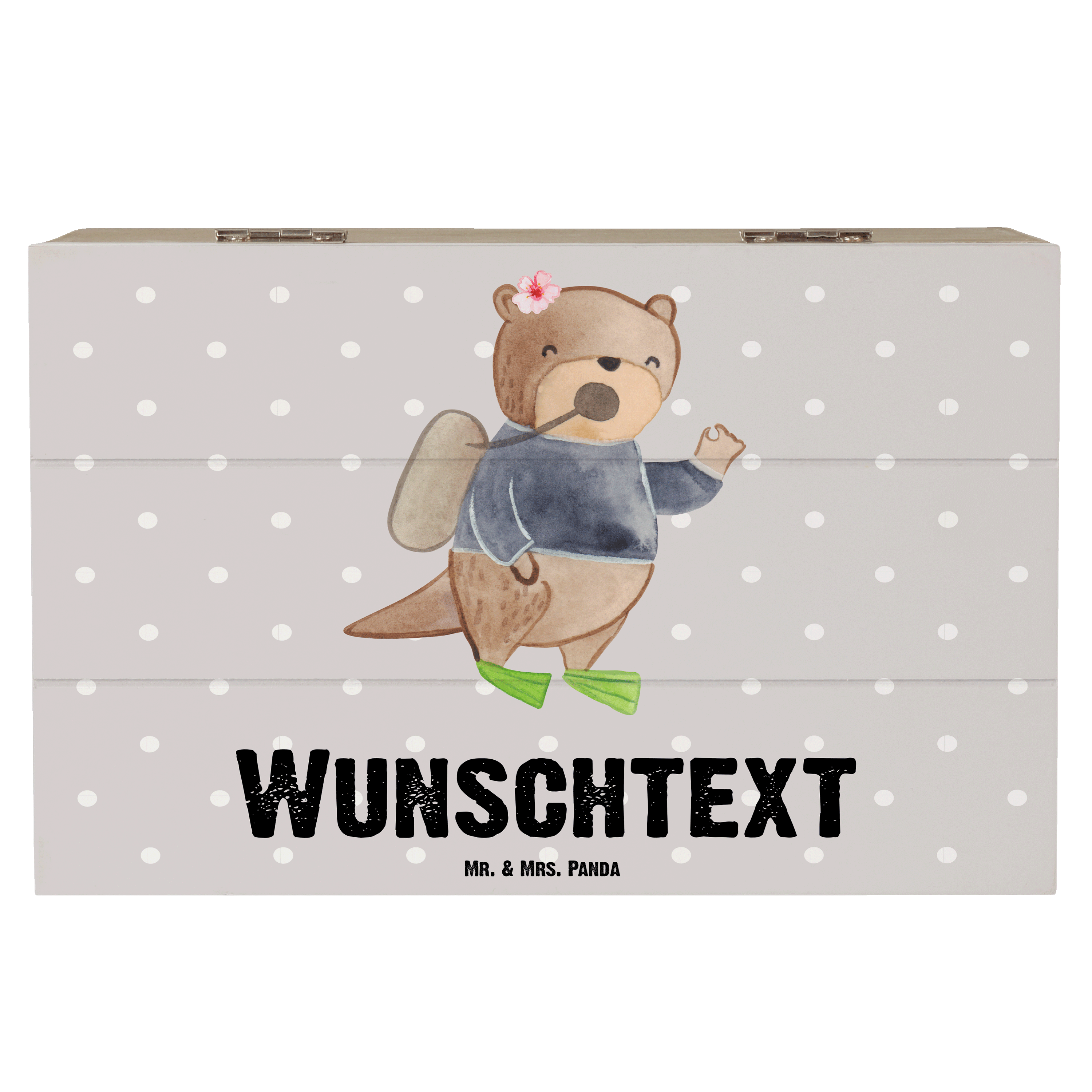 Personalisierte Holzkiste Tauchlehrerin mit Herz - Grau Pastell - 19 x 12 cm