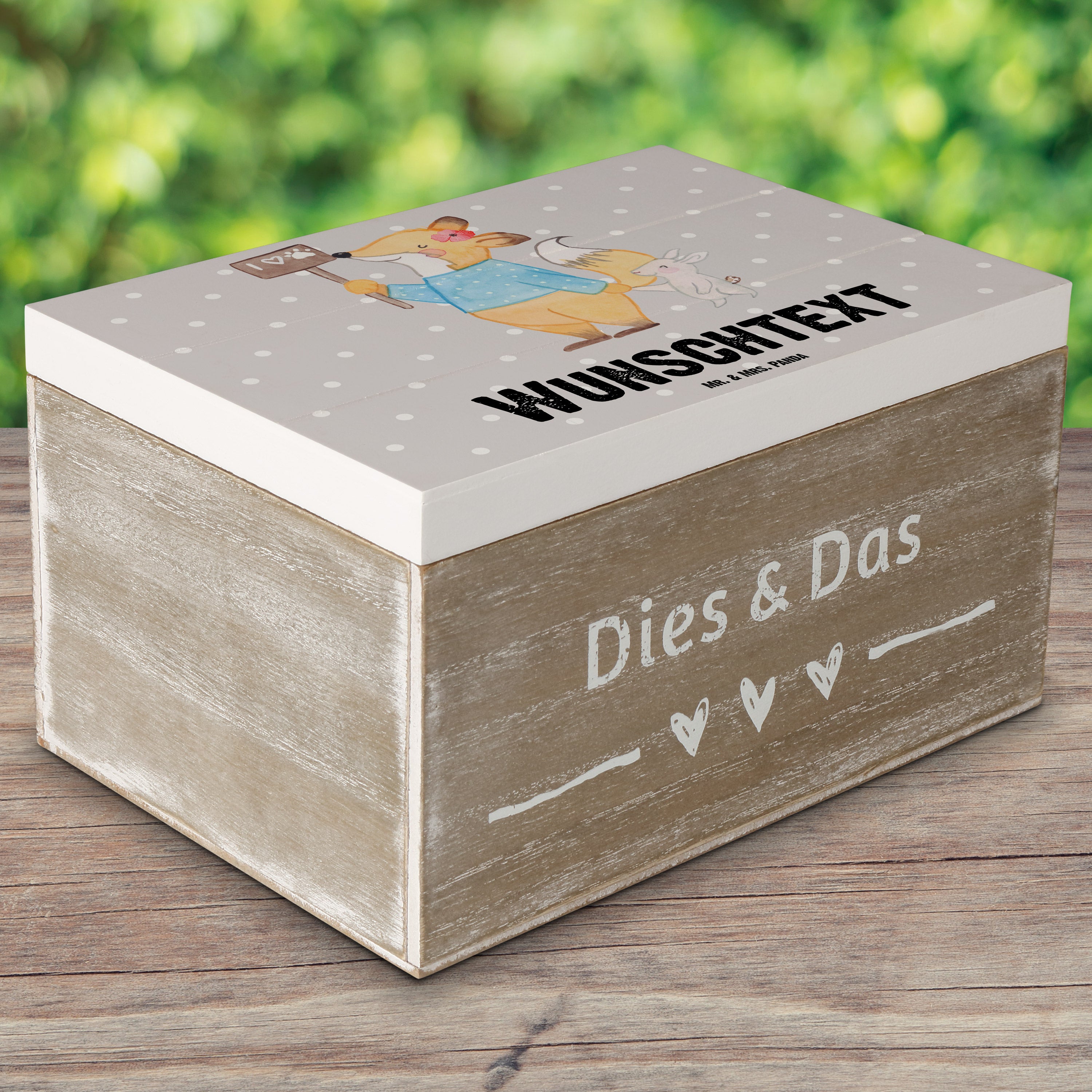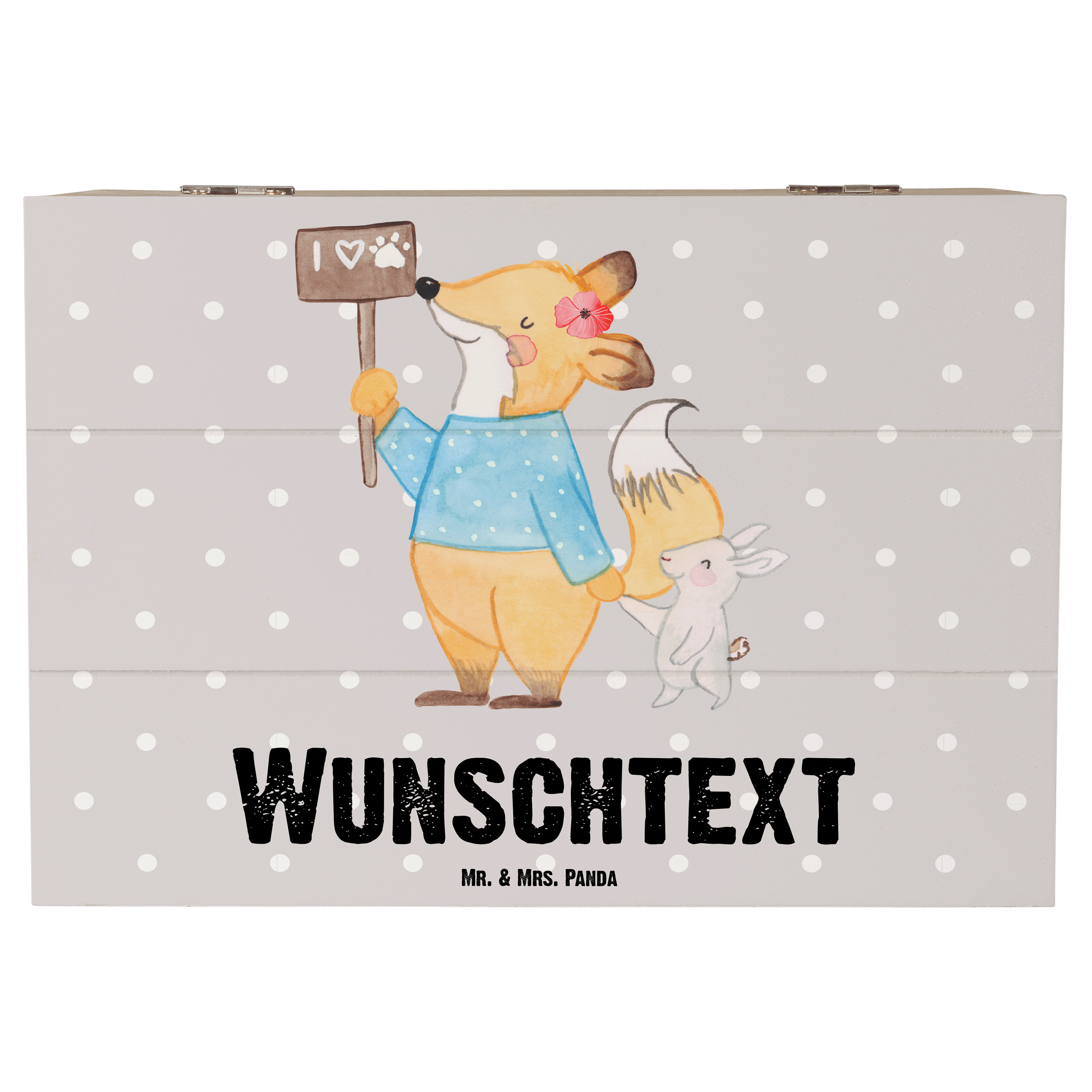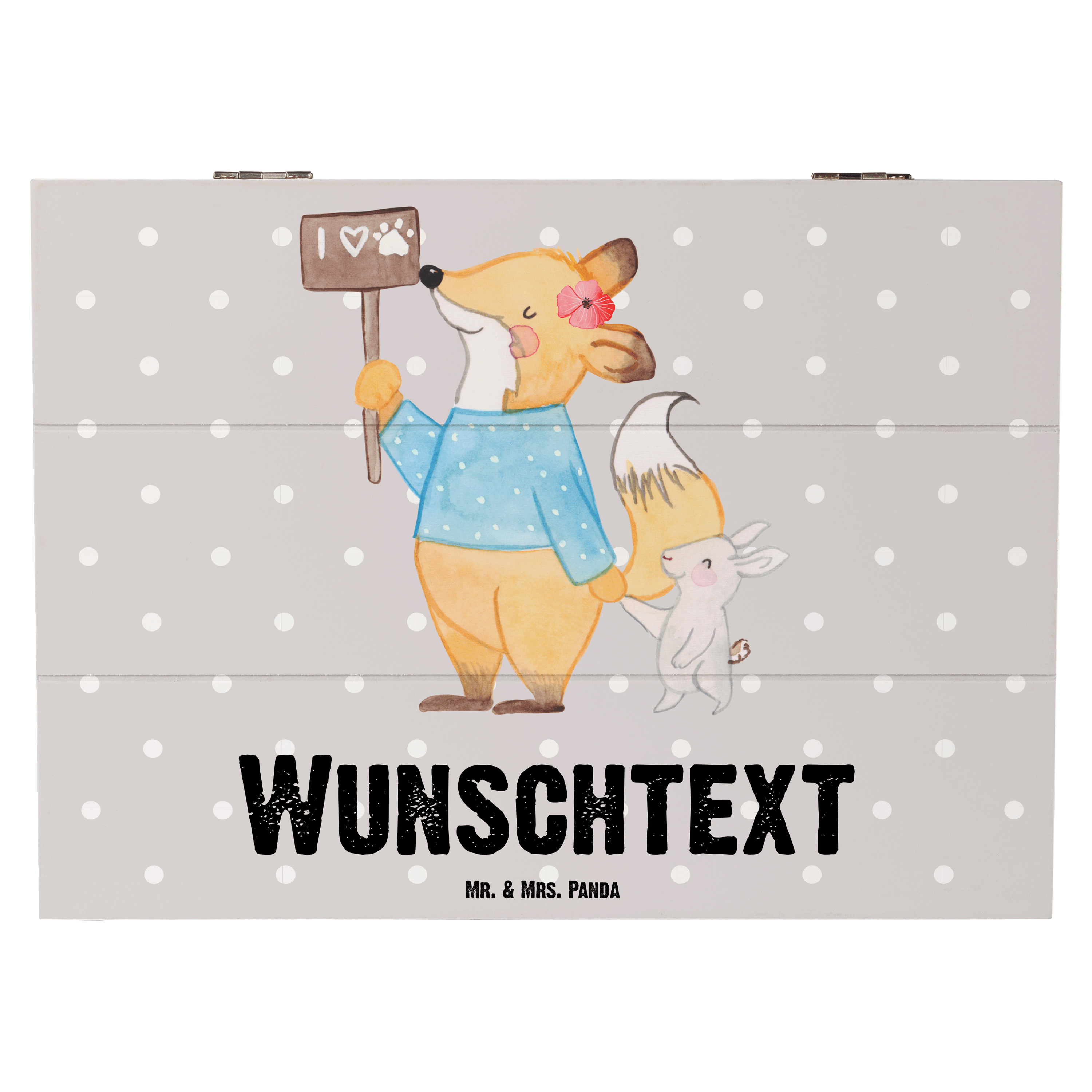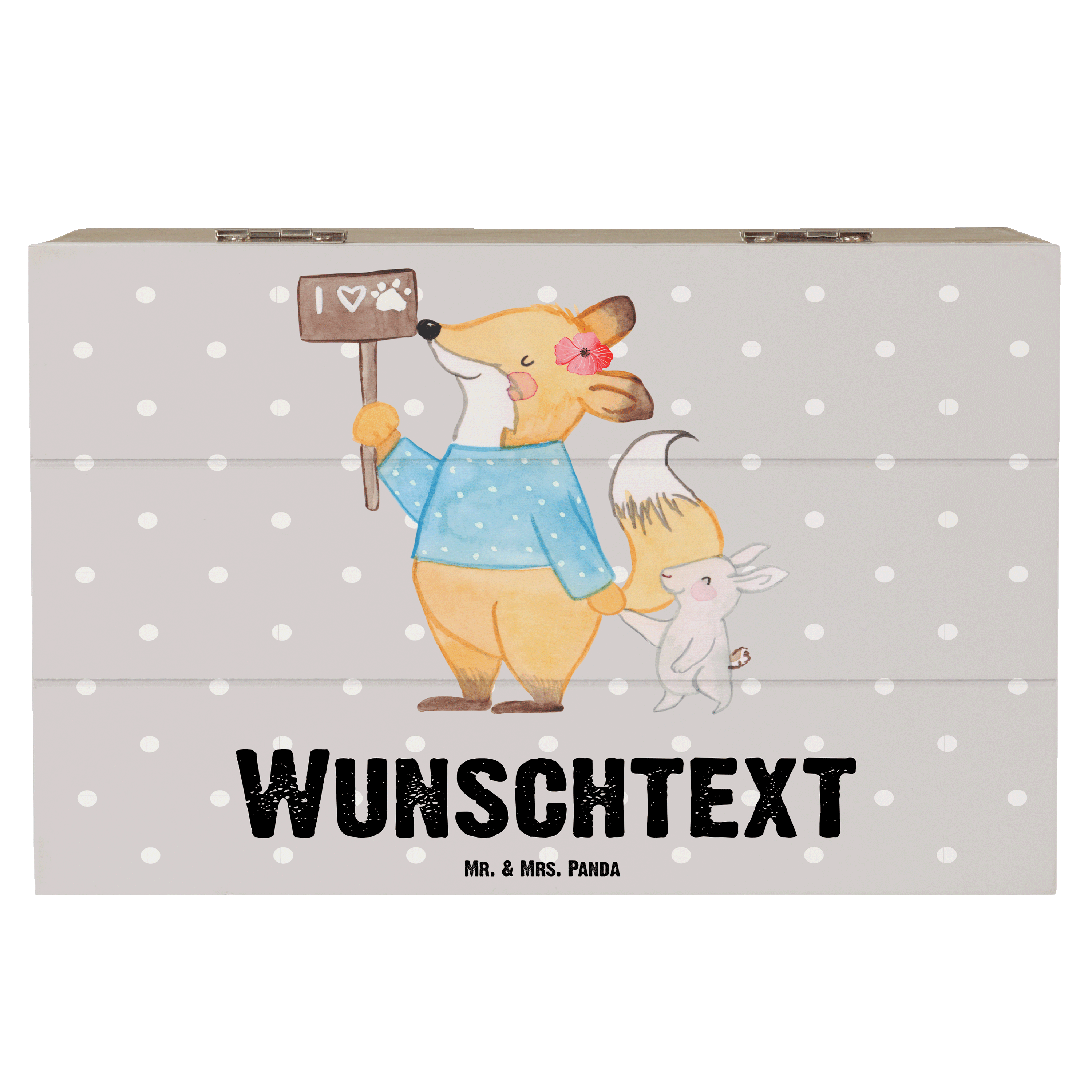 Personalisierte Holzkiste Tierschützerin mit Herz - Grau Pastell - 19 x 12 cm