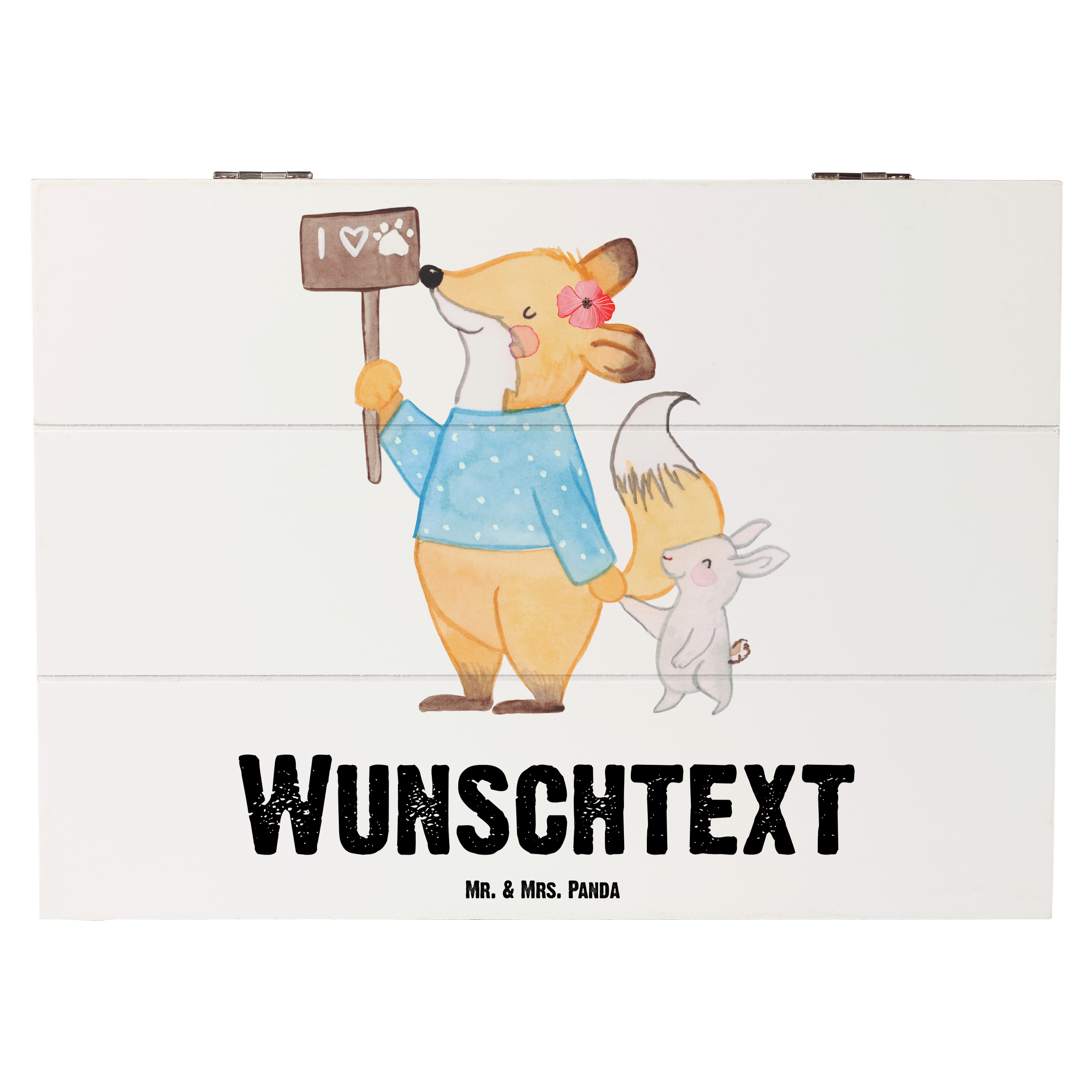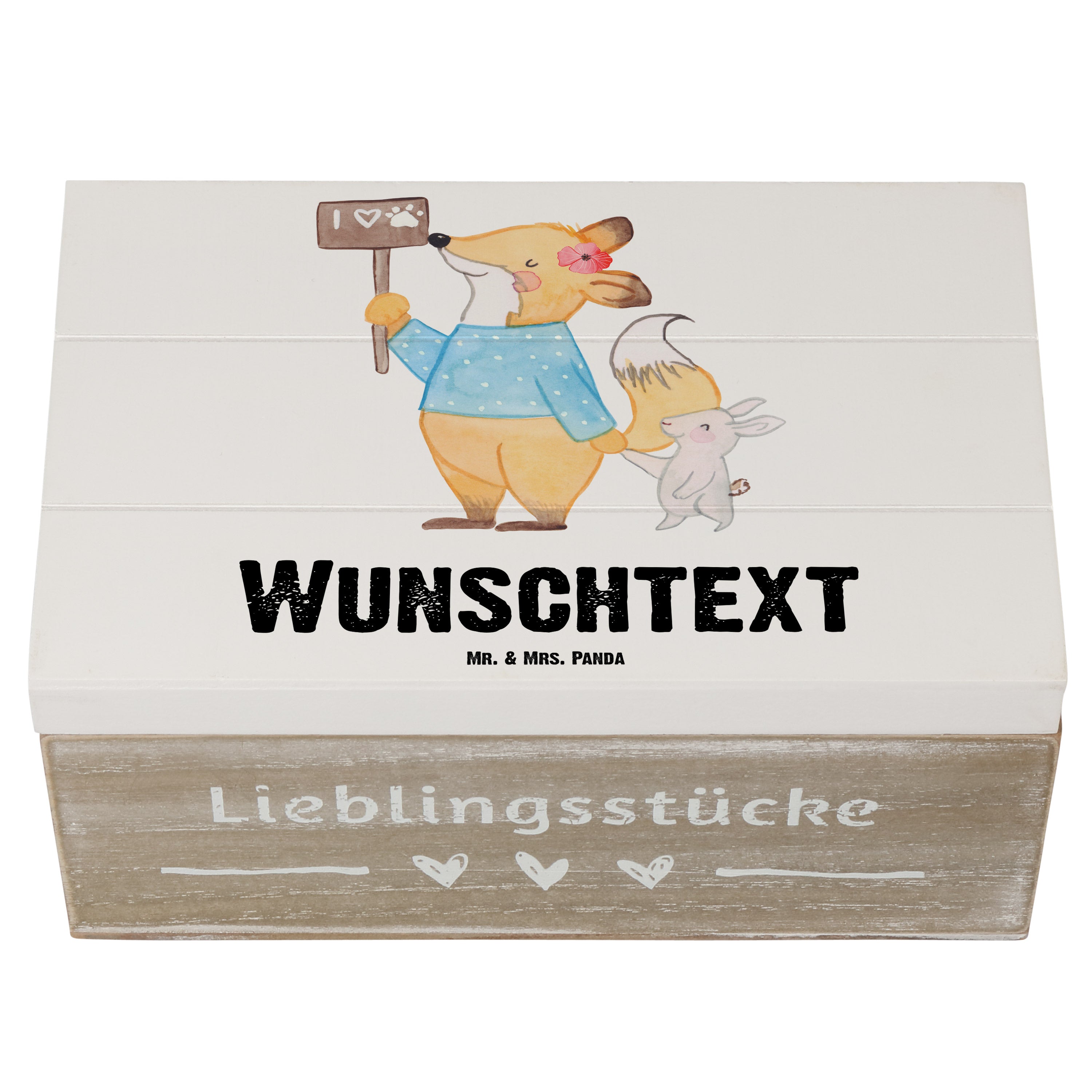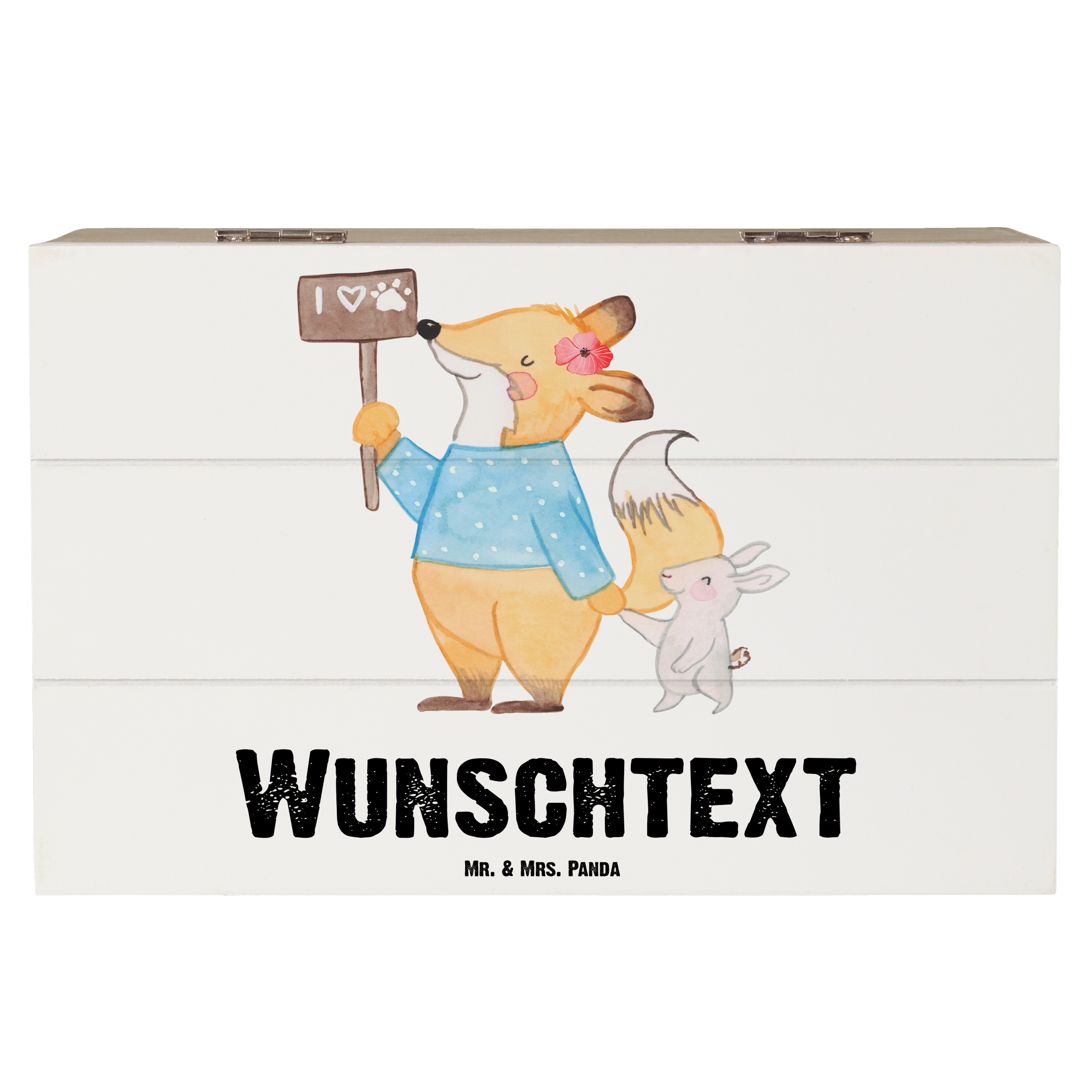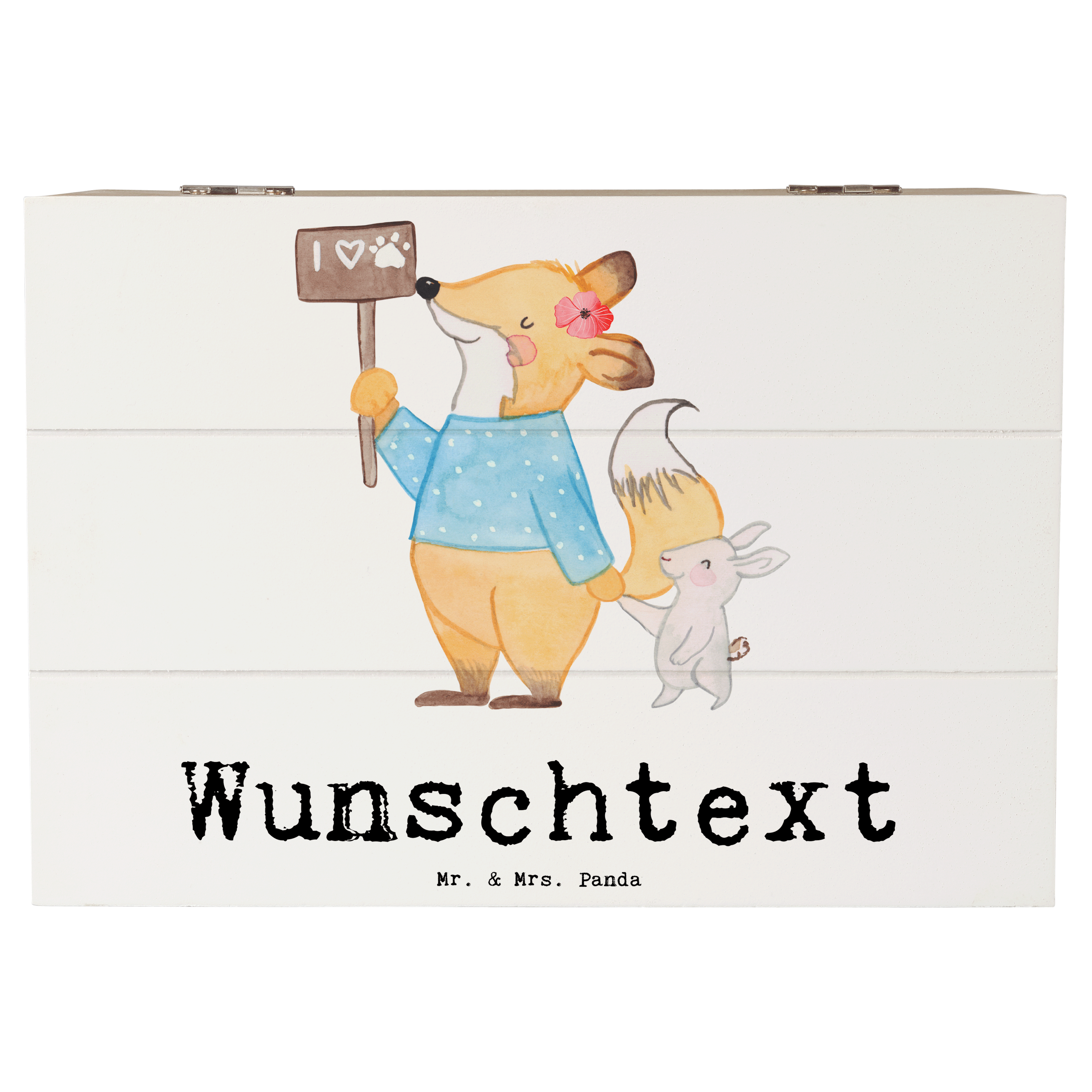 Personalisierte Holzkiste Tierschützerin mit Herz - Grau Pastell - 19 x 12 cm