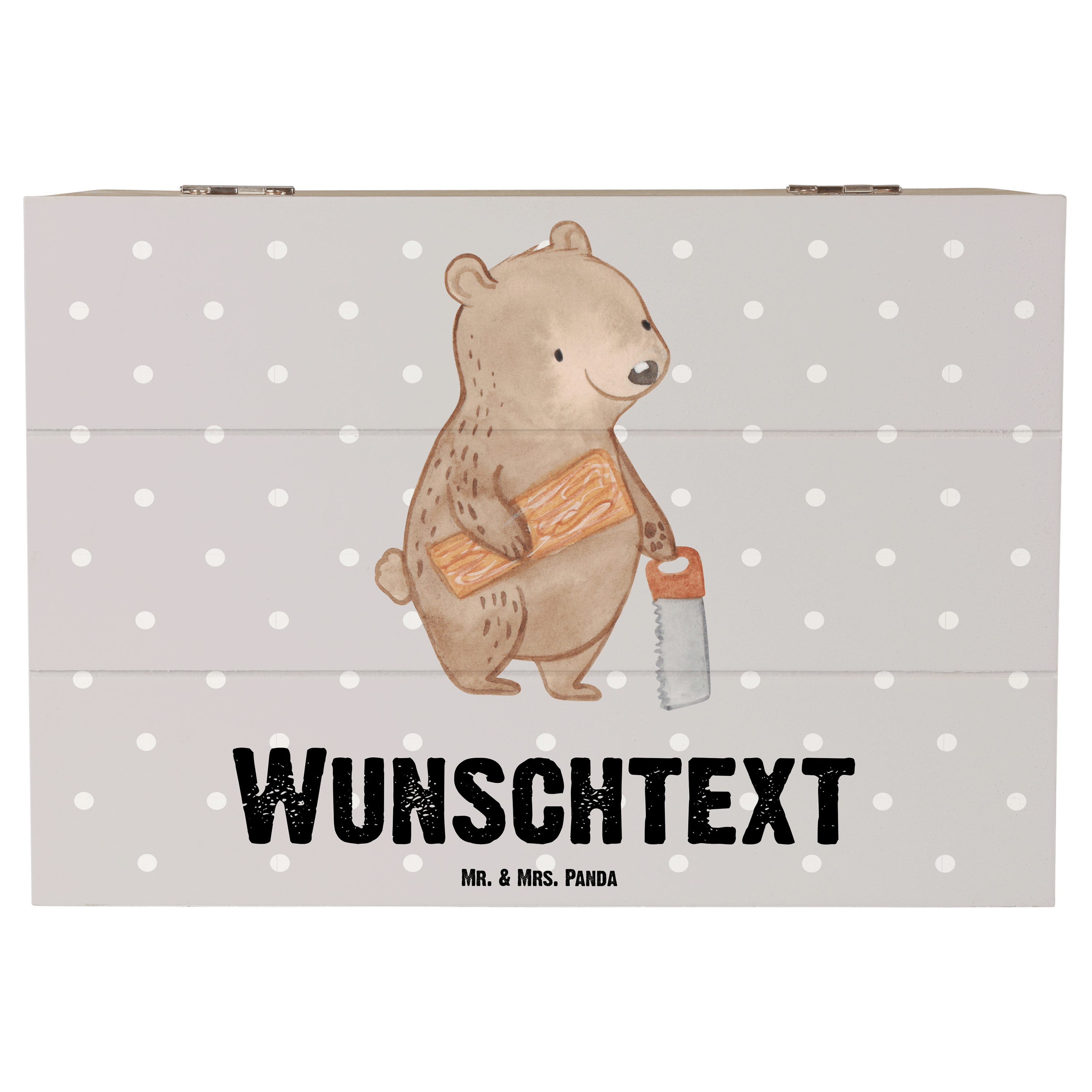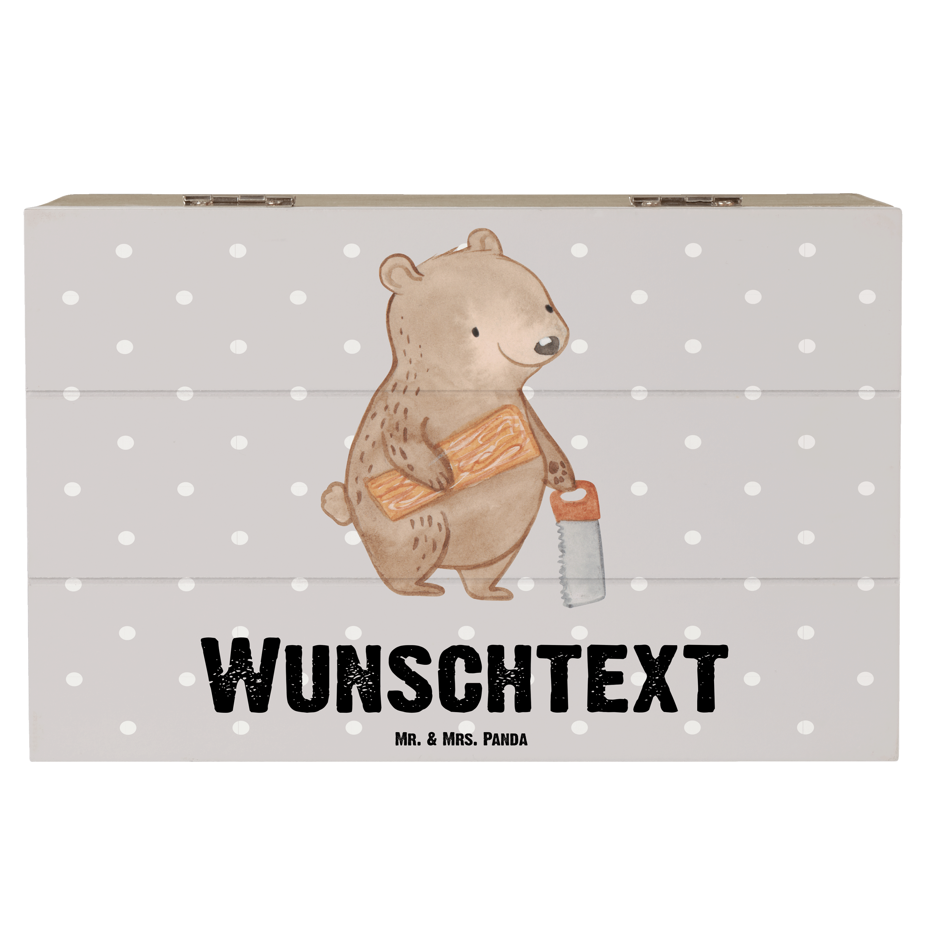 Personalisierte Holzkiste Tischler mit Herz - 25 x 18 cm - Grau Pastell