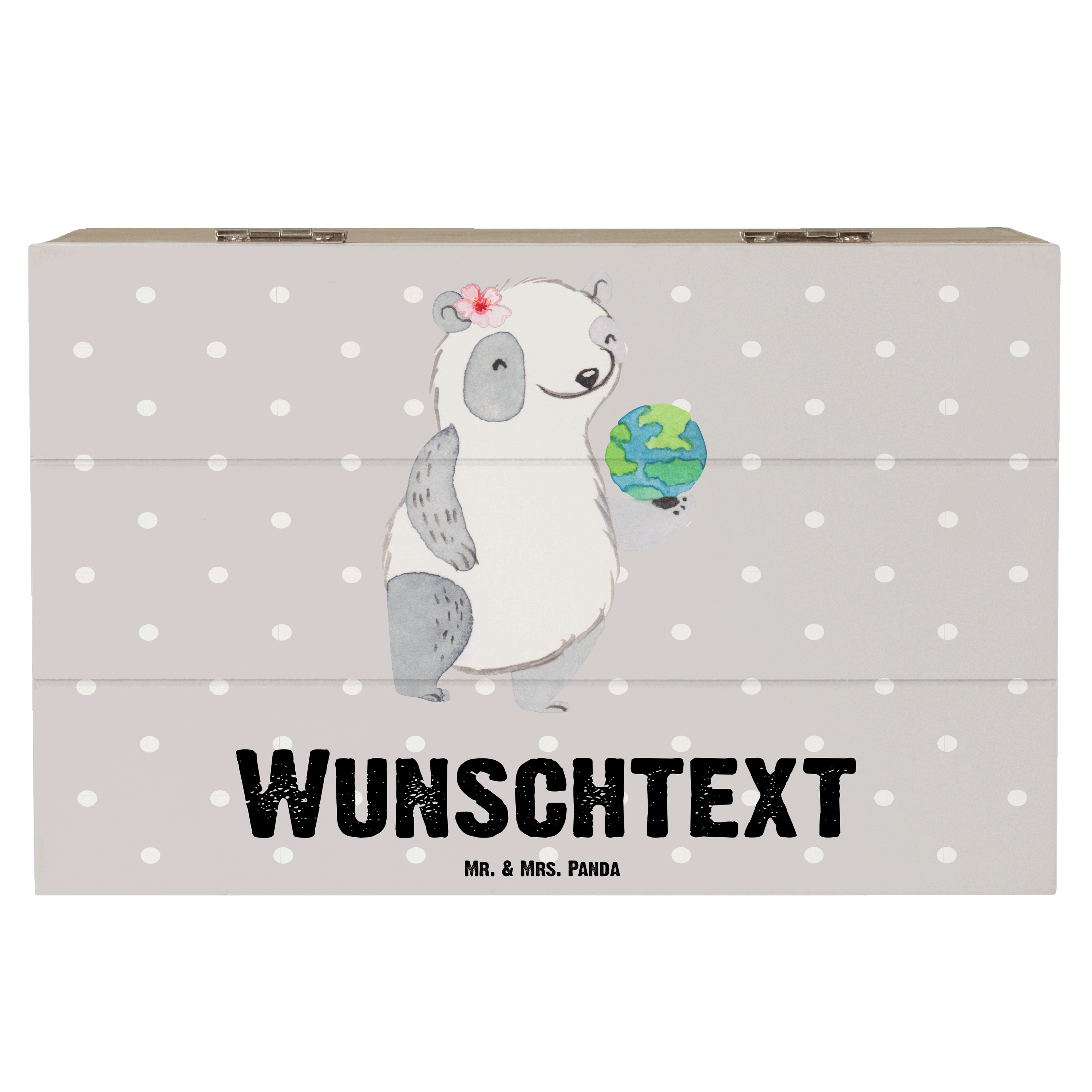 Personalisierte Holzkiste Touristikkauffrau mit Herz - Grau Pastell - 19 x 12 cm