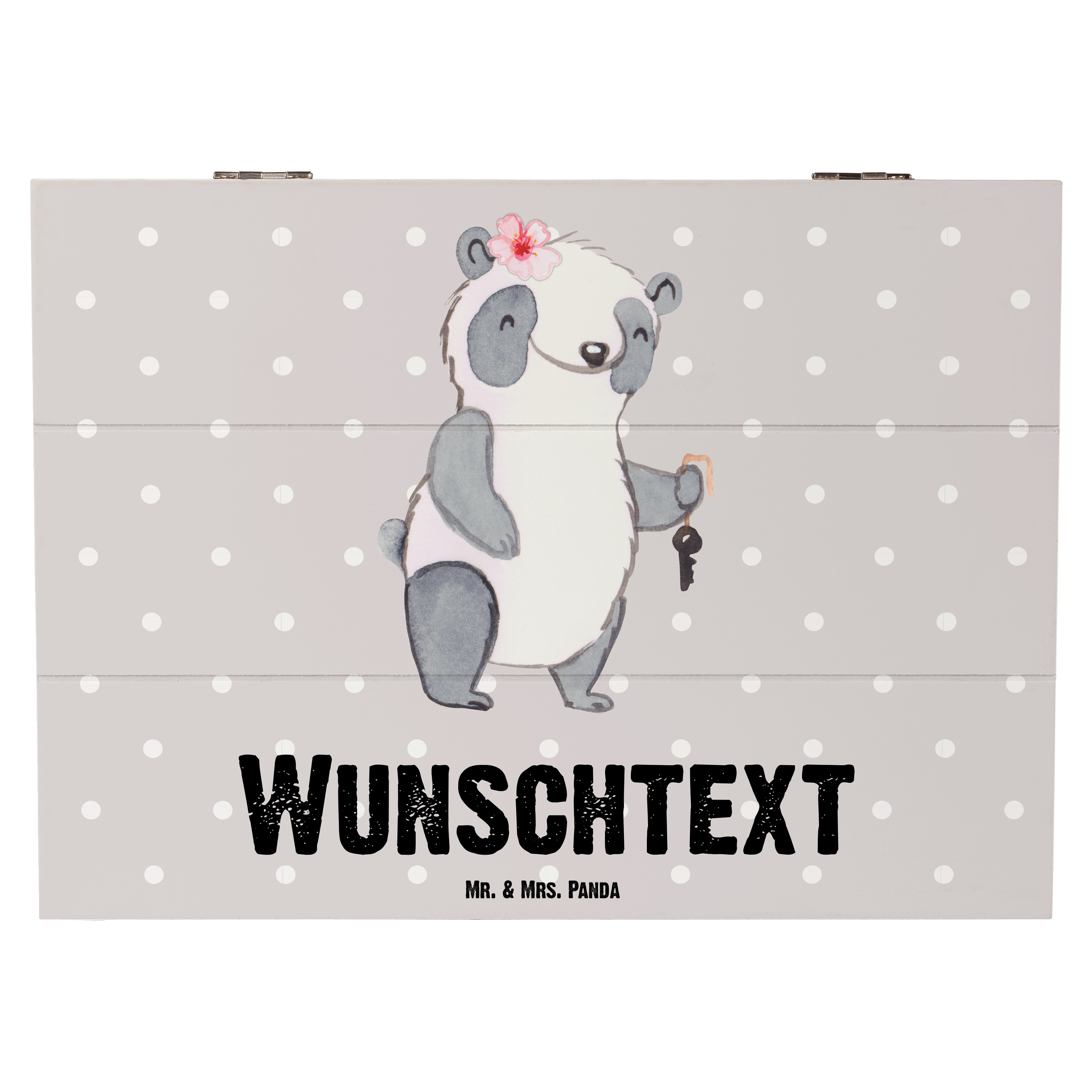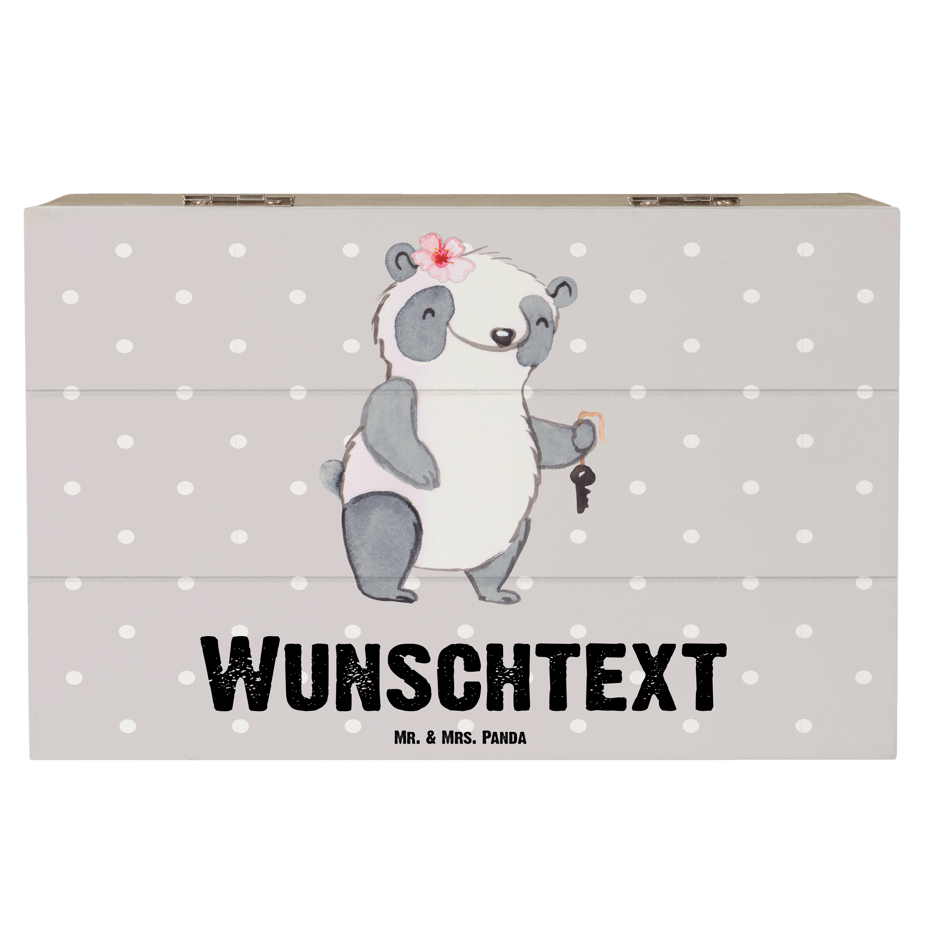 Personalisierte Holzkiste Vermieterin mit Herz - Grau Pastell - 19 x 12 cm