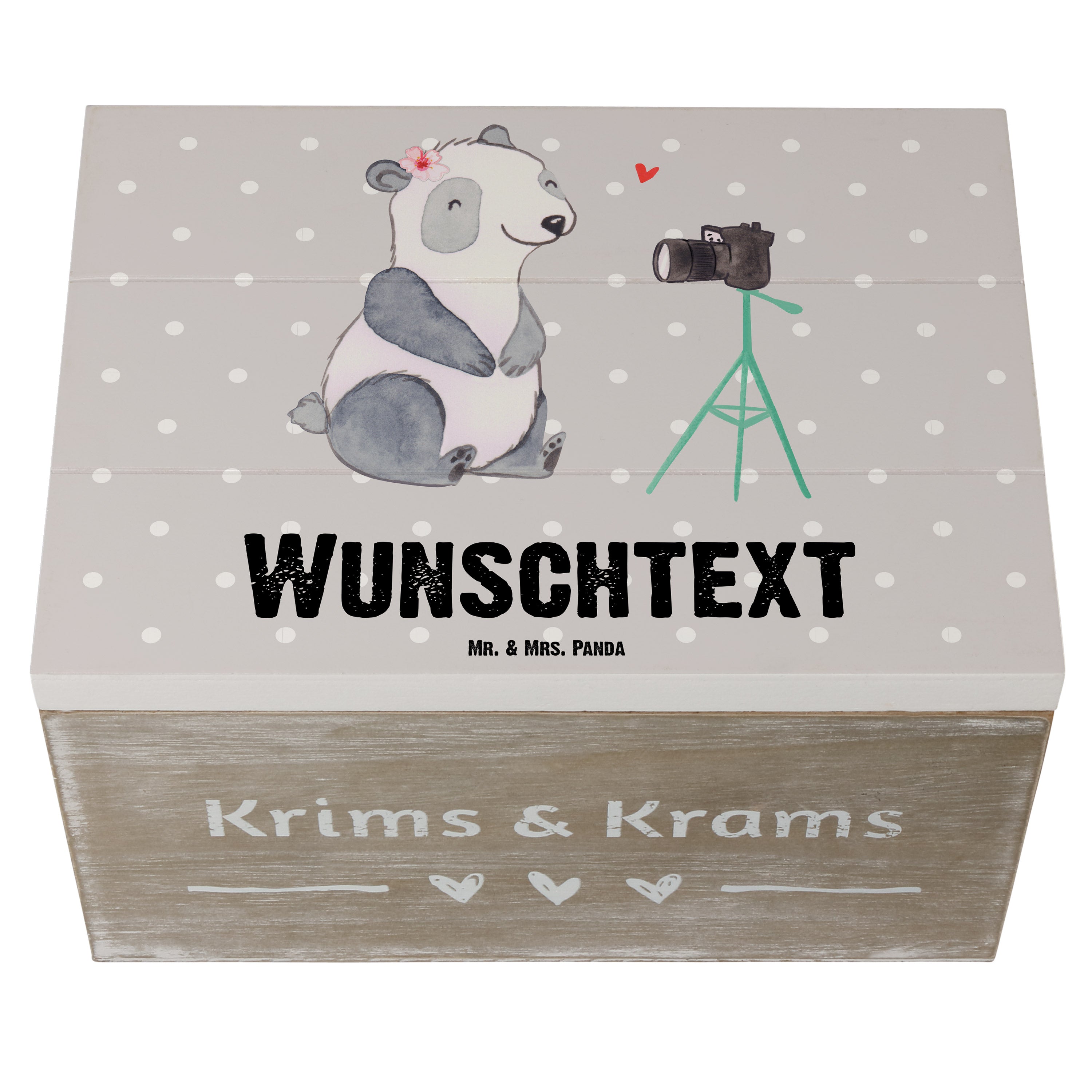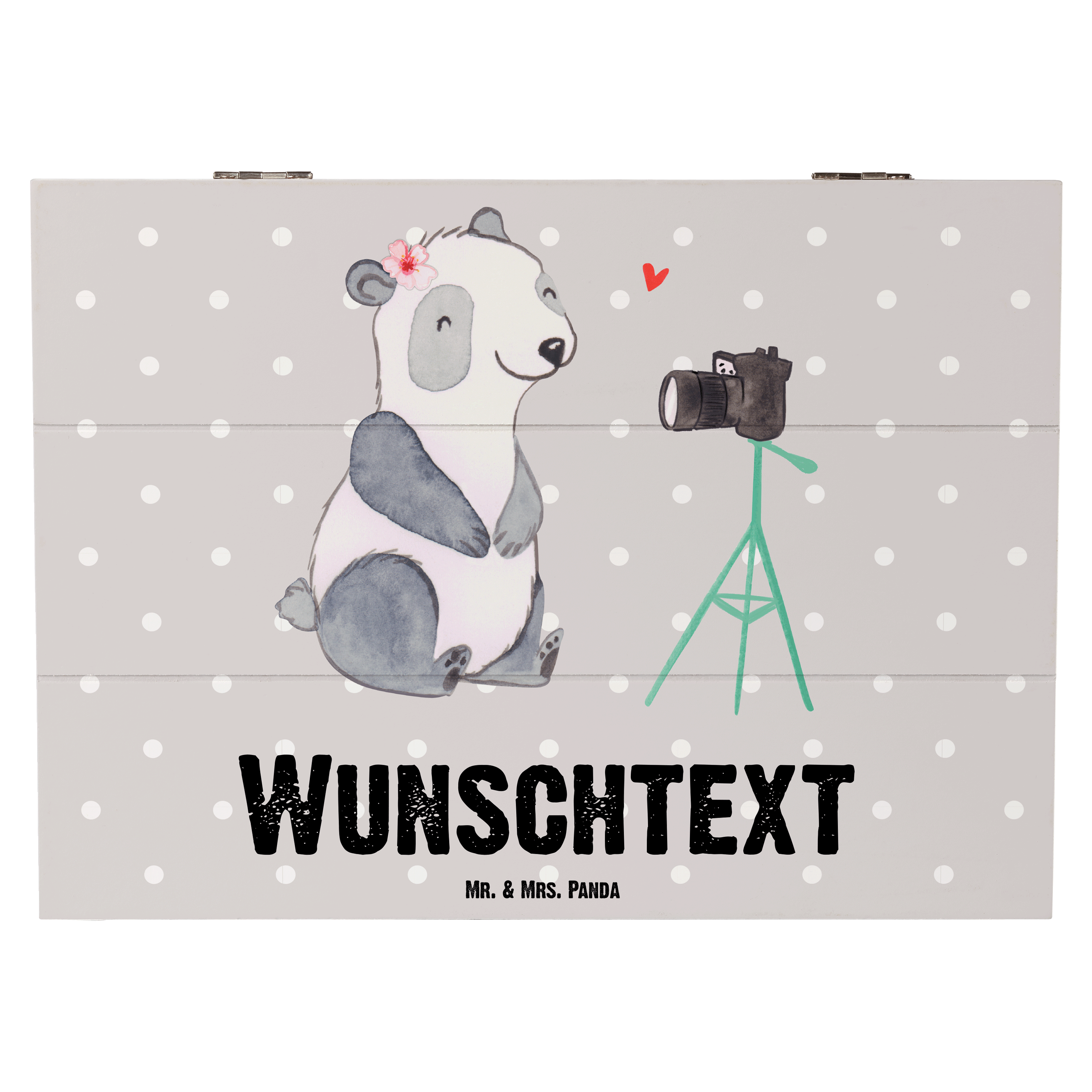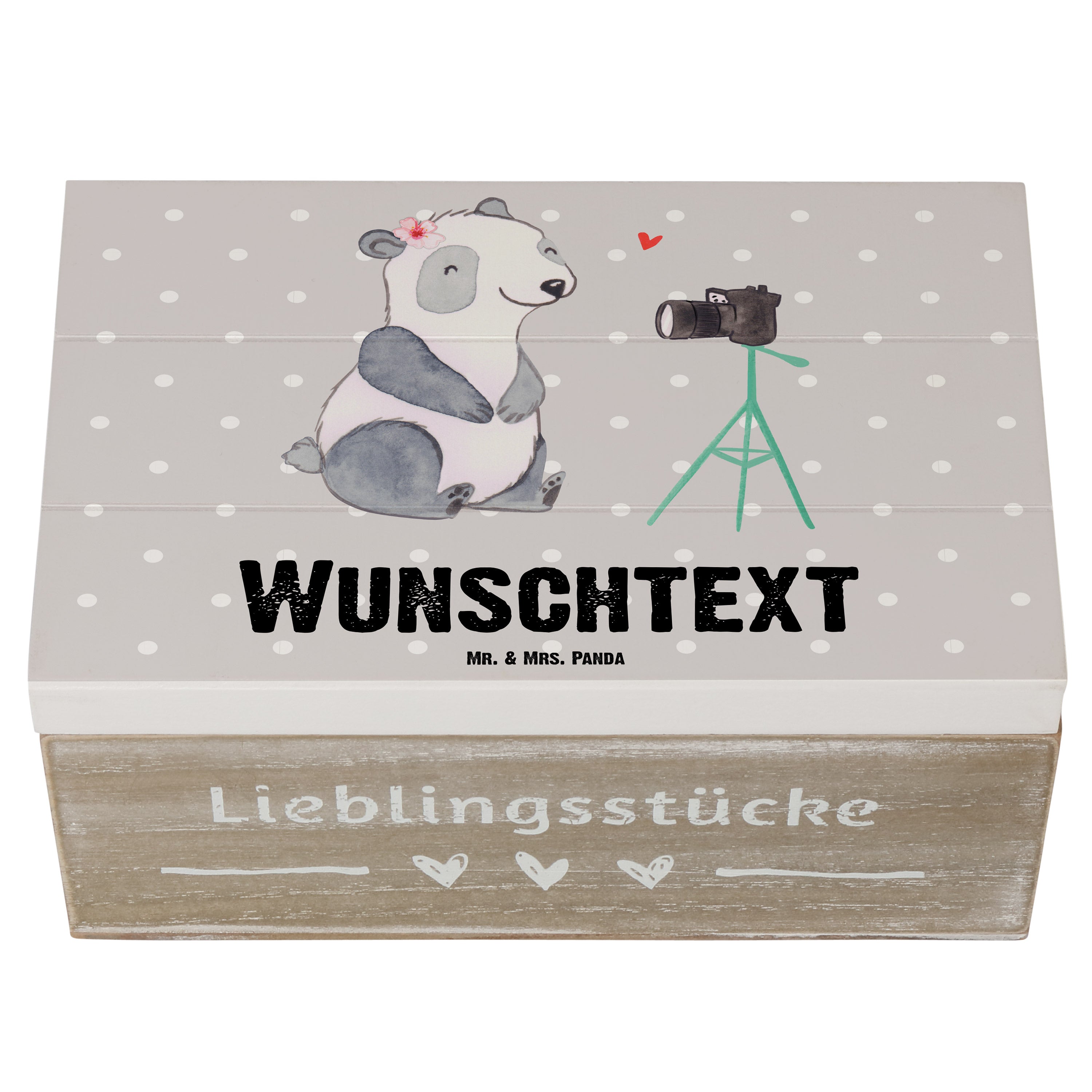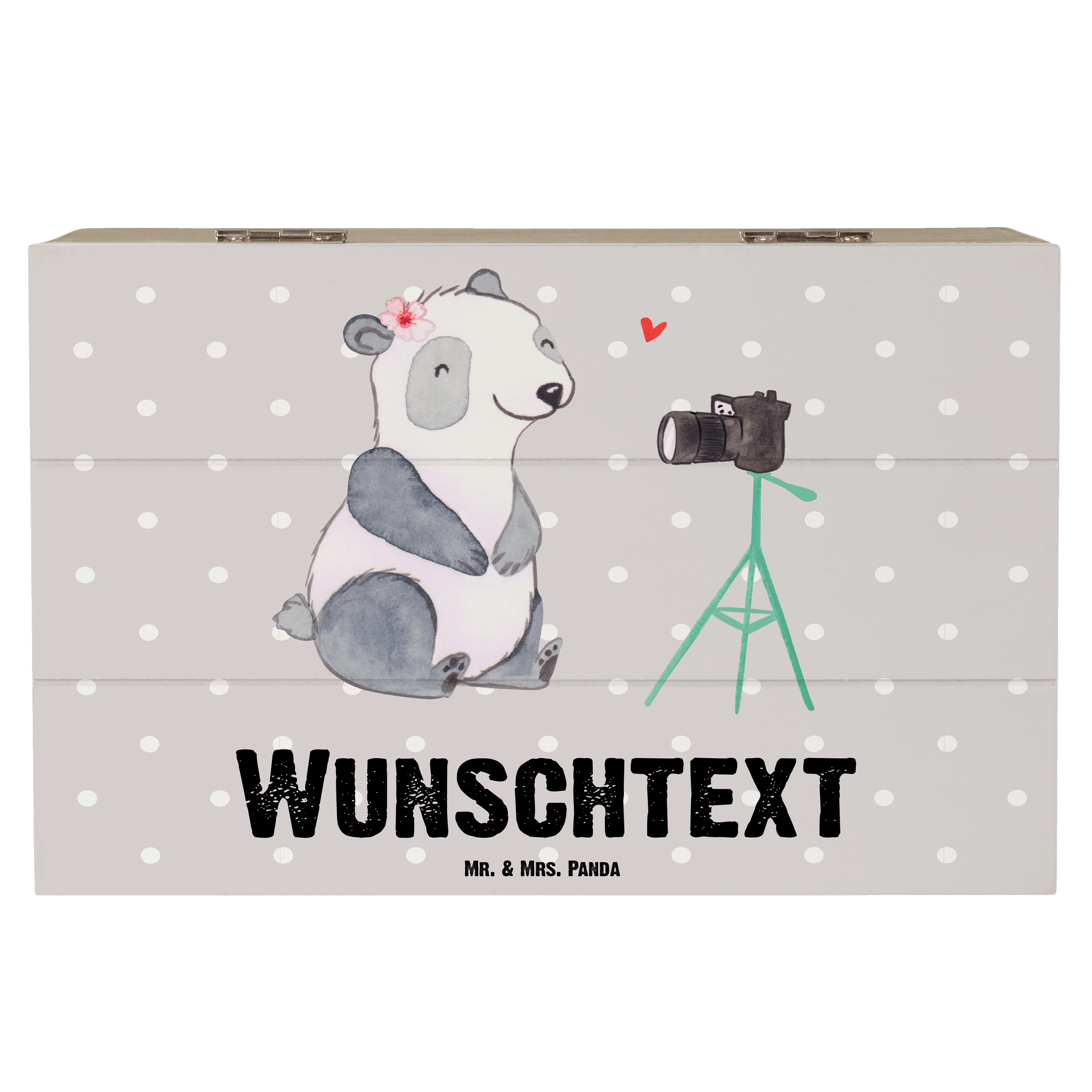 Personalisierte Holzkiste Vloggerin mit Herz - Grau Pastell - 19 x 12 cm