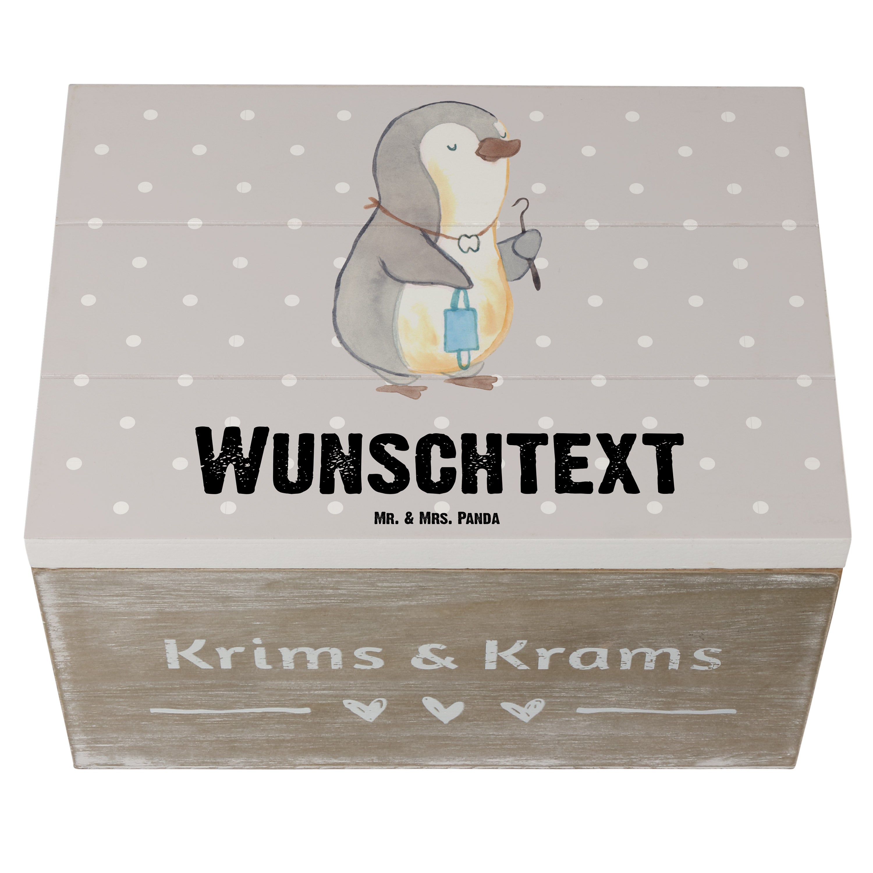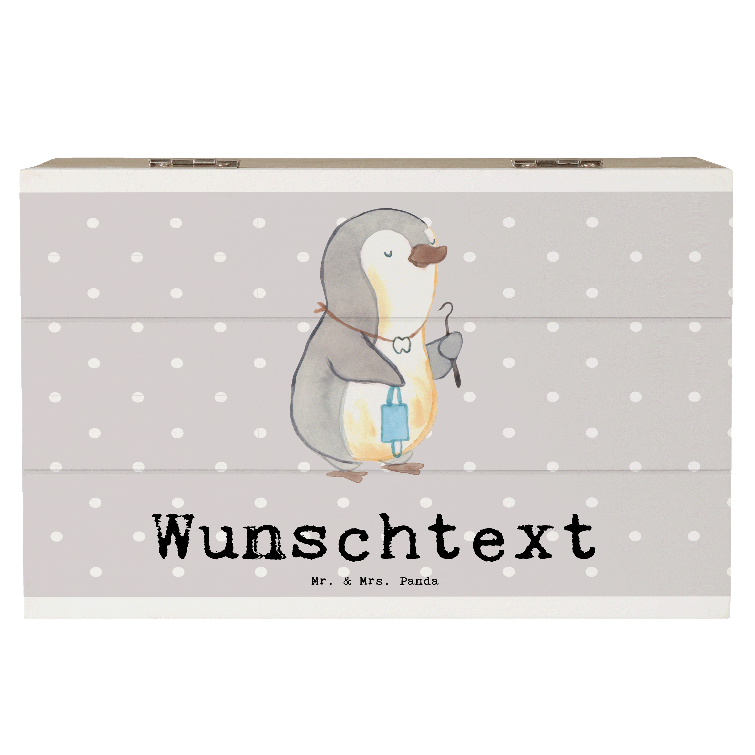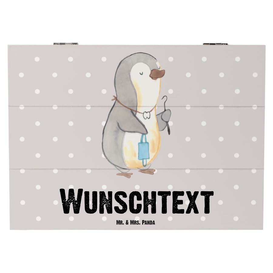 Personalisierte Holzkiste Zahnarzthelfer mit Herz - 25 x 18 cm - Grau Pastell