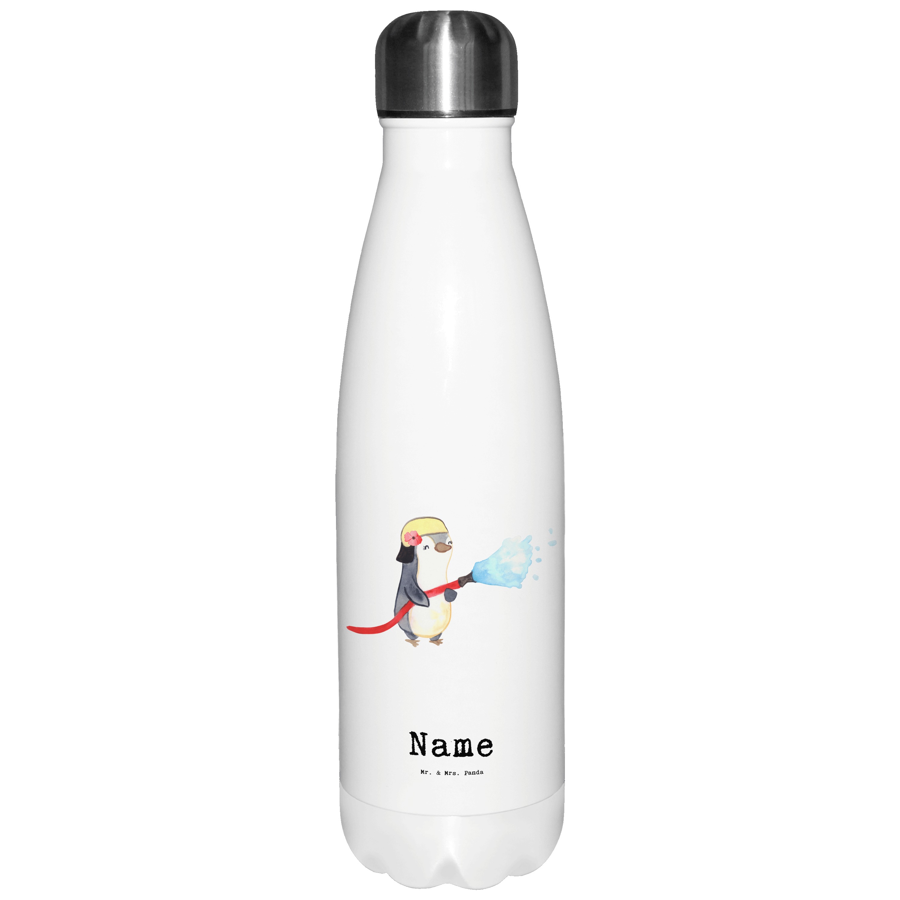 Personalisierte Thermosflasche Feuerwehrfrau mit Herz