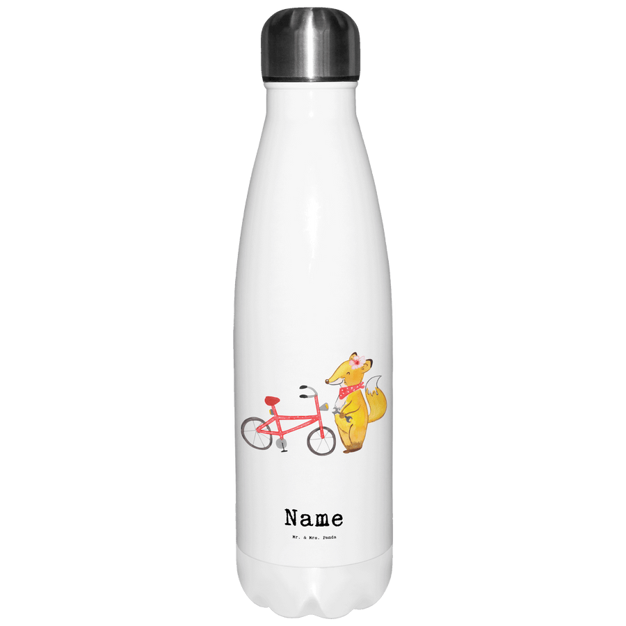 Personalisierte Thermosflasche Zweirad Mechanikerin mit Herz
