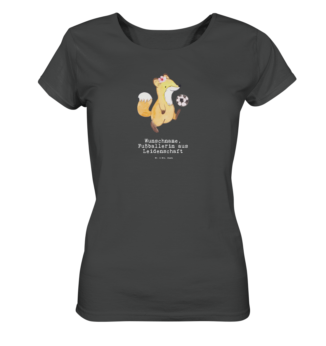 Unsere kleine Fuchsdame ist Fußballerin aus Leidenschaft - daher ist unser Motiv Fußballerin auch ein beliebtes Geschenk für Fußballerinnen und Fußballlehrerinnen.