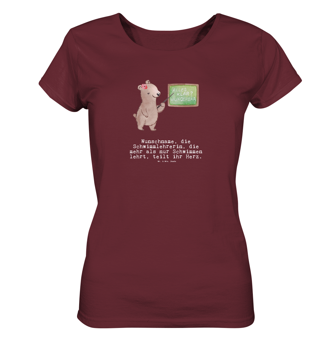 Personalisiertes Shirt Damen Schwimmlehrerin mit Herz T-Shirt, Shirt, Tshirt, Lustiges T-Shirt, T-Shirt mit Spruch, Party, Junggesellenabschied, Jubiläum, Geburstag, Herrn, Damen, Männer, Frauen, Schlafshirt, Nachthemd, Sprüche, Beruf, Ausbildung, Abschied, Rente, Kollege, Kollegin, Geschenk, Schenken, Arbeitskollege, Mitarbeiter, Firma, Danke, Dankeschön, Schwimmlehrerin, Schwimmbad, Schwimmschule, Schwimmverein