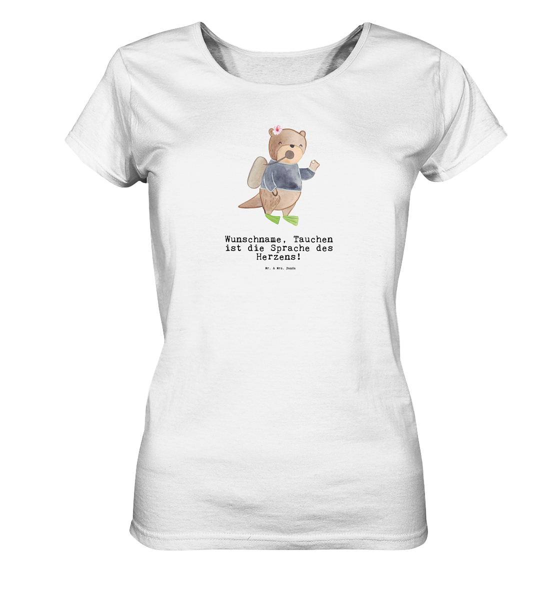 Personalisiertes Shirt Damen Taucherin mit Herz T-Shirt, Shirt, Tshirt, Lustiges T-Shirt, T-Shirt mit Spruch, Party, Junggesellenabschied, Jubiläum, Geburstag, Herrn, Damen, Männer, Frauen, Schlafshirt, Nachthemd, Sprüche, Beruf, Ausbildung, Abschied, Rente, Kollege, Kollegin, Geschenk, Schenken, Arbeitskollege, Mitarbeiter, Firma, Danke, Dankeschön