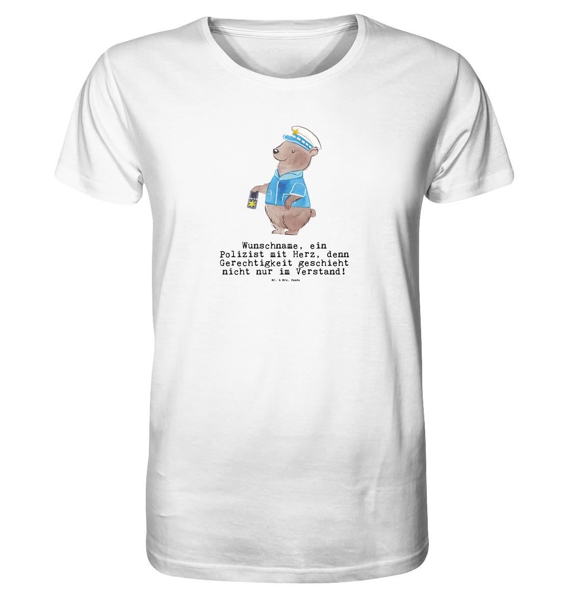 Personalisiertes Shirt Herren Polizeivollzugsbeamter mit Herz - Größe S - Weiß