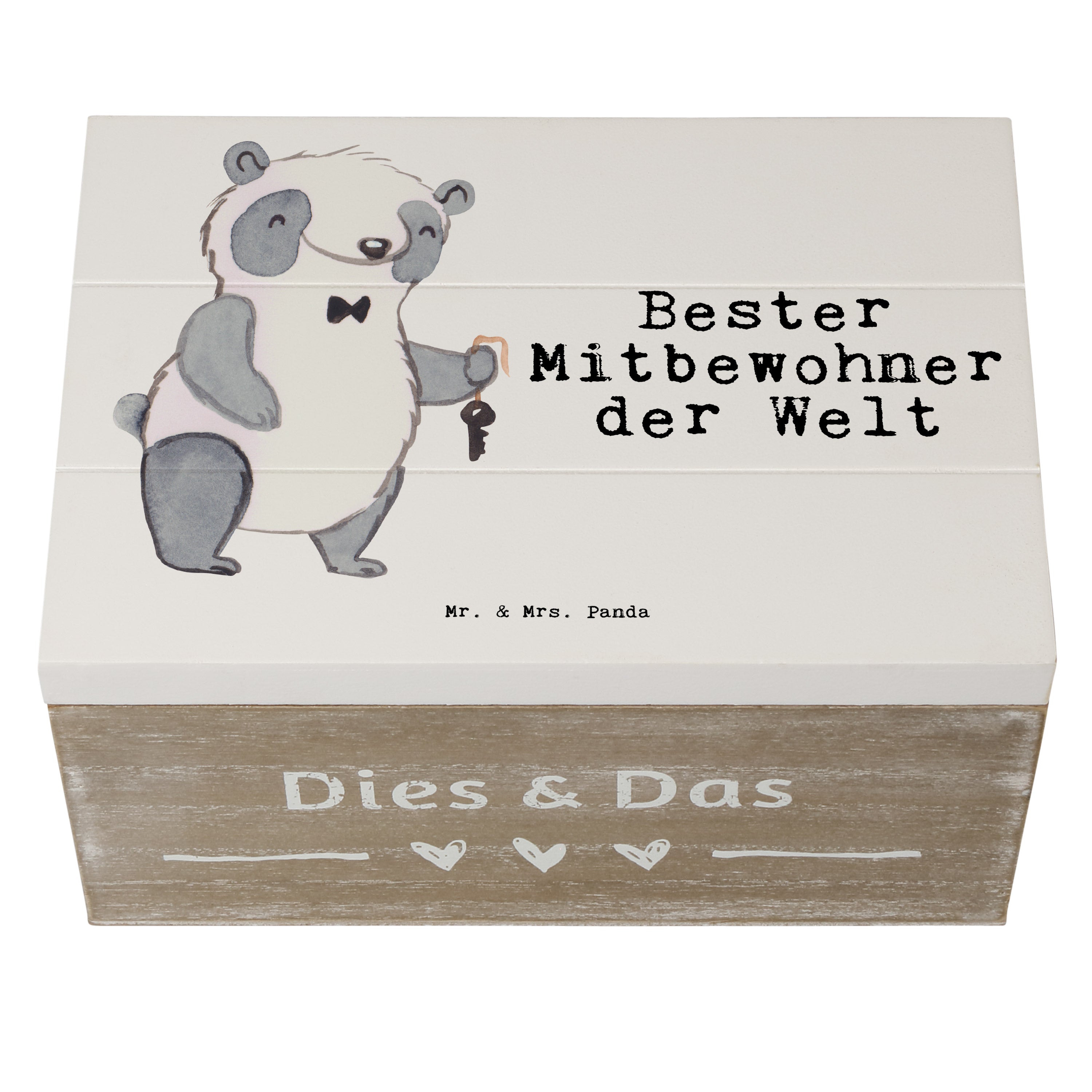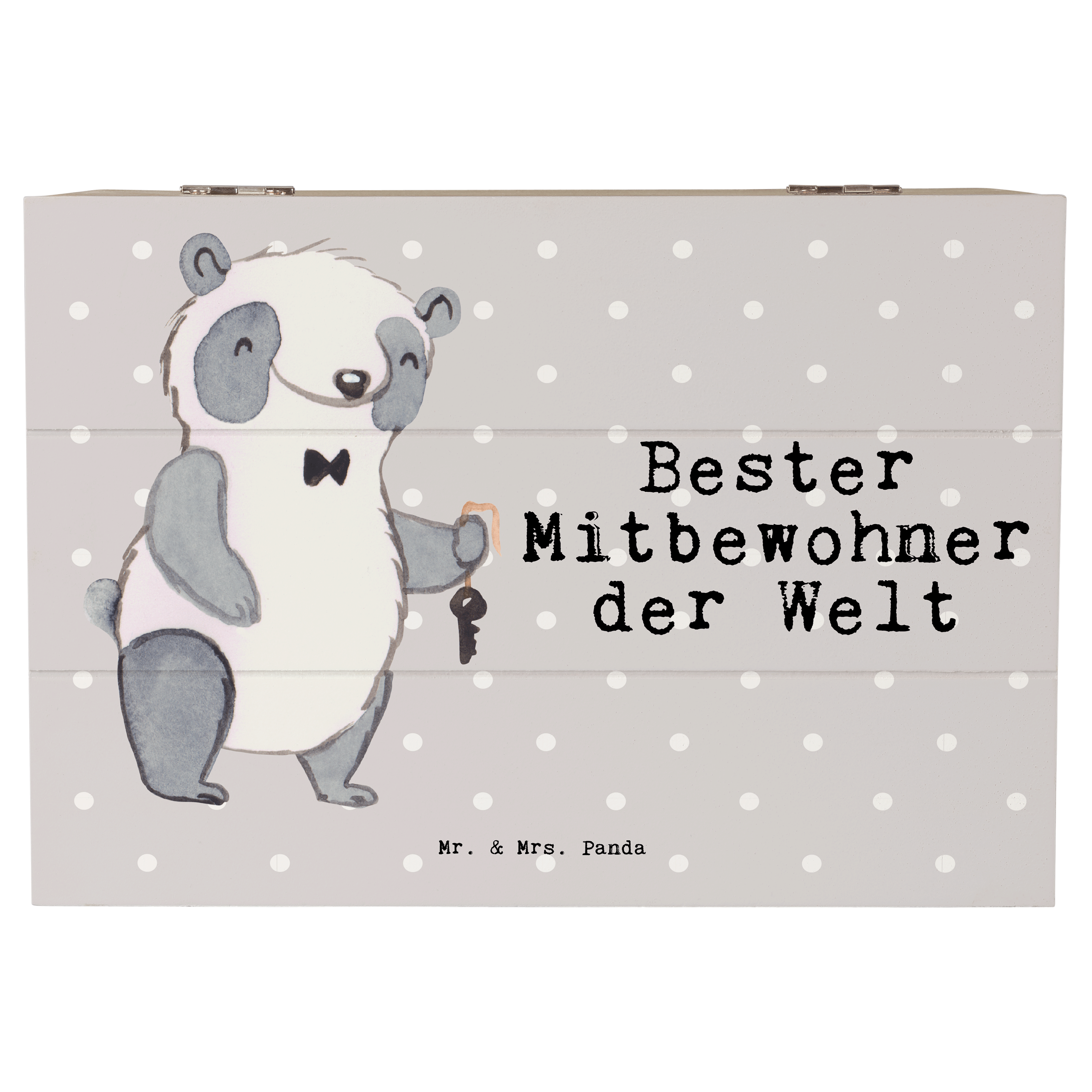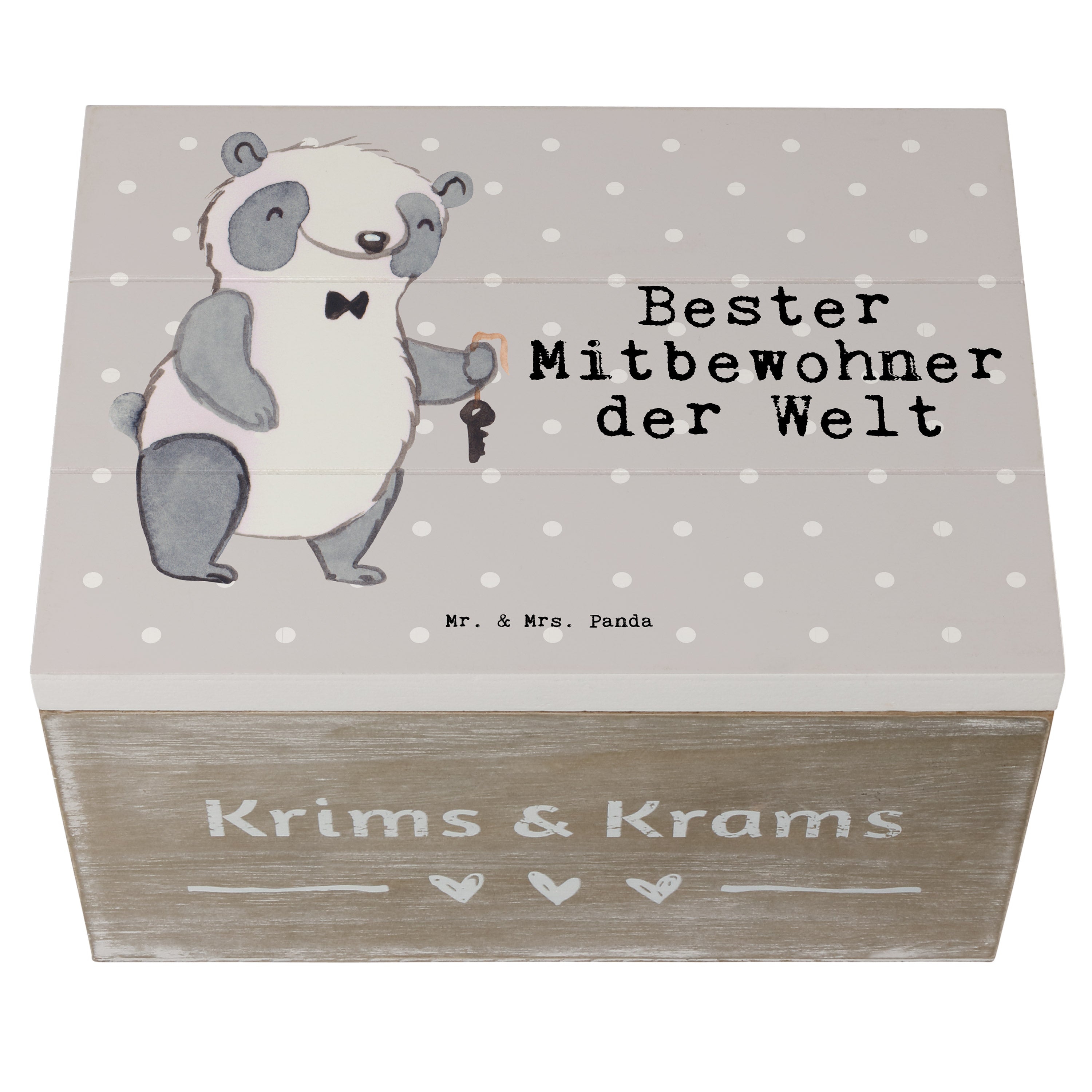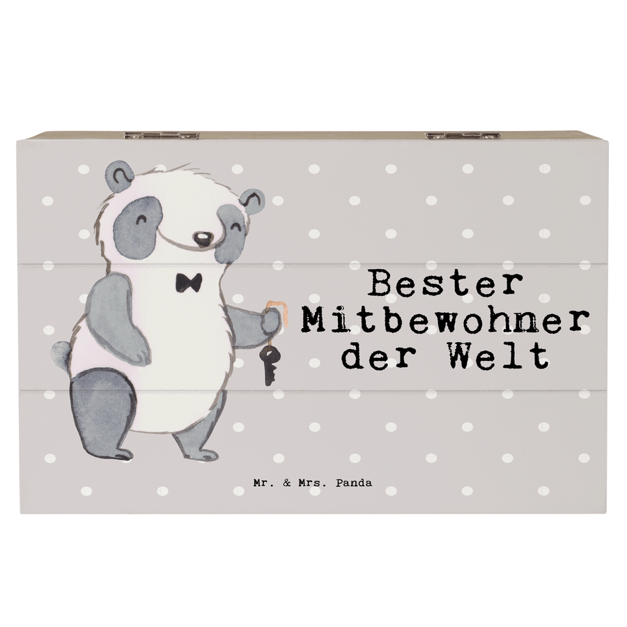 Holzkiste Panda Bester Mitbewohner der Welt - Grau Pastell - 19 x 12 cm