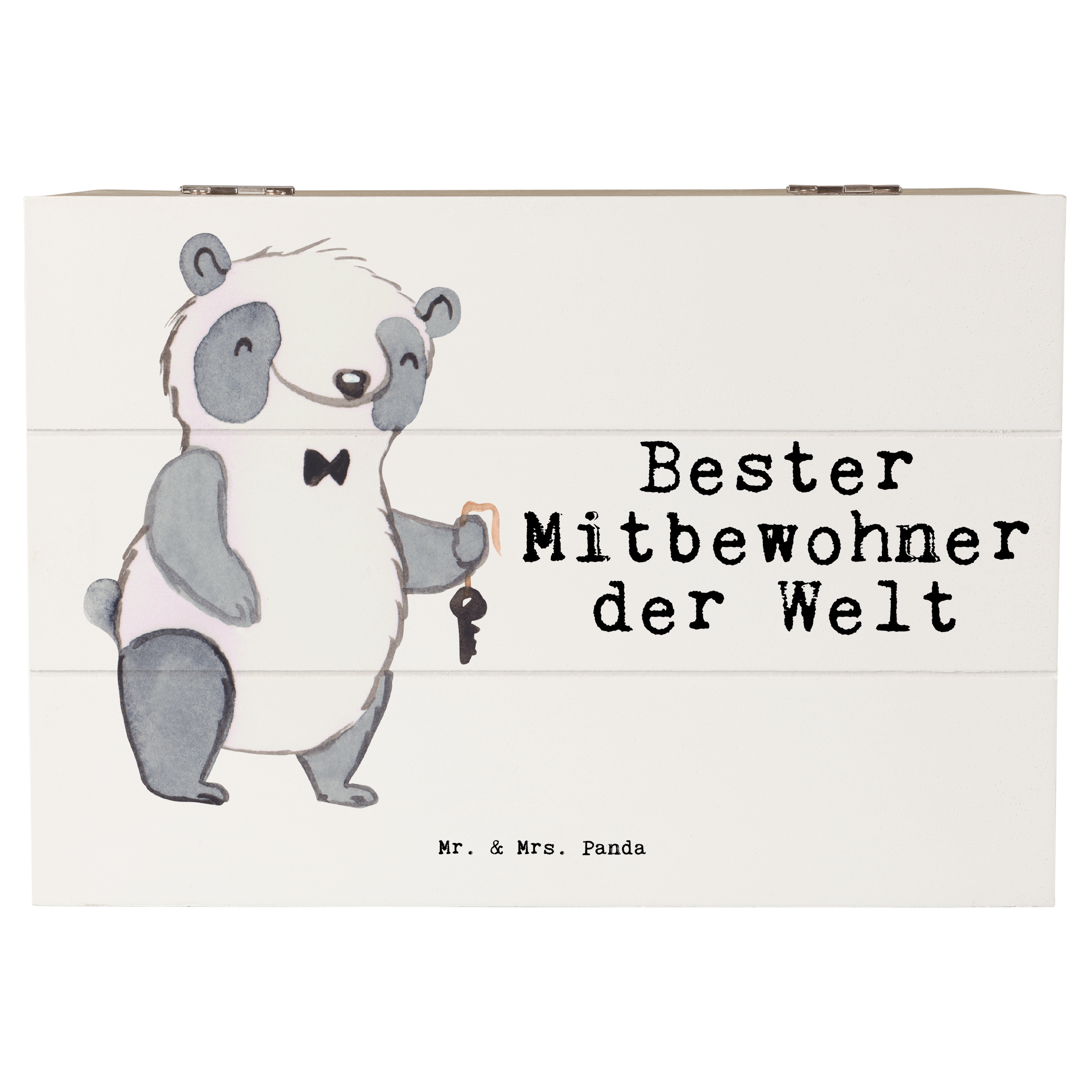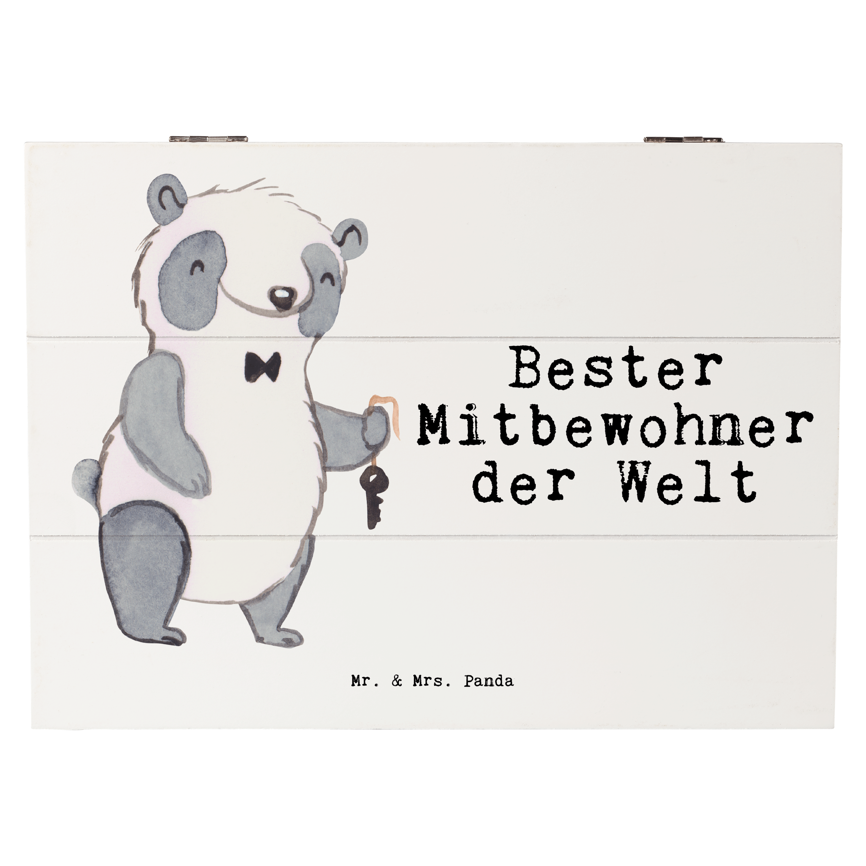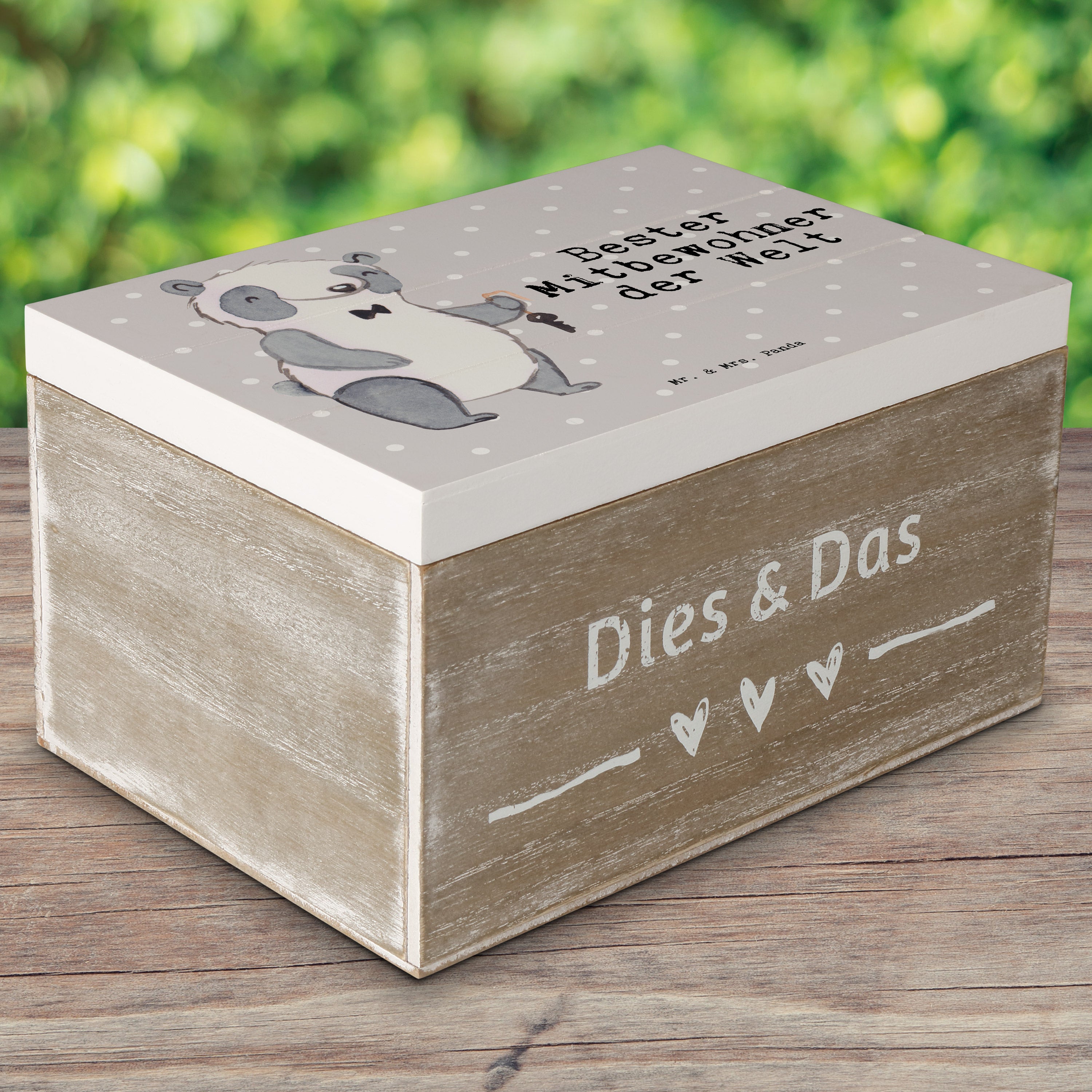 Holzkiste Panda Bester Mitbewohner der Welt - Grau Pastell - 19 x 12 cm