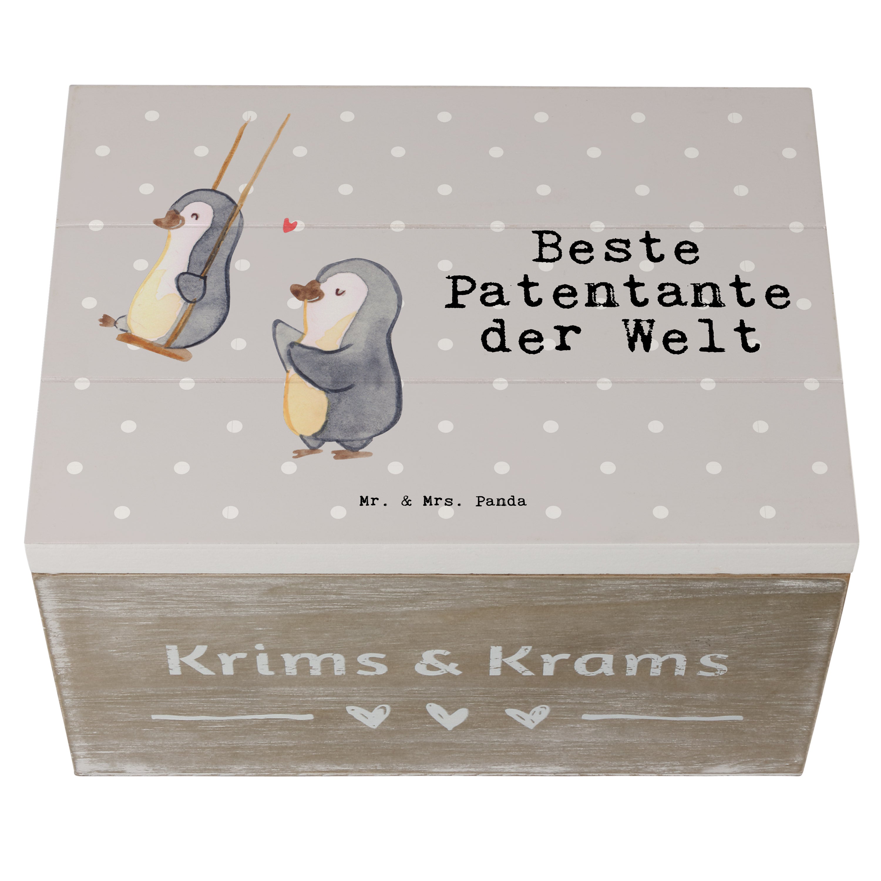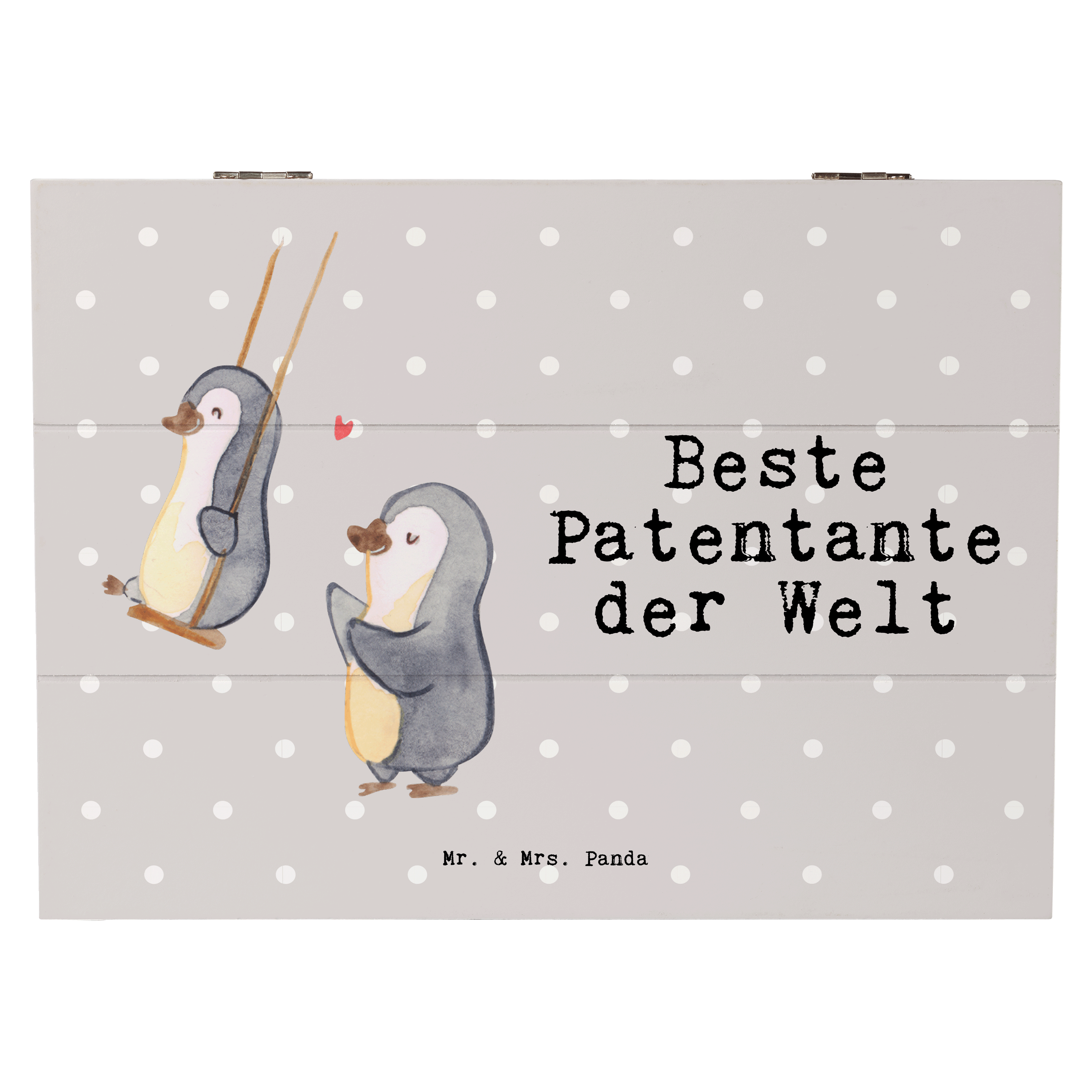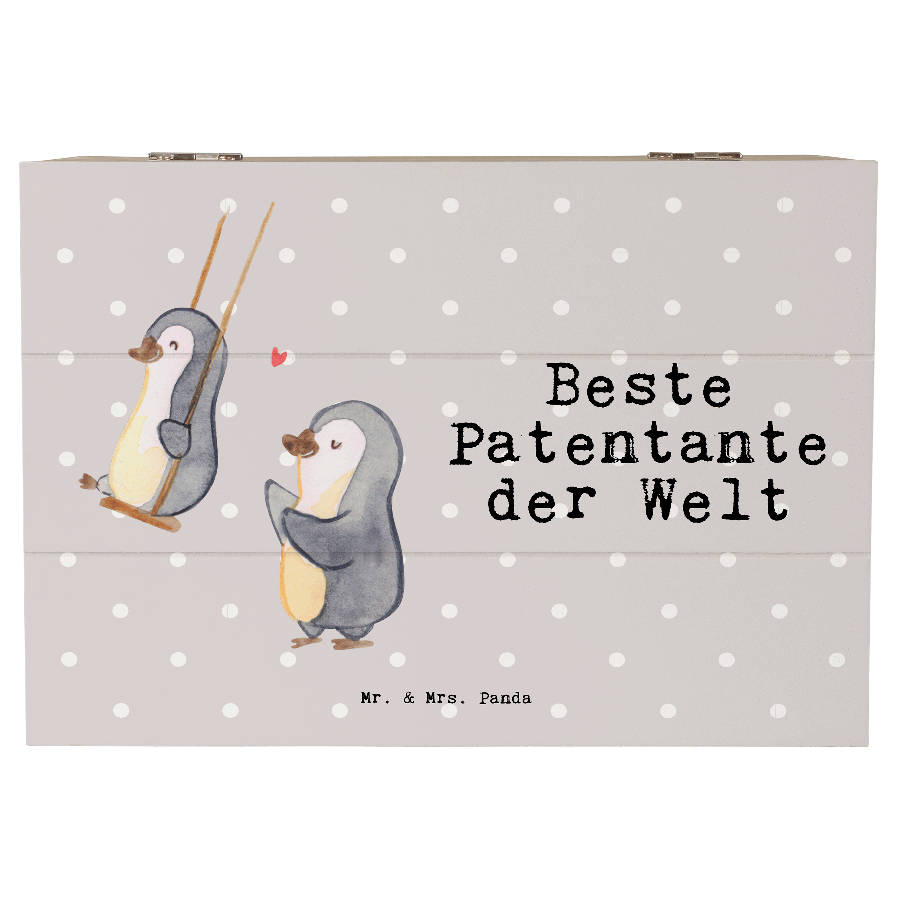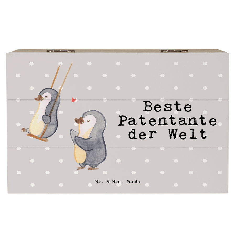 Holzkiste Pinguin Beste Patentante der Welt - Grau Pastell - 19 x 12 cm