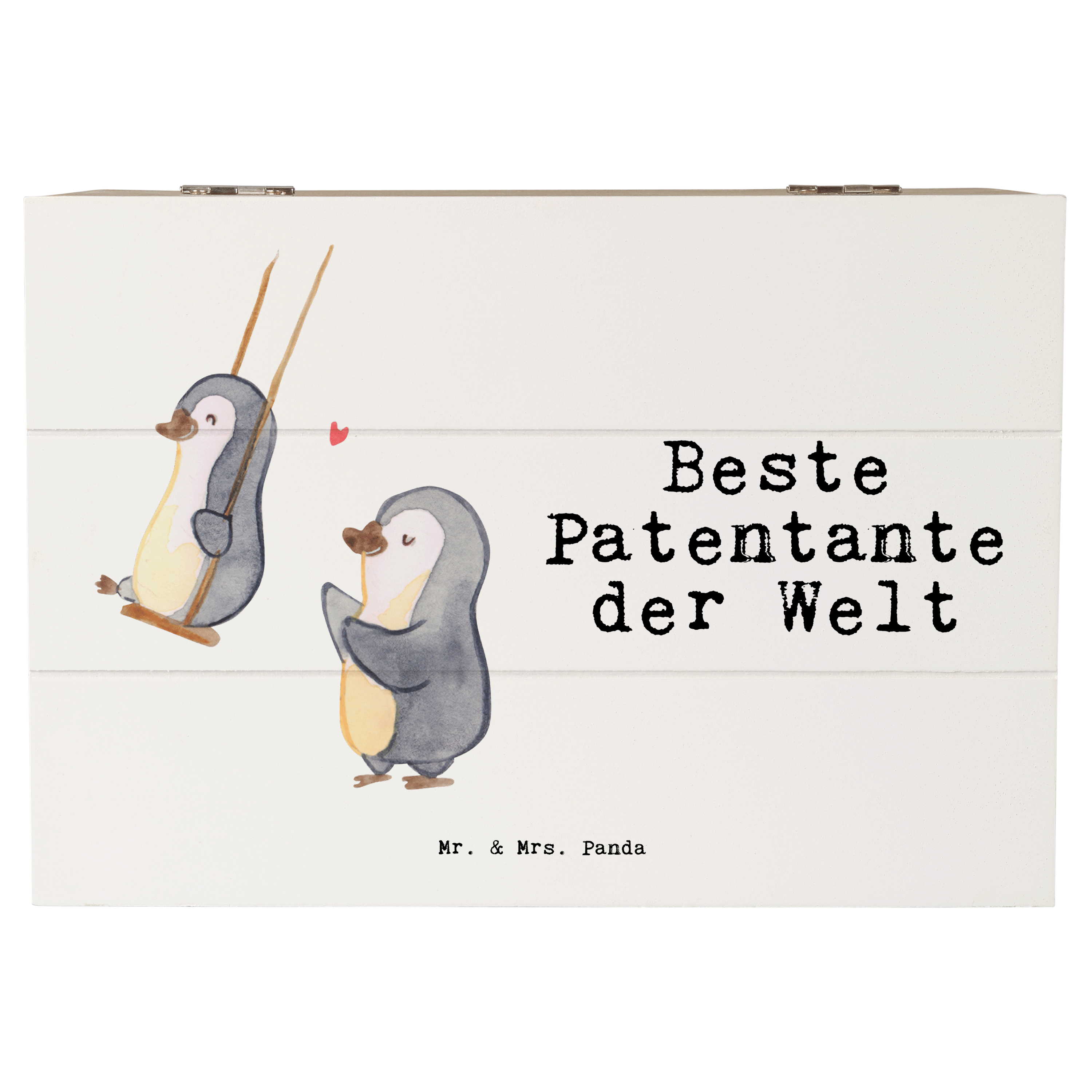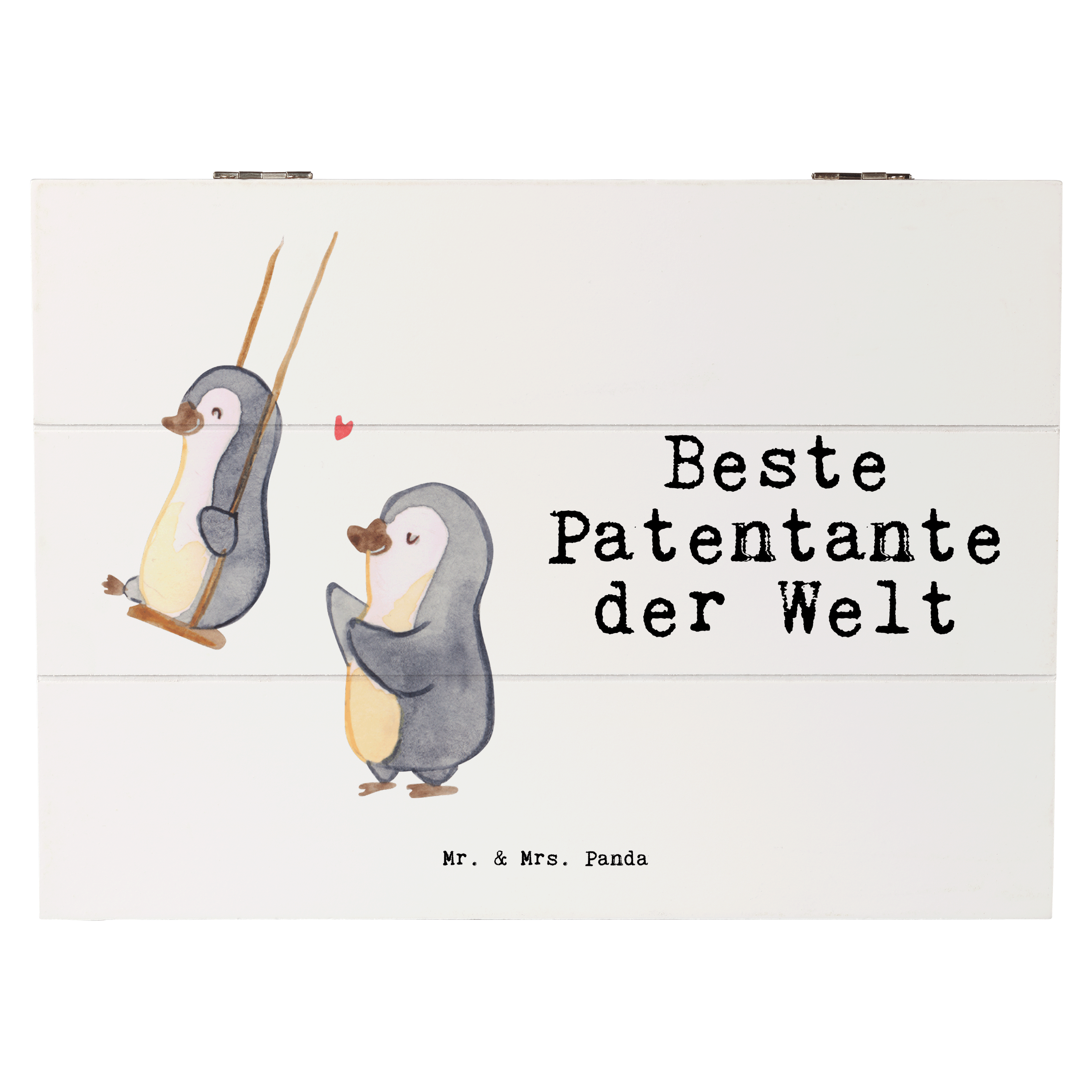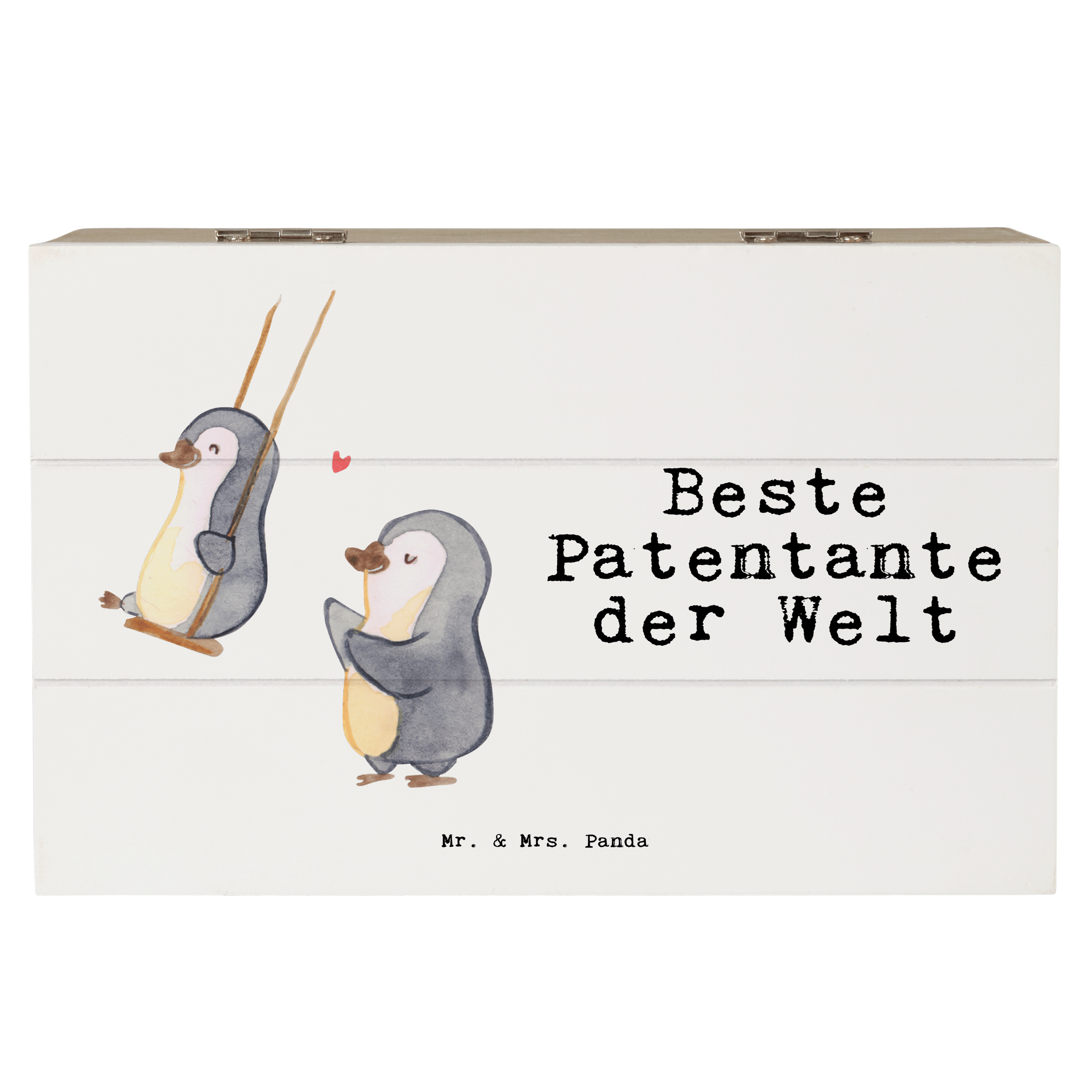 Holzkiste Pinguin Beste Patentante der Welt - Grau Pastell - 19 x 12 cm