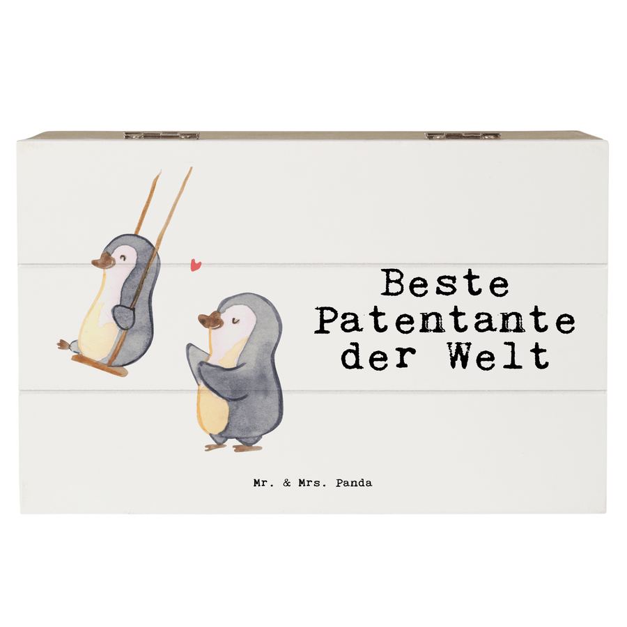 Holzkiste Pinguin Beste Patentante der Welt - Weiß - 19 x 12 cm