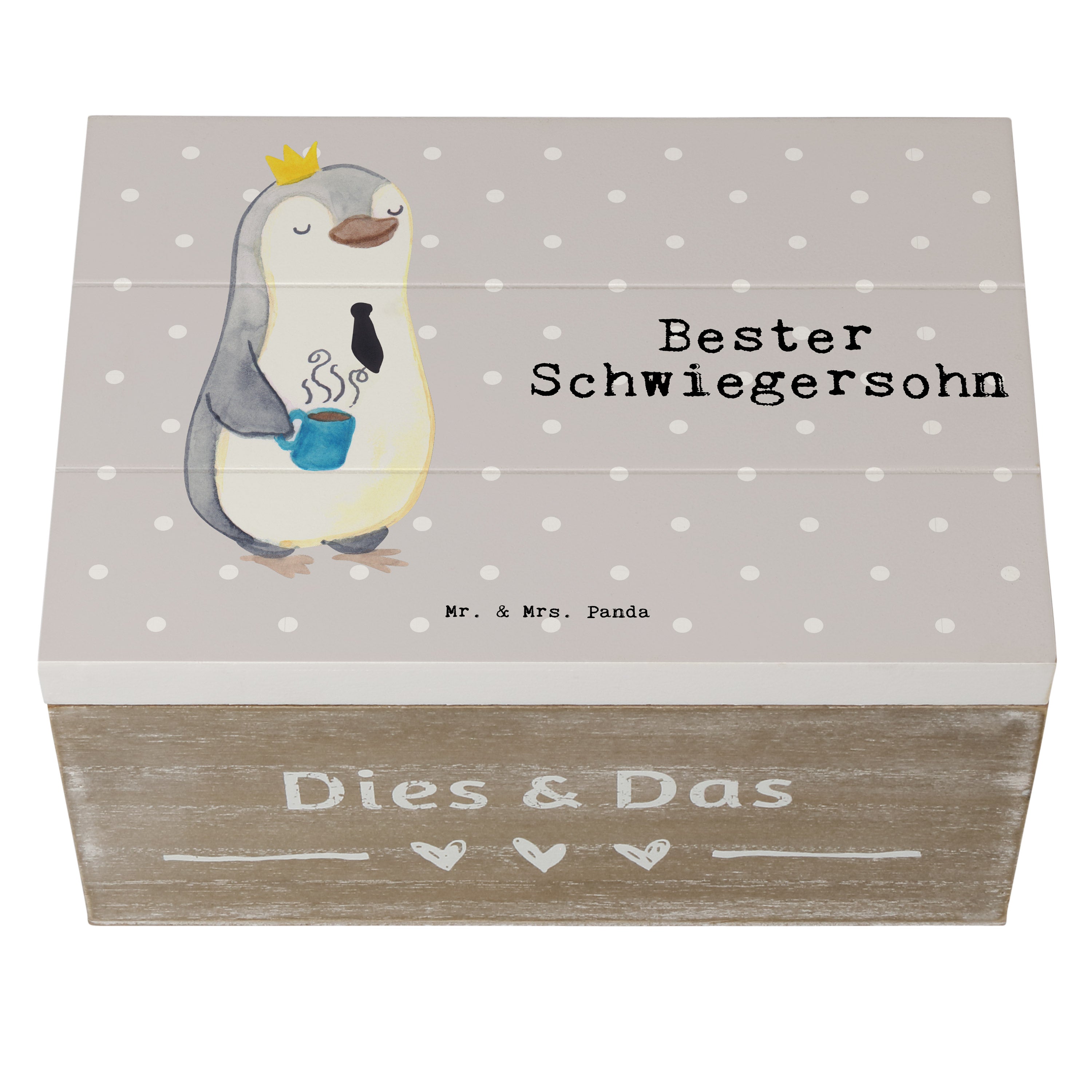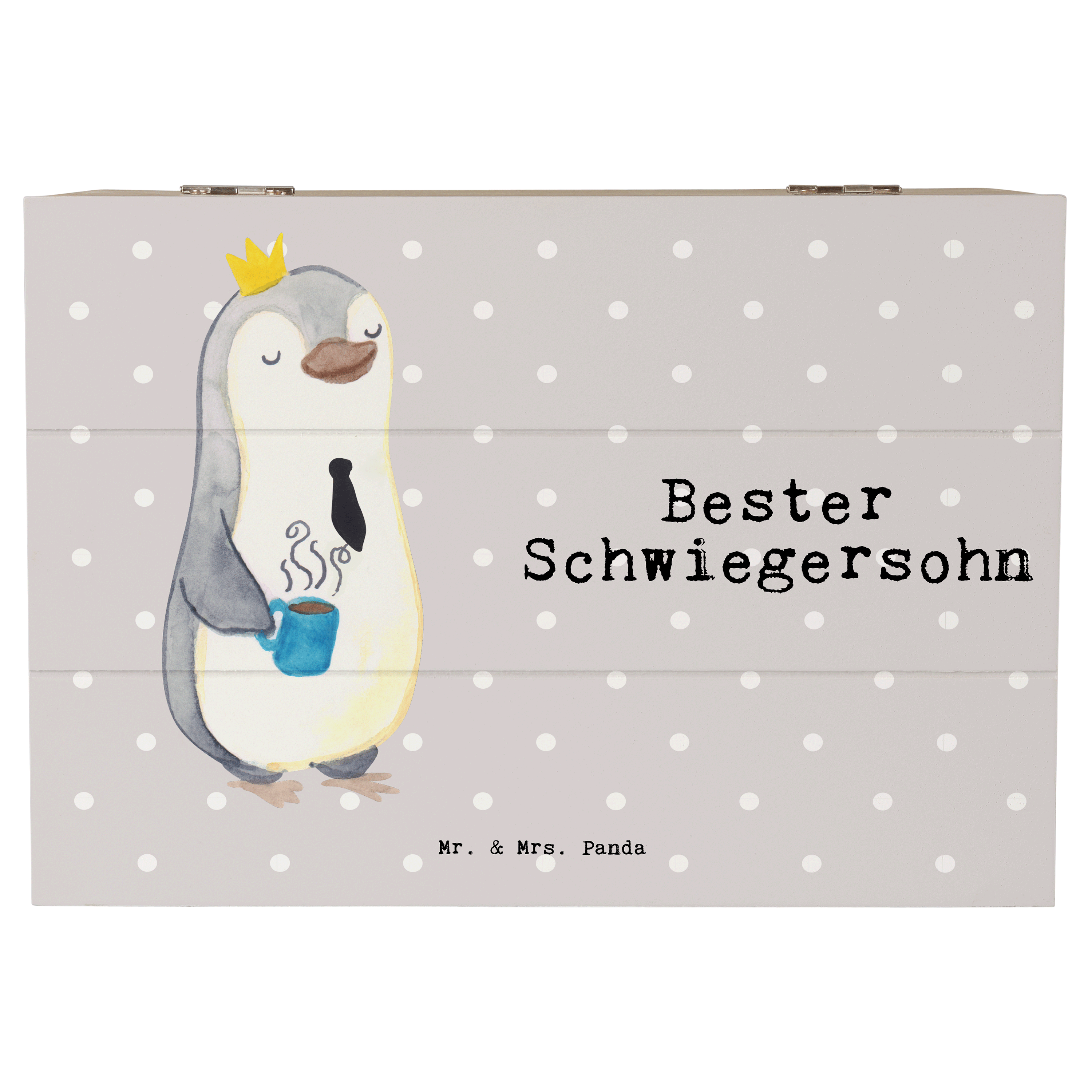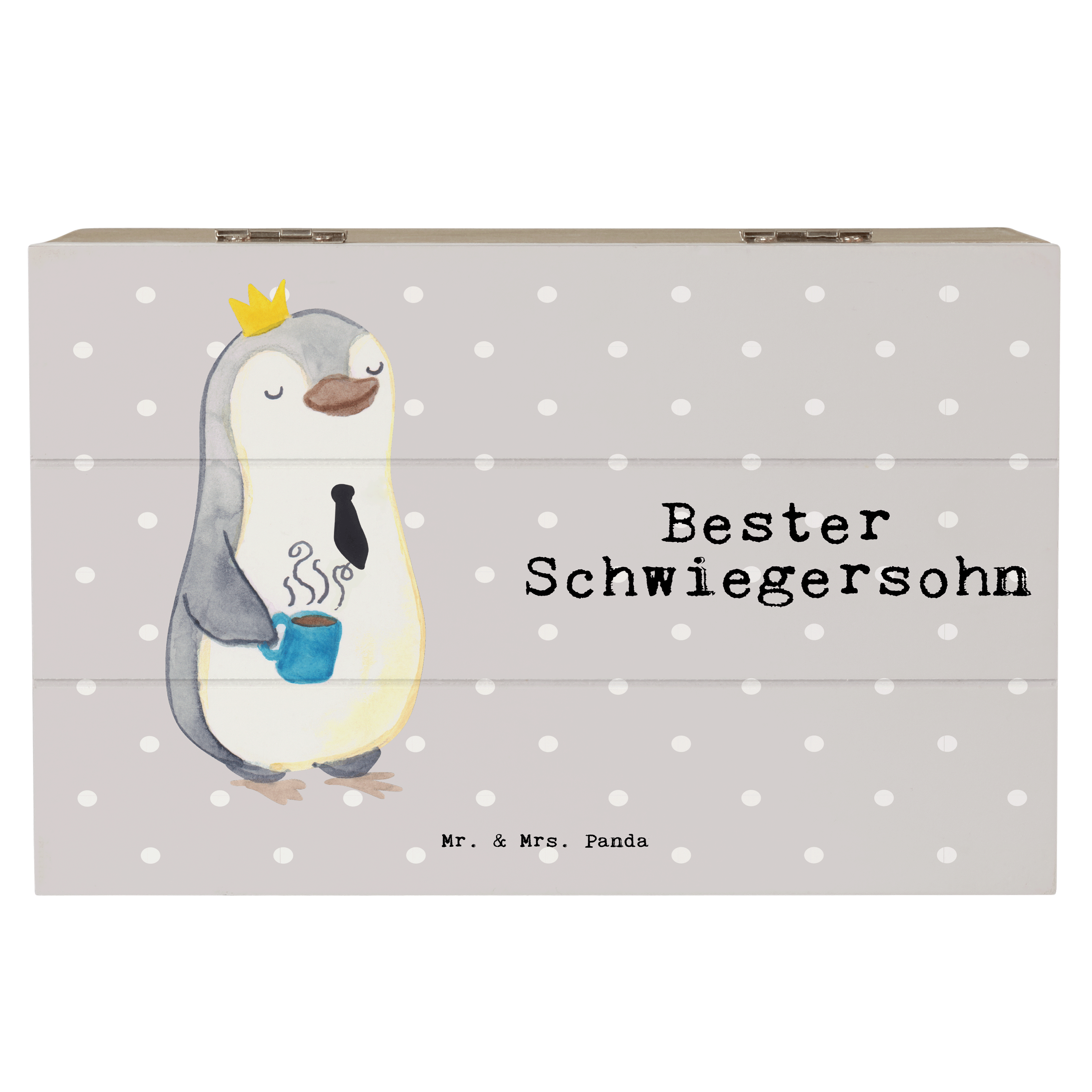 Holzkiste Pinguin Bester Schwiegersohn - Grau Pastell - 19 x 12 cm