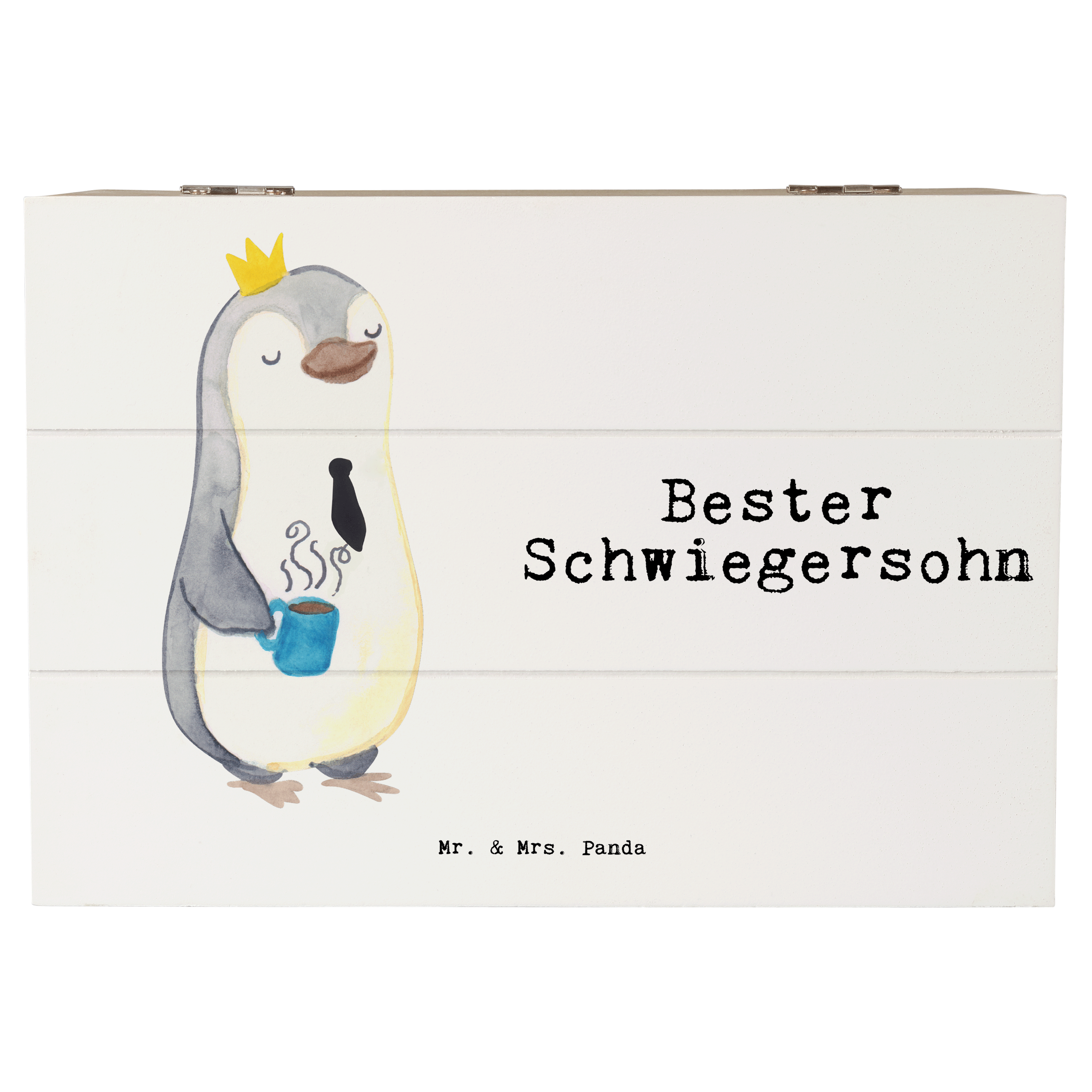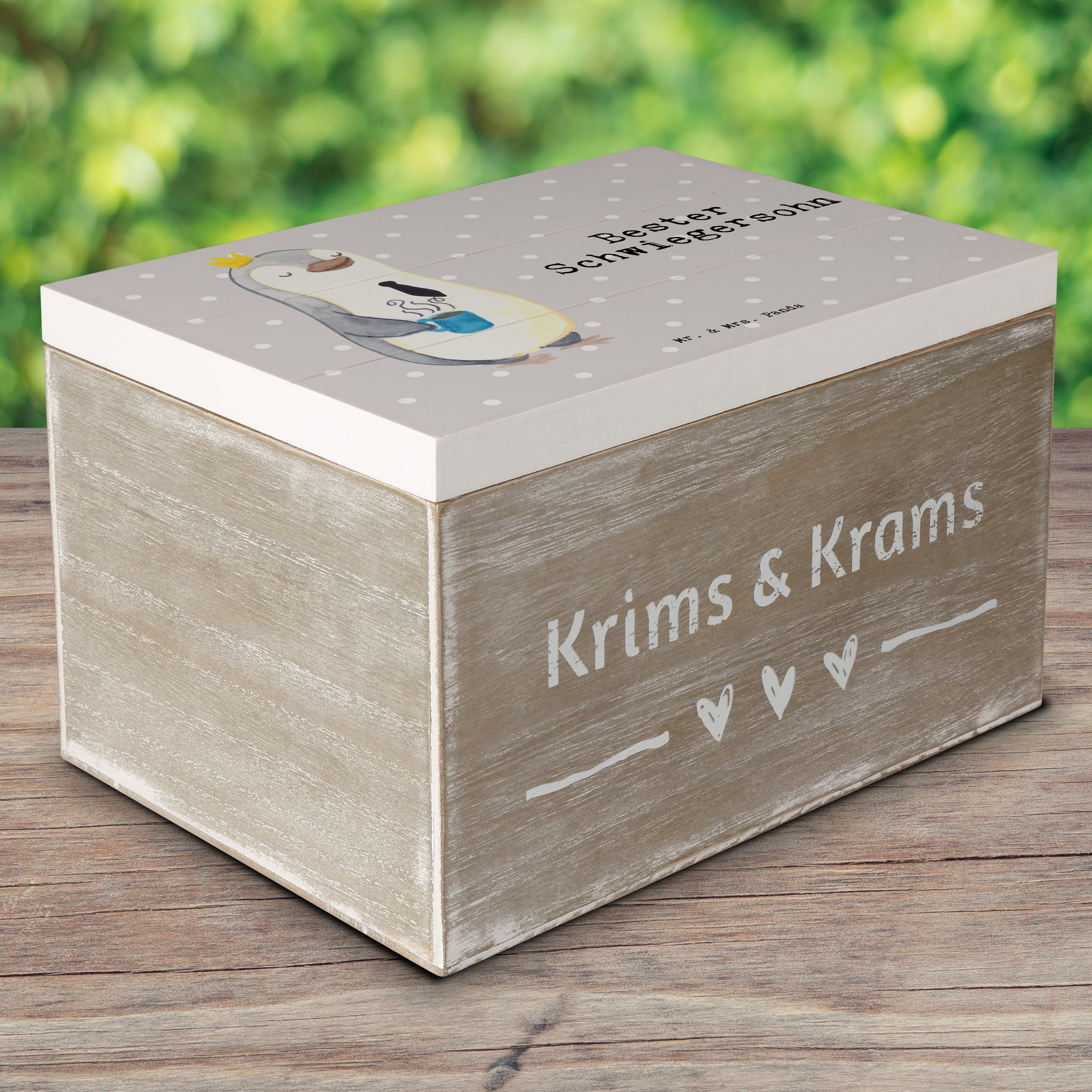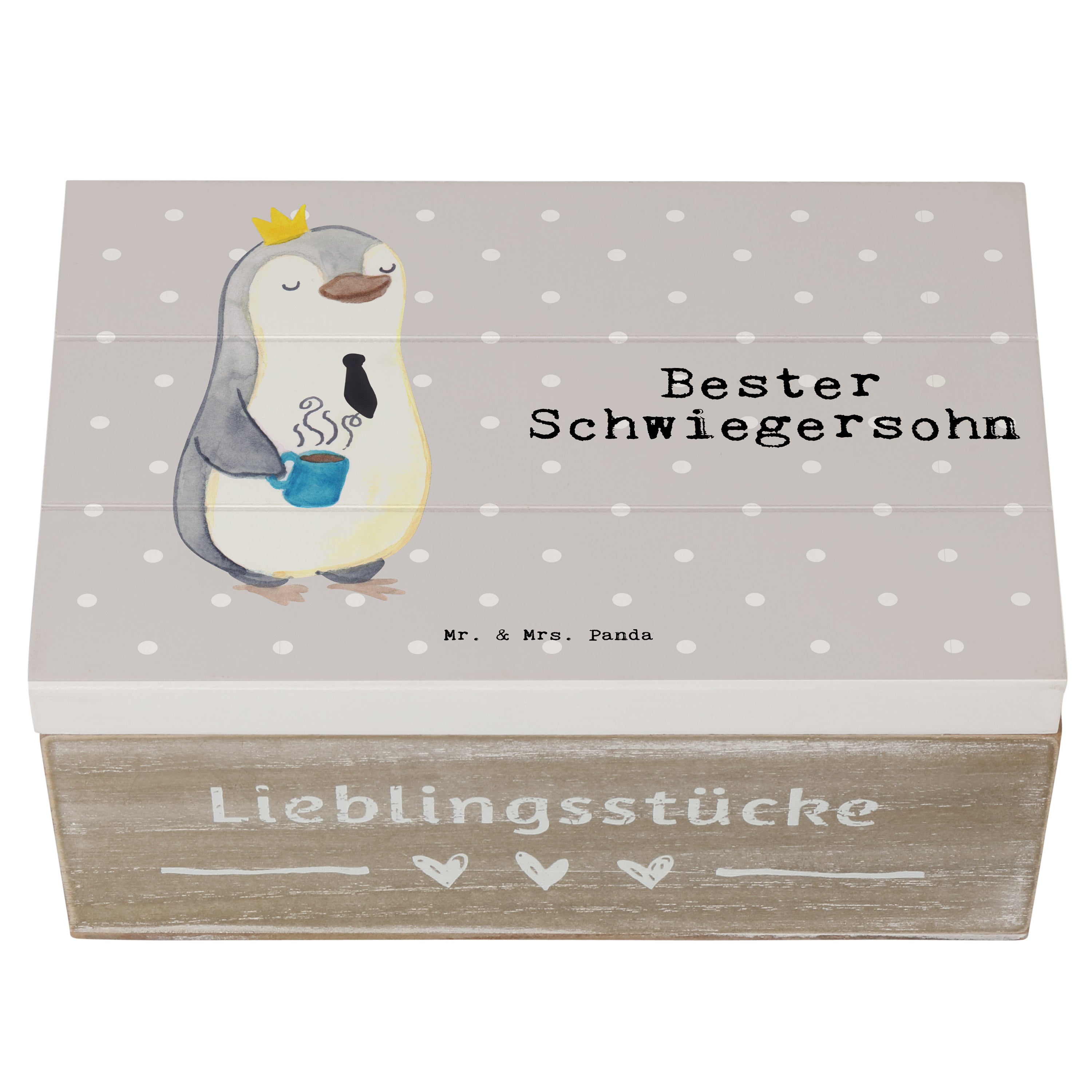 Holzkiste Pinguin Bester Schwiegersohn - Grau Pastell - 19 x 12 cm