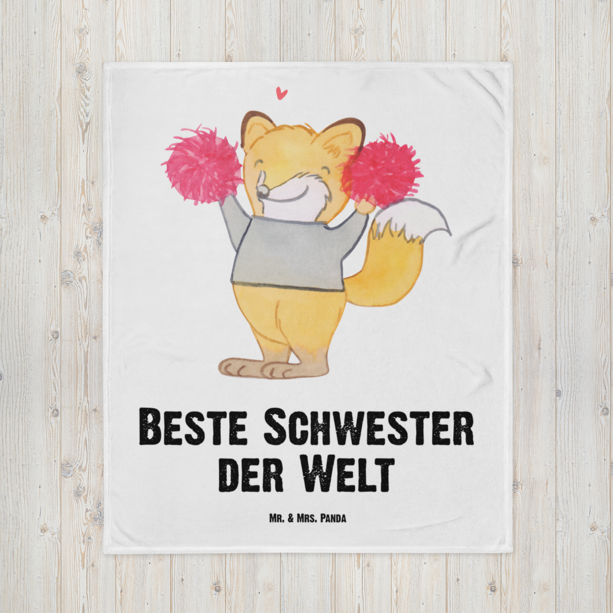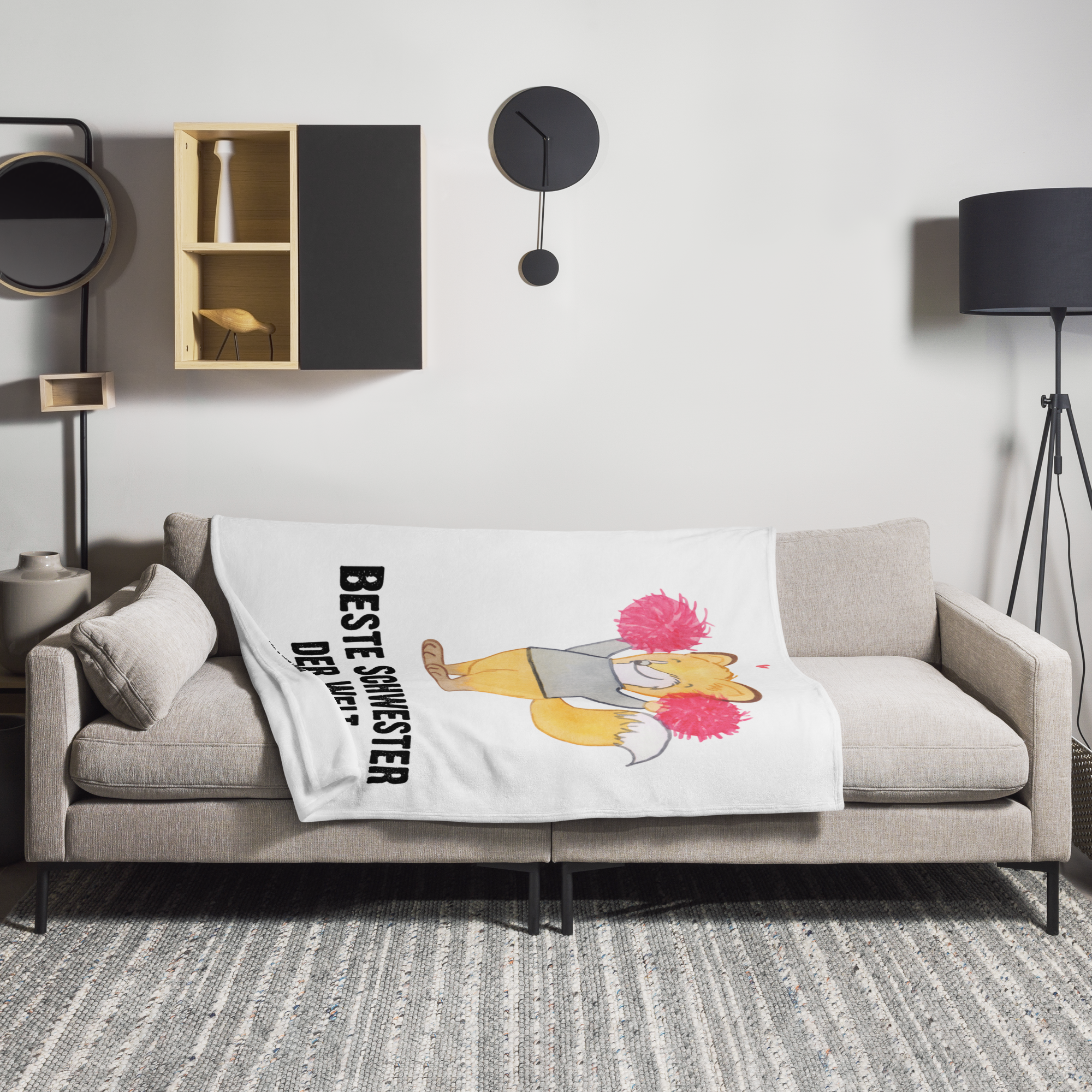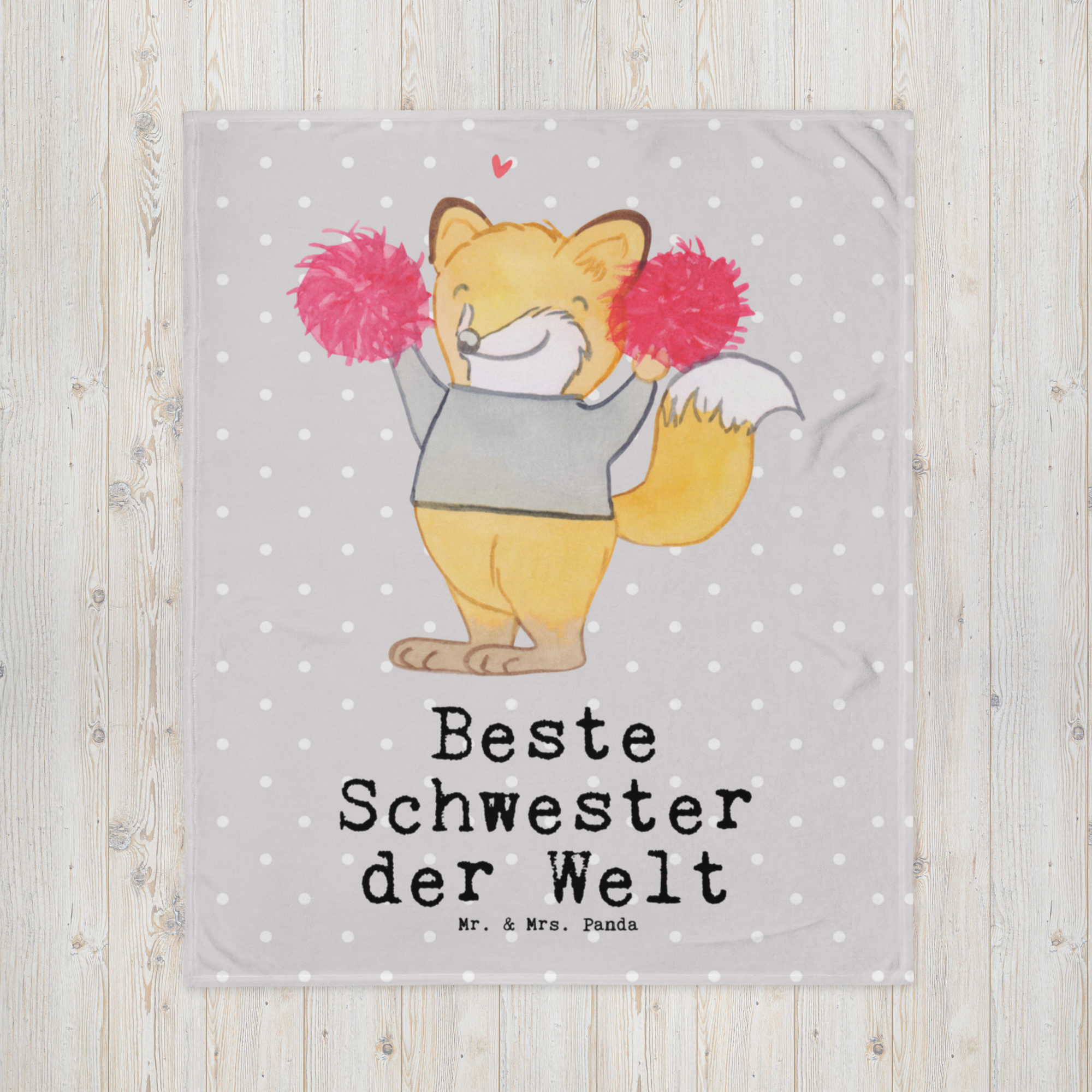 Kuscheldecke Fuchs Beste Schwester der Welt - Grau Pastell