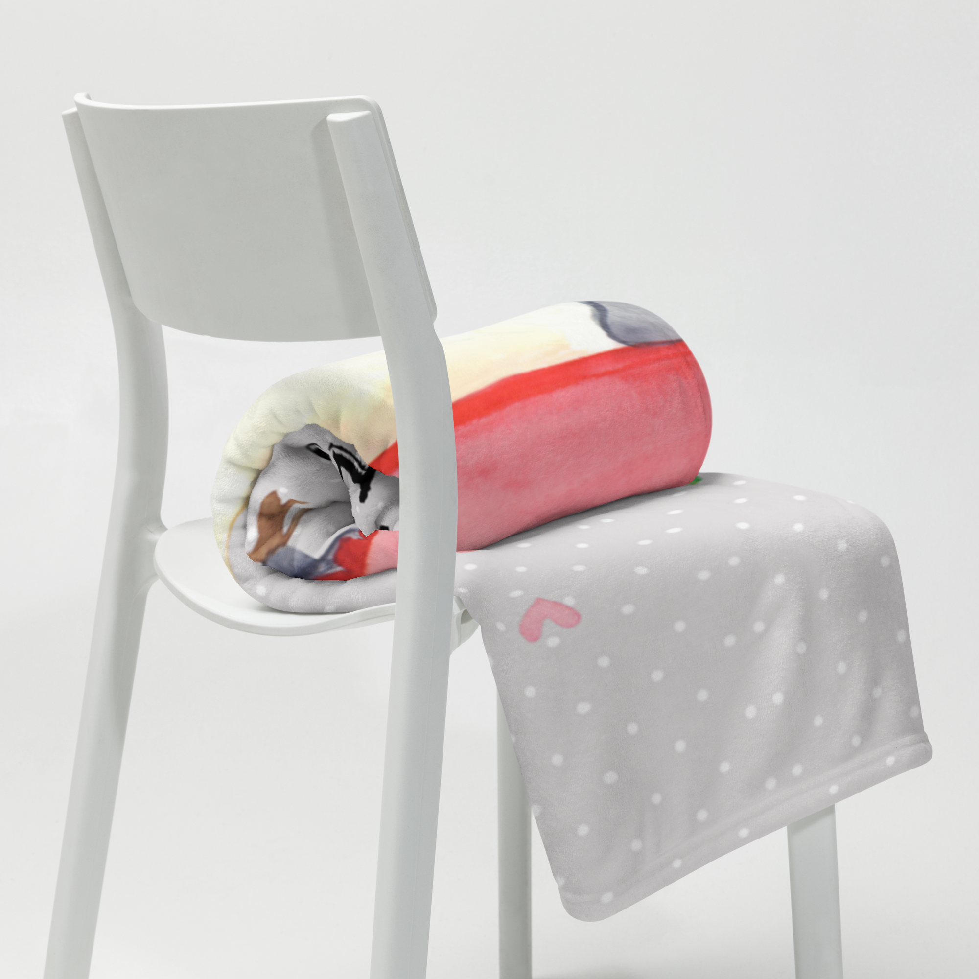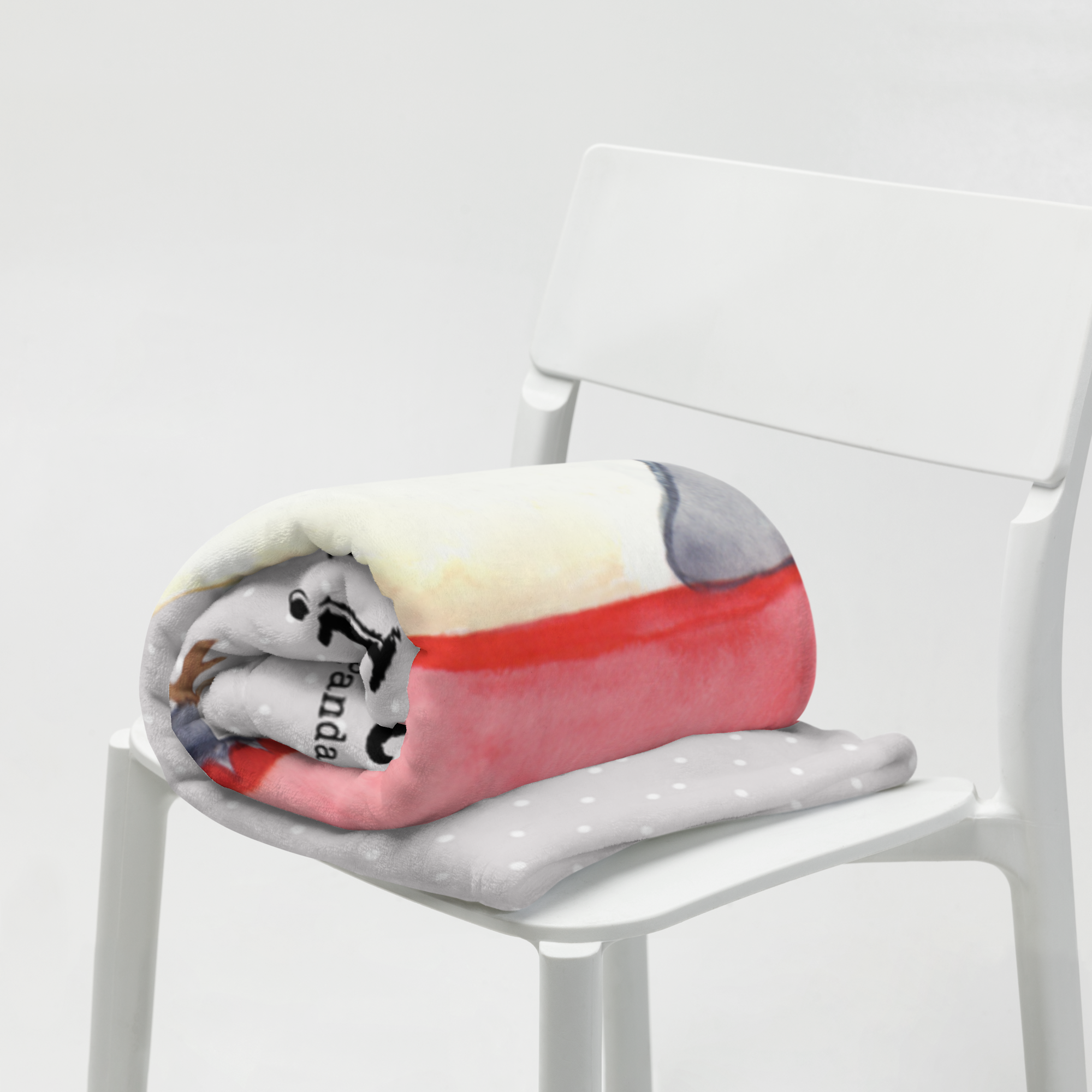 Die super flauschige personalisierte Kuscheldecke von Mr. & Mrs. Panda kann mit einem Namen bedruckt werden und ist ideal für kalte Monate und Tage. Die Größe der Kuscheldecke beträgt 127 x 153 cm und ist somit perfekt, um es sich im Wohnzimmer auf dem Sofa oder im Schlafzimmer auf dem Bett gemütlich zu machen.Die Sofadecke besteht aus Kuschel Fleece Mikrofaser und ist extrem flauschig. Die fellartige Kuscheldecke schmiegt sich herrlich weich an deinen Körper und wärmt außerordentlich gut, so wirst du sicherlich nicht frieren. Die Decke zeichnet sich durch ihre hochwertige und strapazierfähige Qualität aus. Alternativ kannst du die Decke auch 140x200 cm kaufen. Sie eignet sich auch optimal als Tagesdecke für Kinder und Erwachsene.