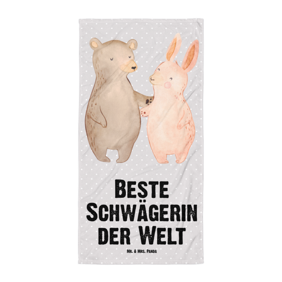 XL Badehandtuch Hase Beste Schwägerin der Welt - Grau Pastell