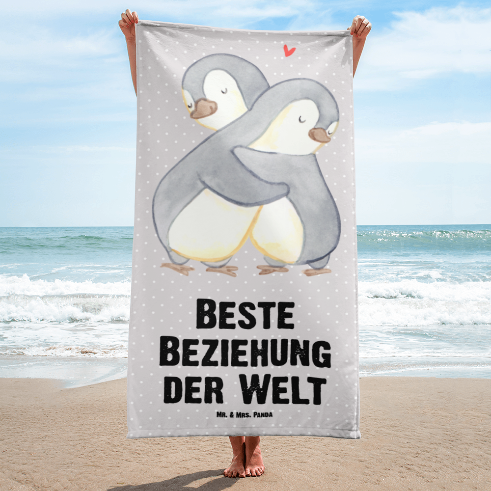 XL Badehandtuch Pinguin Beste Beziehung der Welt - Grau Pastell