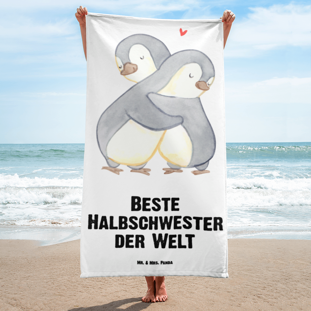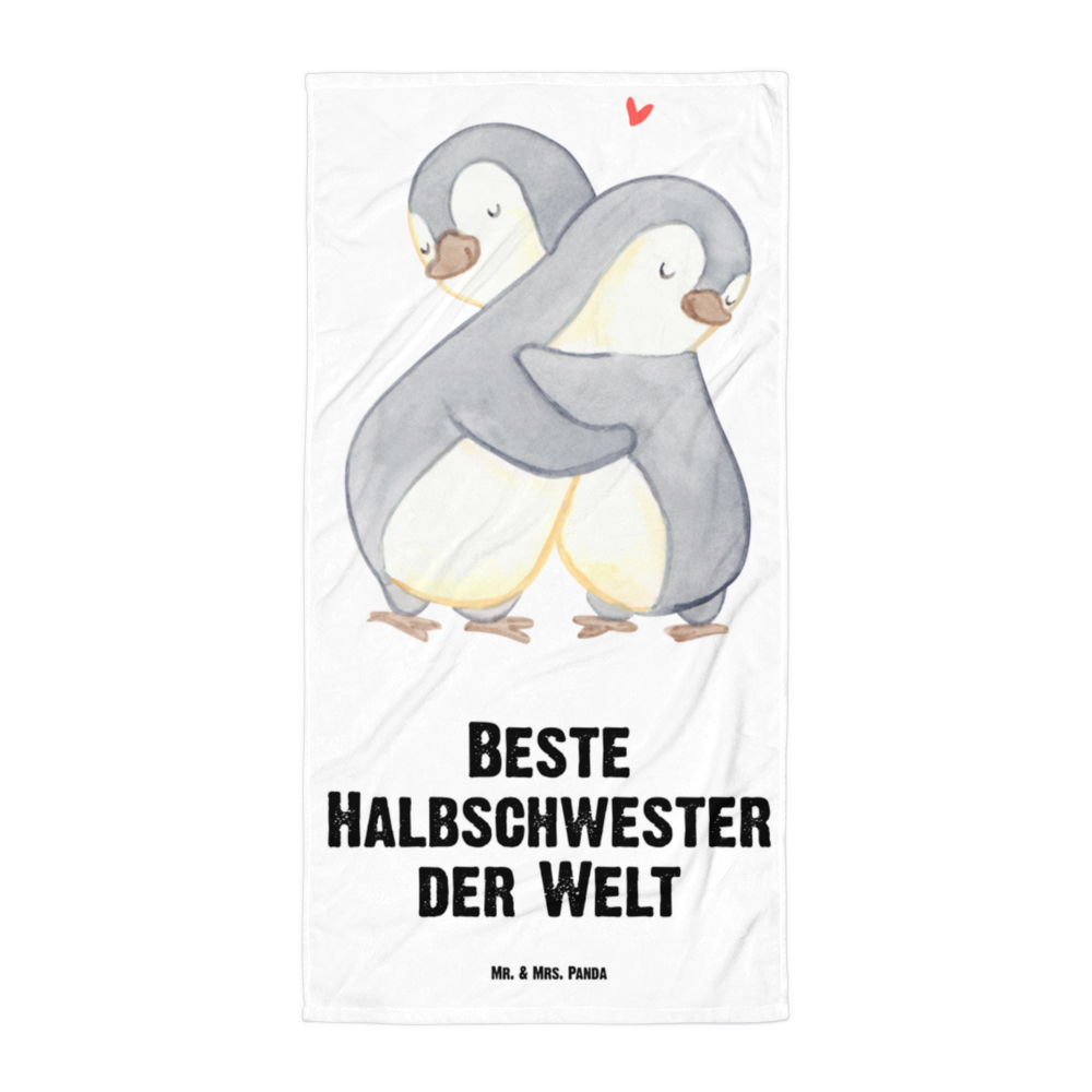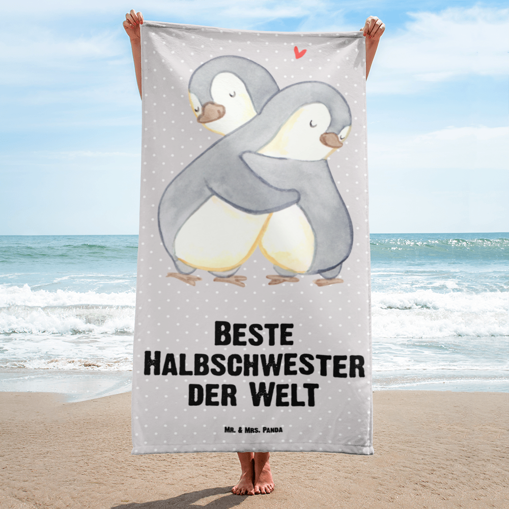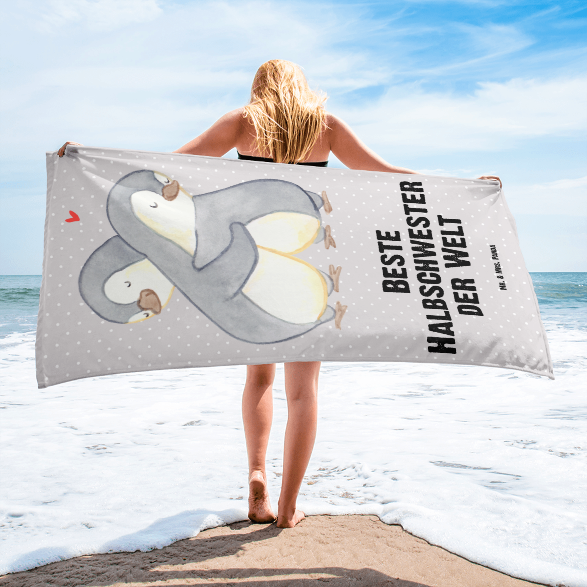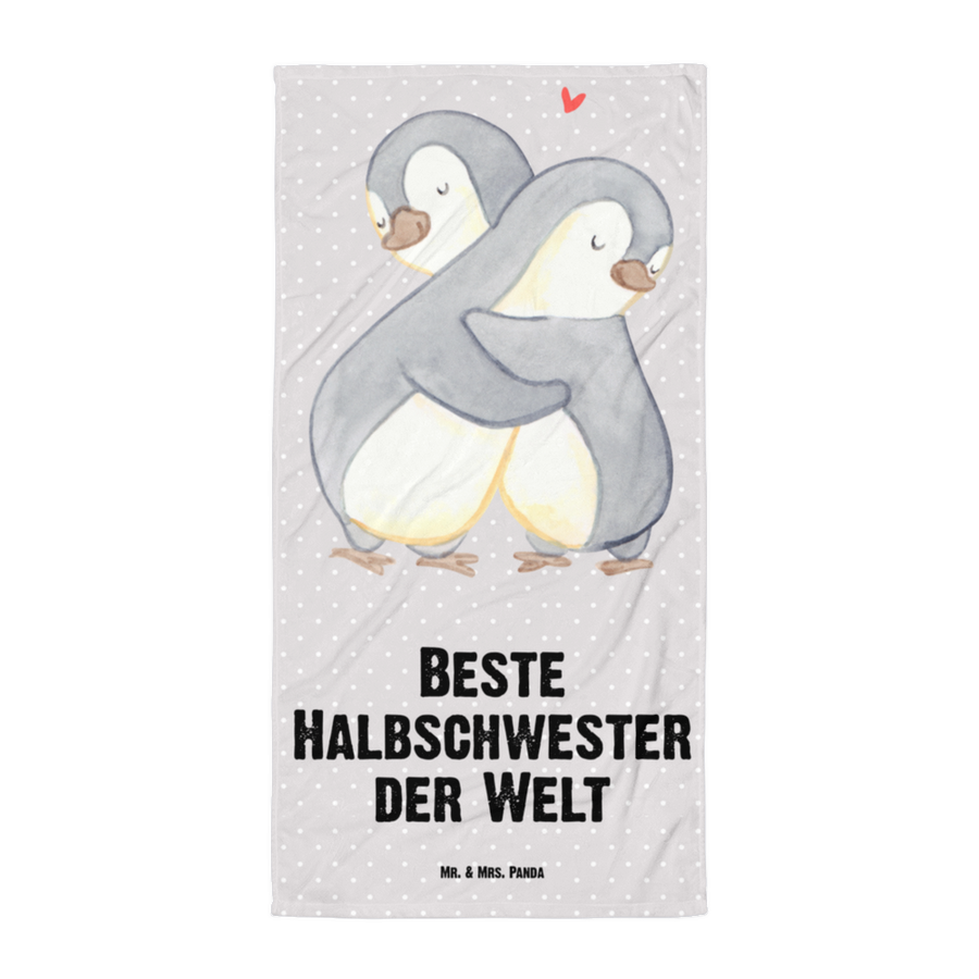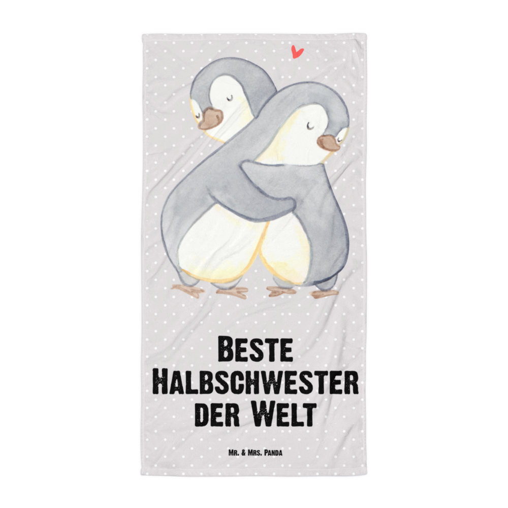 XL Badehandtuch Pinguin Beste Halbschwester der Welt - Grau Pastell