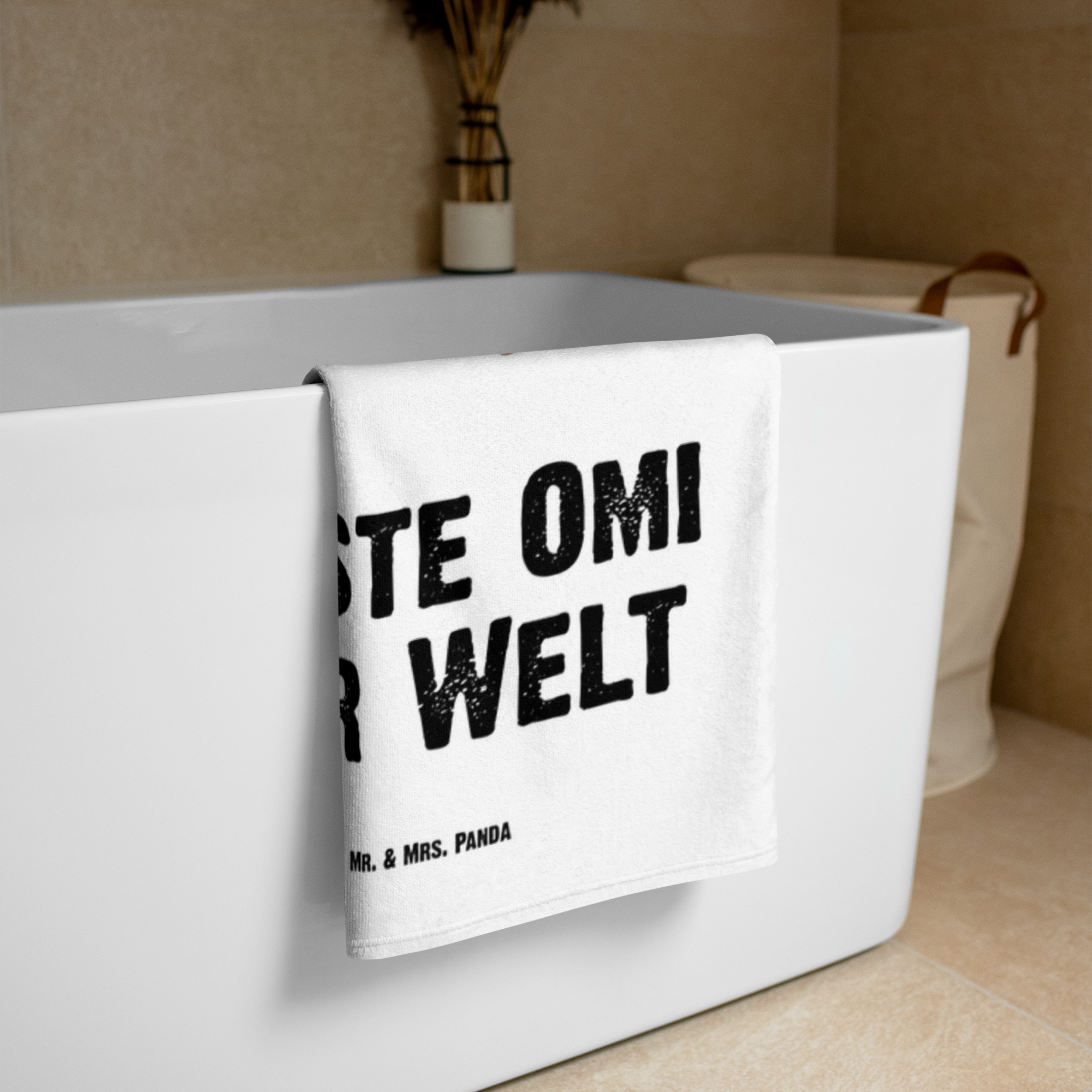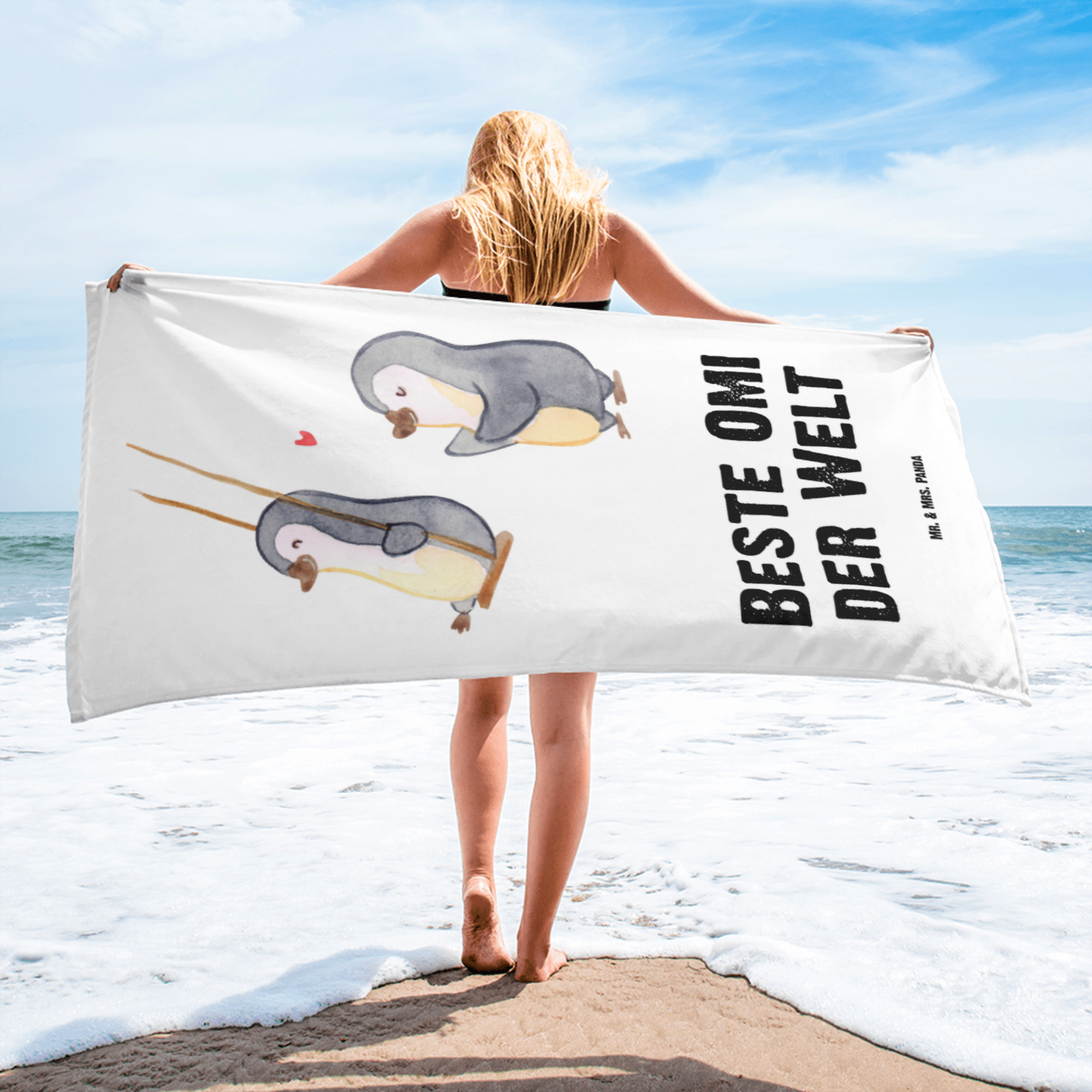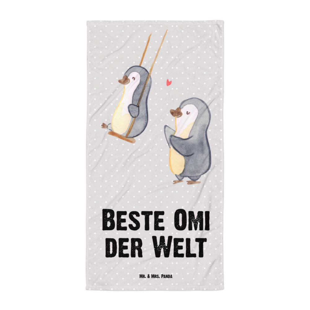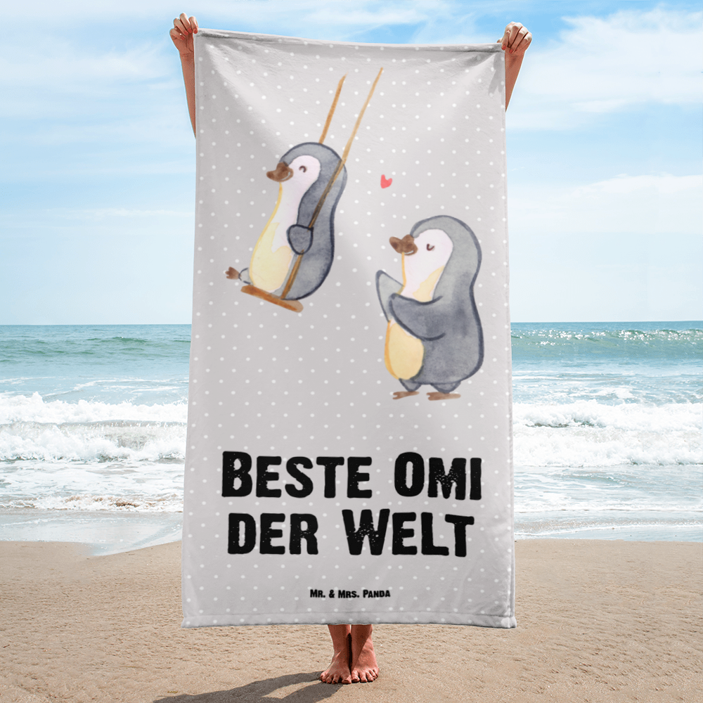 XL Badehandtuch Pinguin Beste Omi der Welt - Grau Pastell